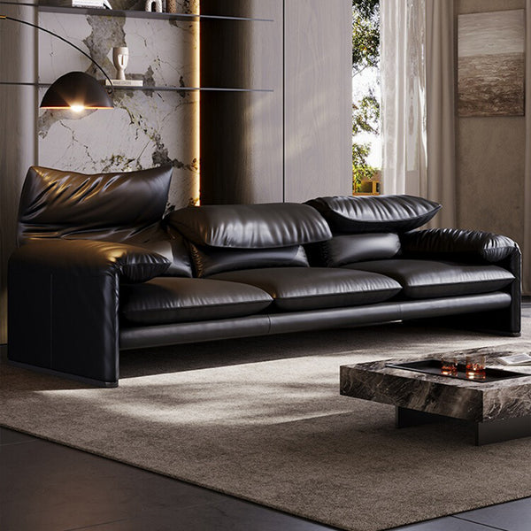 Sailboat Extra Deep Seat Leather Sofa with Adjustable Backrest-Black / 139.76 inch