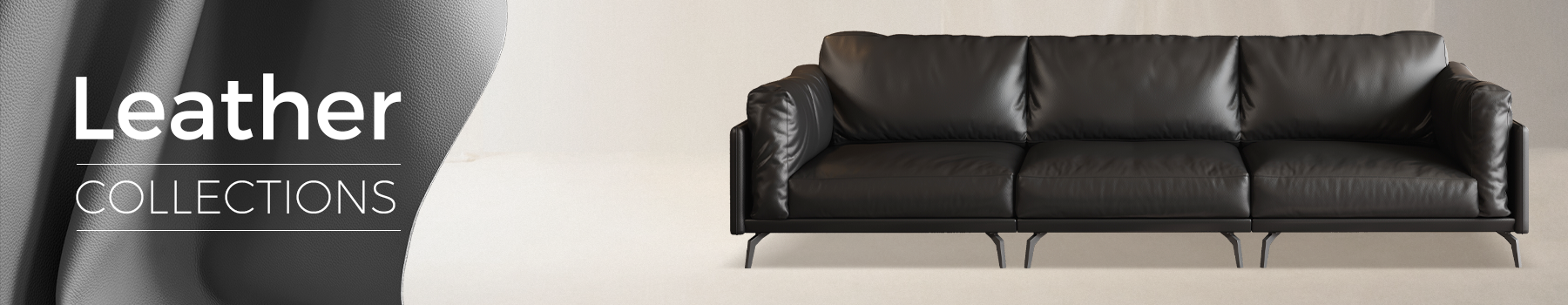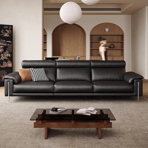 Minimalist Geniune Leather Sofa with Metal Legs-Black / 5 Seater