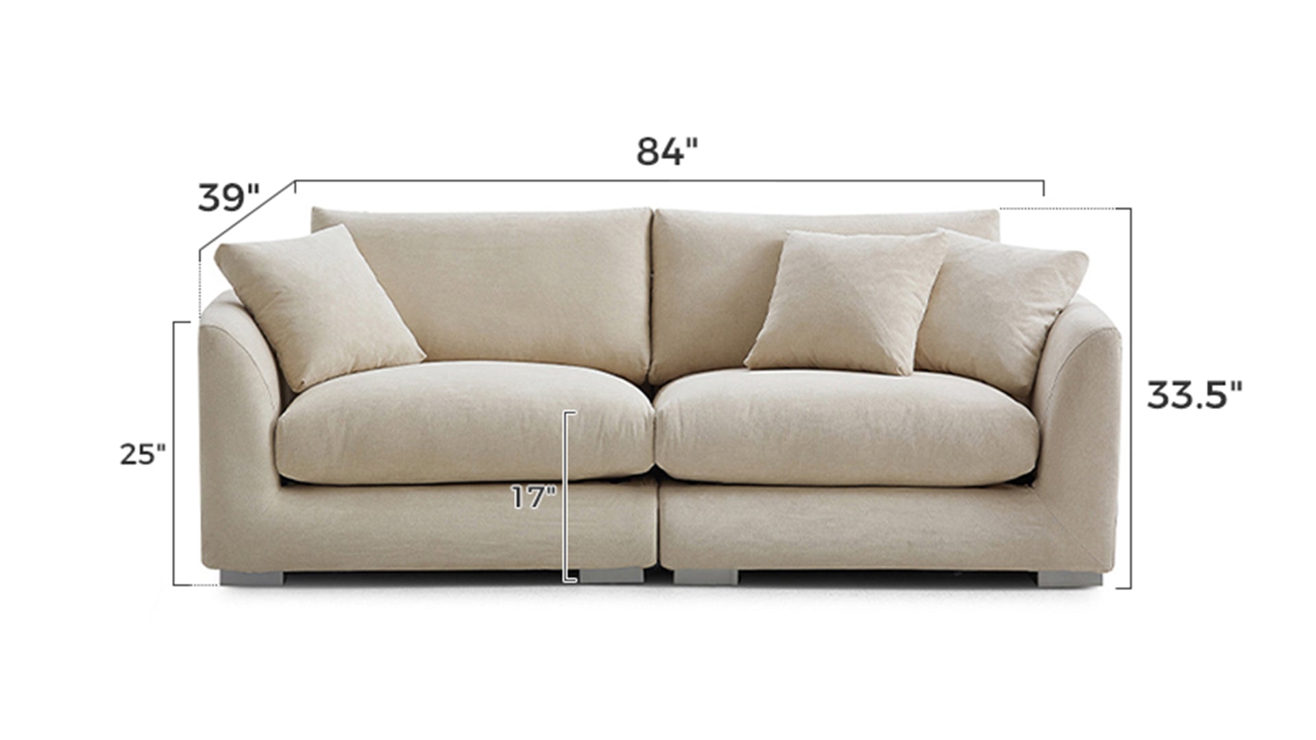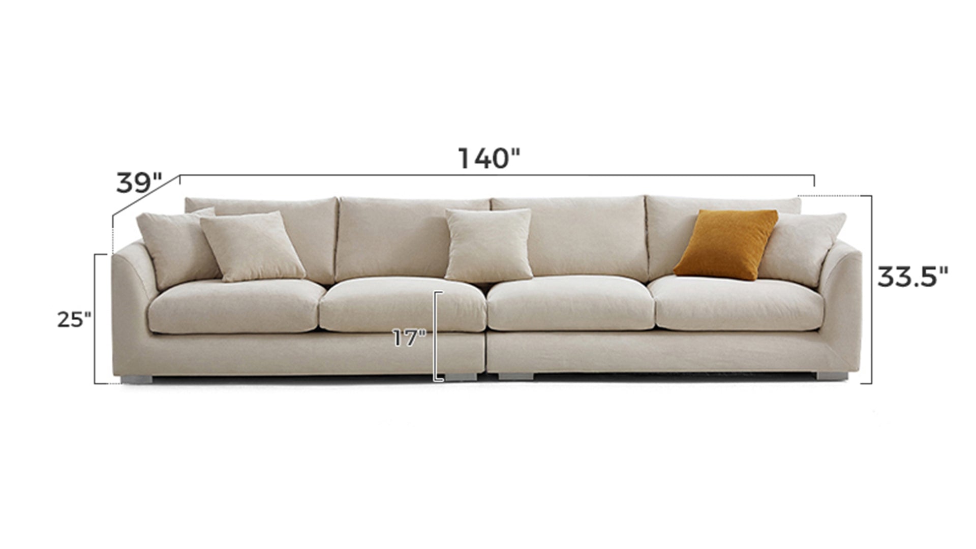 • Aalto Boutique Beige Feathers LoveseatLinen Beige / 4 Seater 100 inch