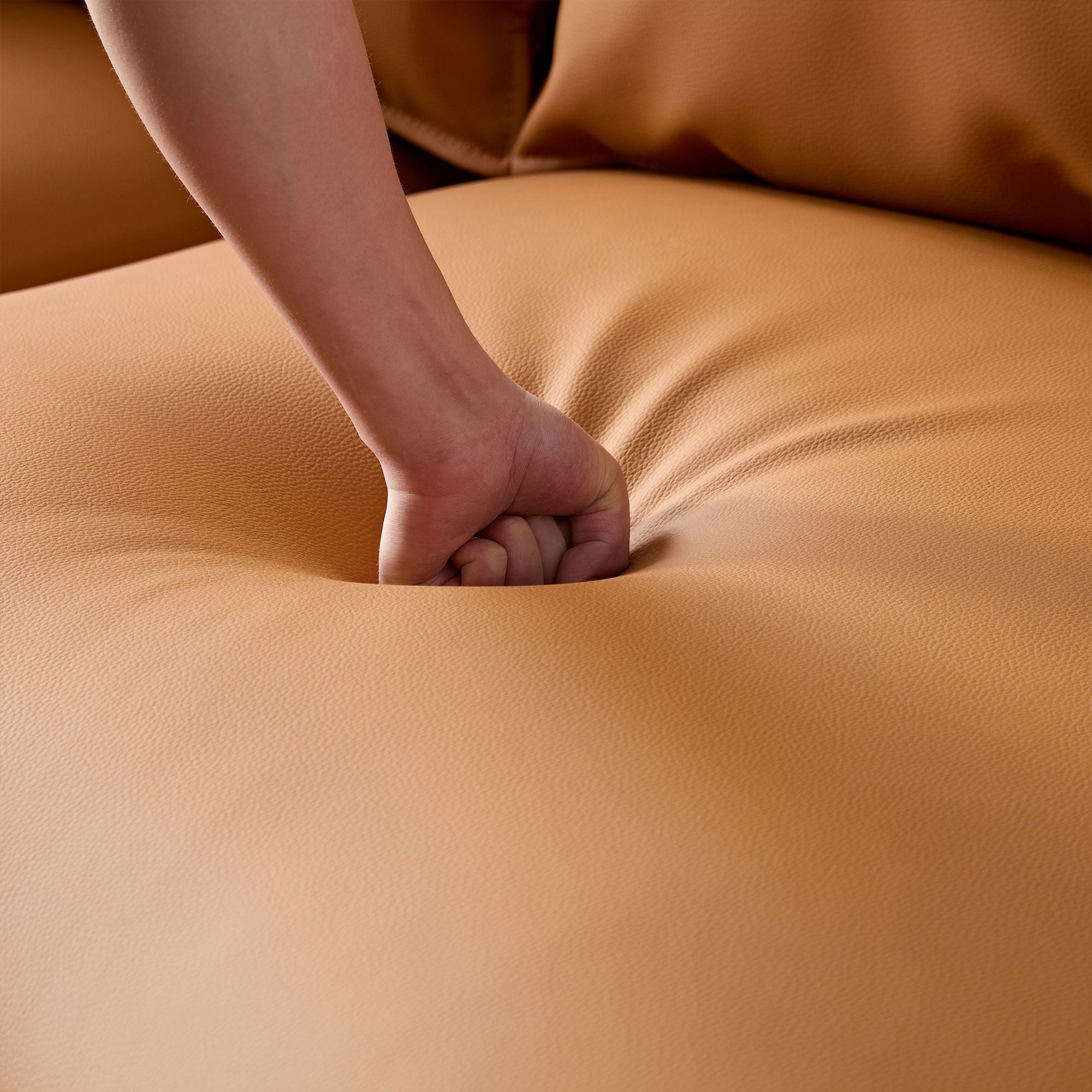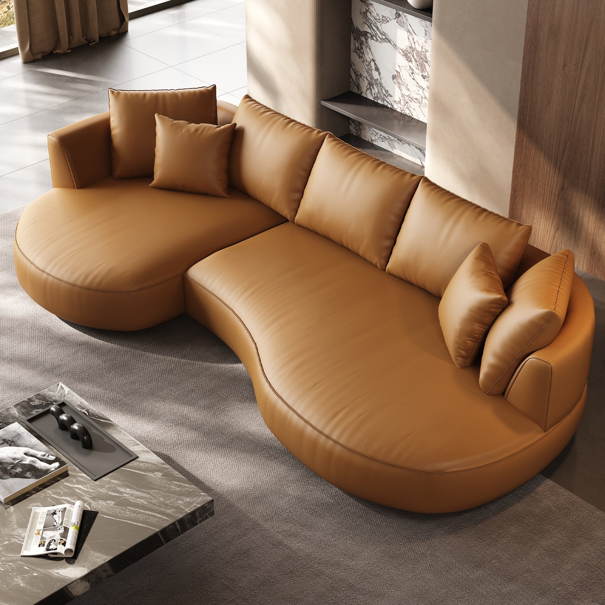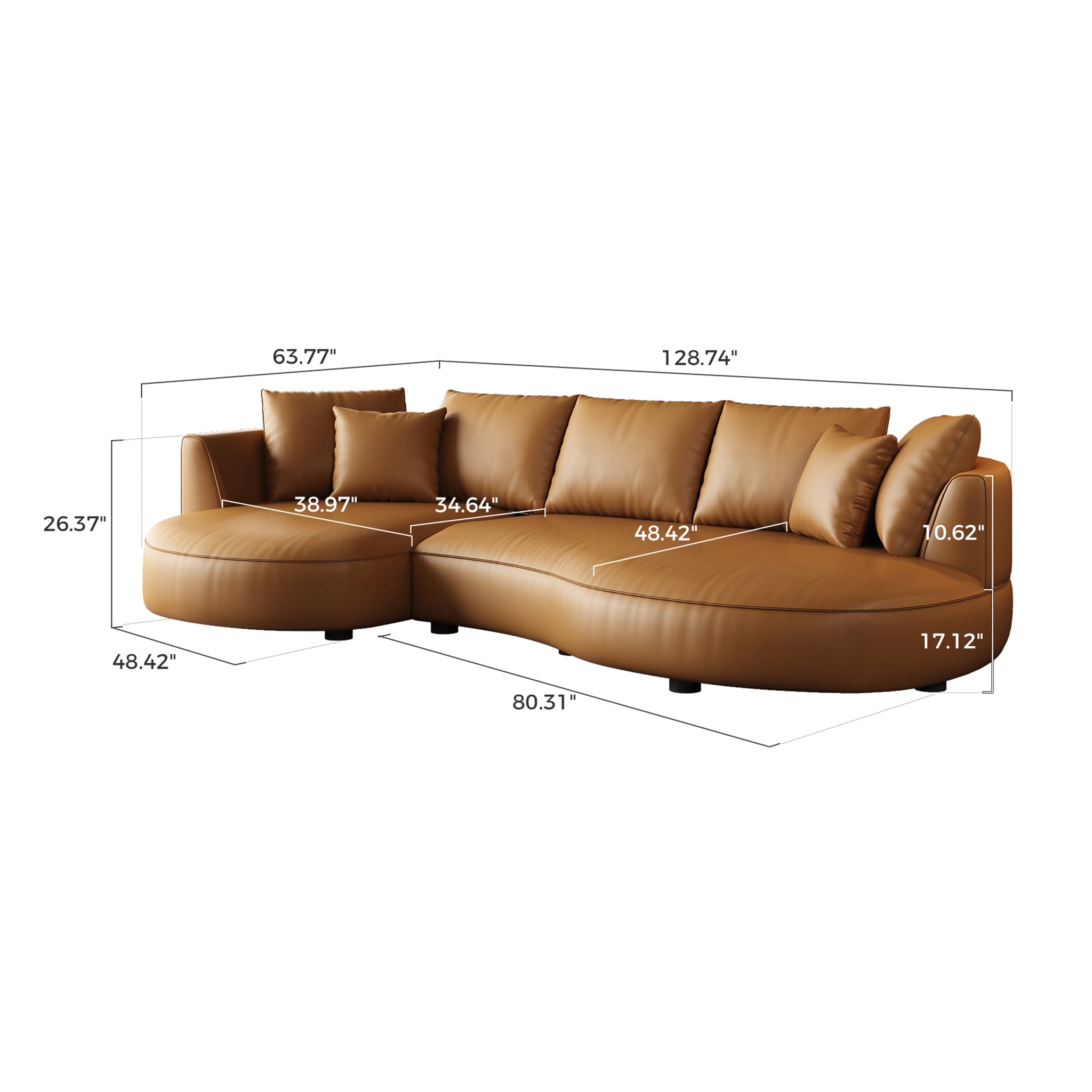 • 128.7'' Modern Sectional Curved SofaEco-Leather / Orange / Facing Left