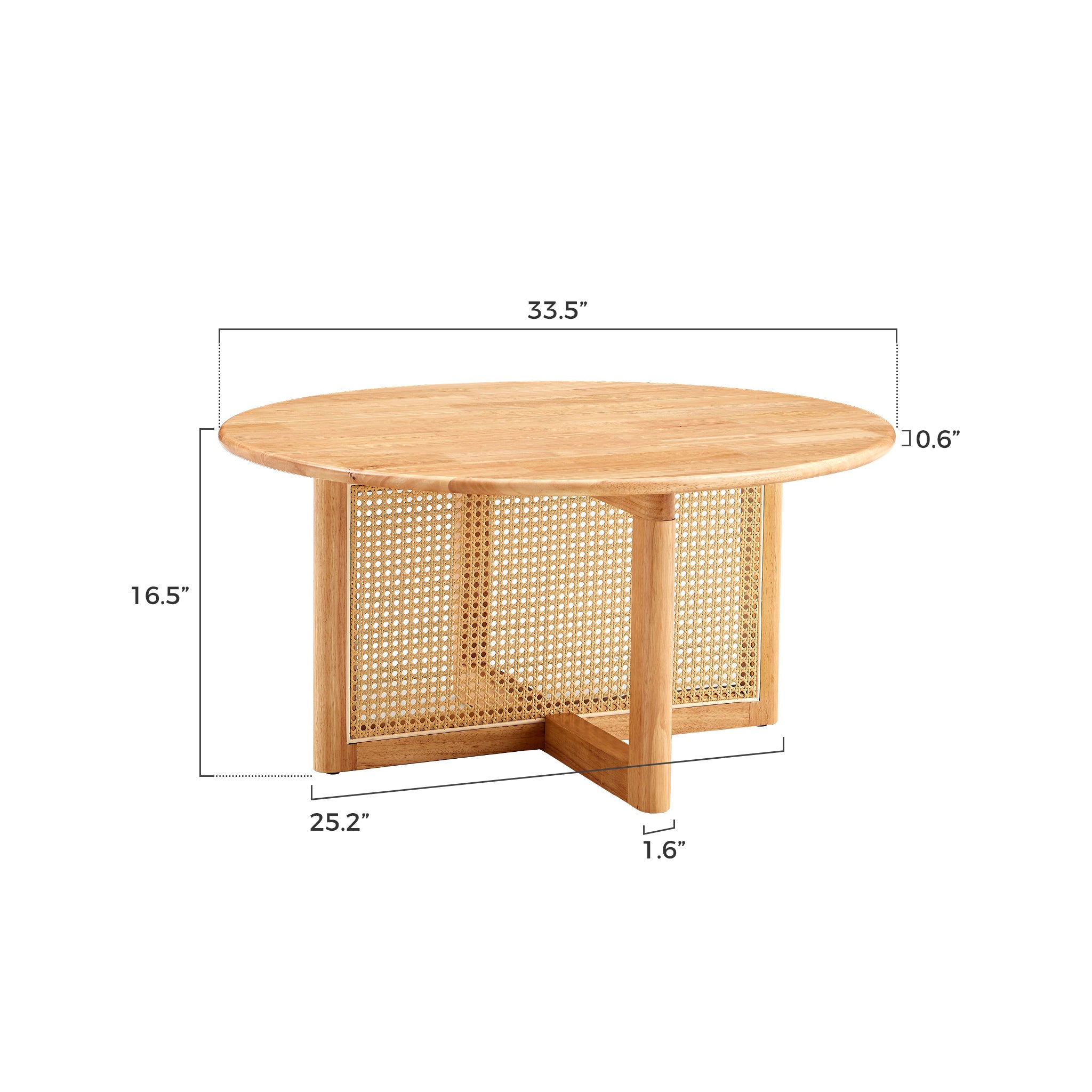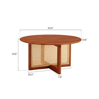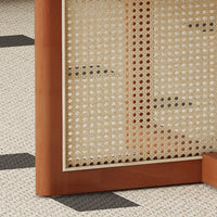 Crafted with precision, this exquisite coffee table combines the timeless beauty of wood and rattan, offering both style and practicality.