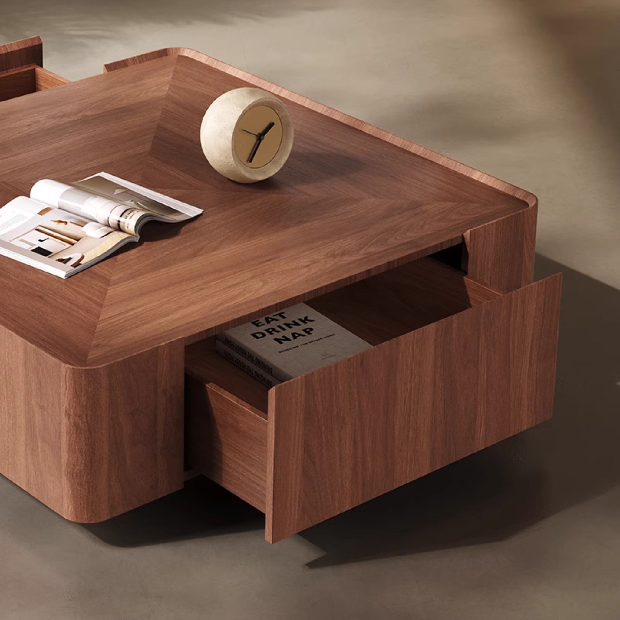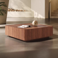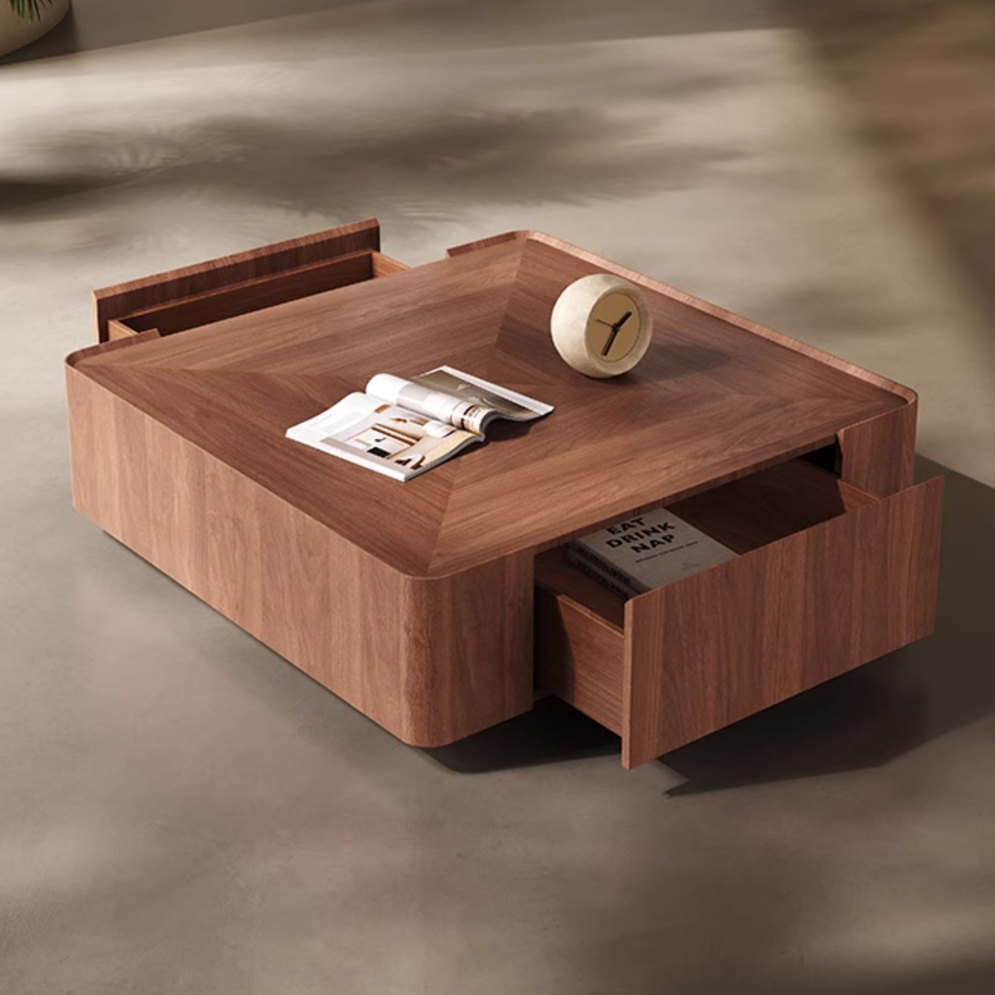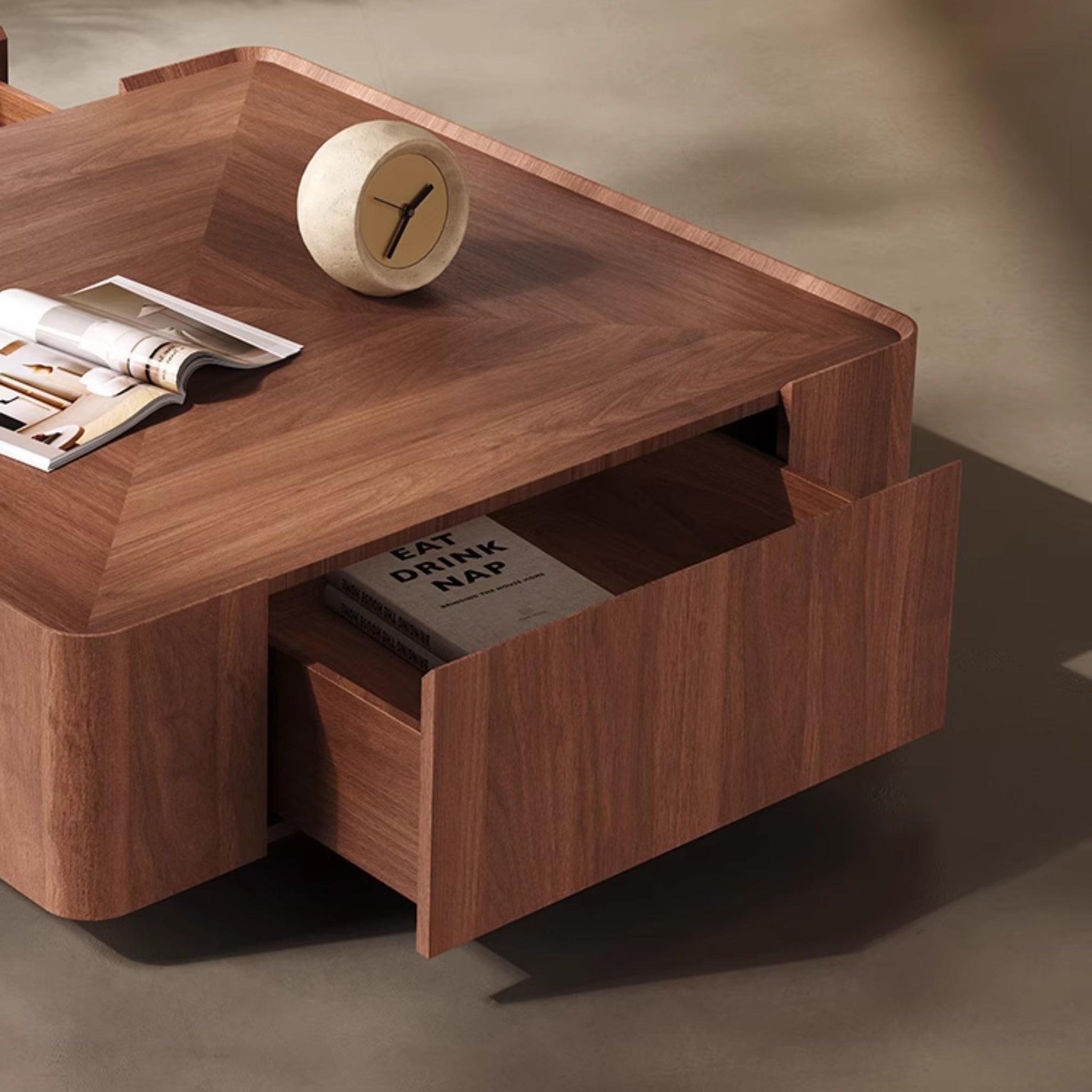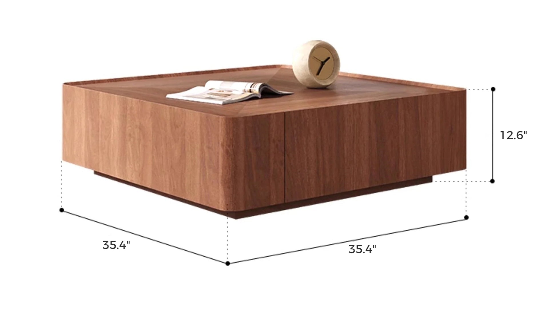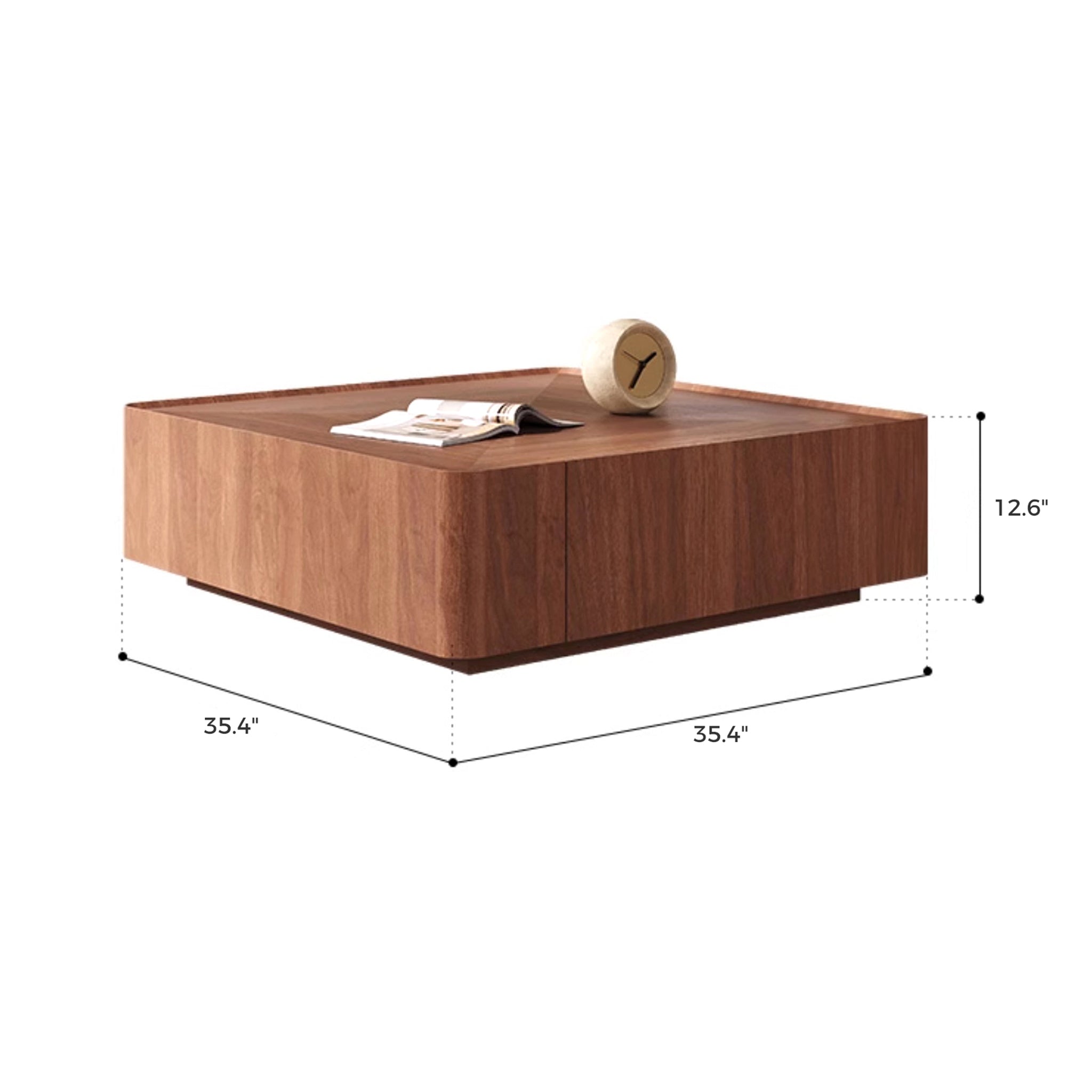 35.4''Modern Mid Century Square Walnut Coffee Table with Storage