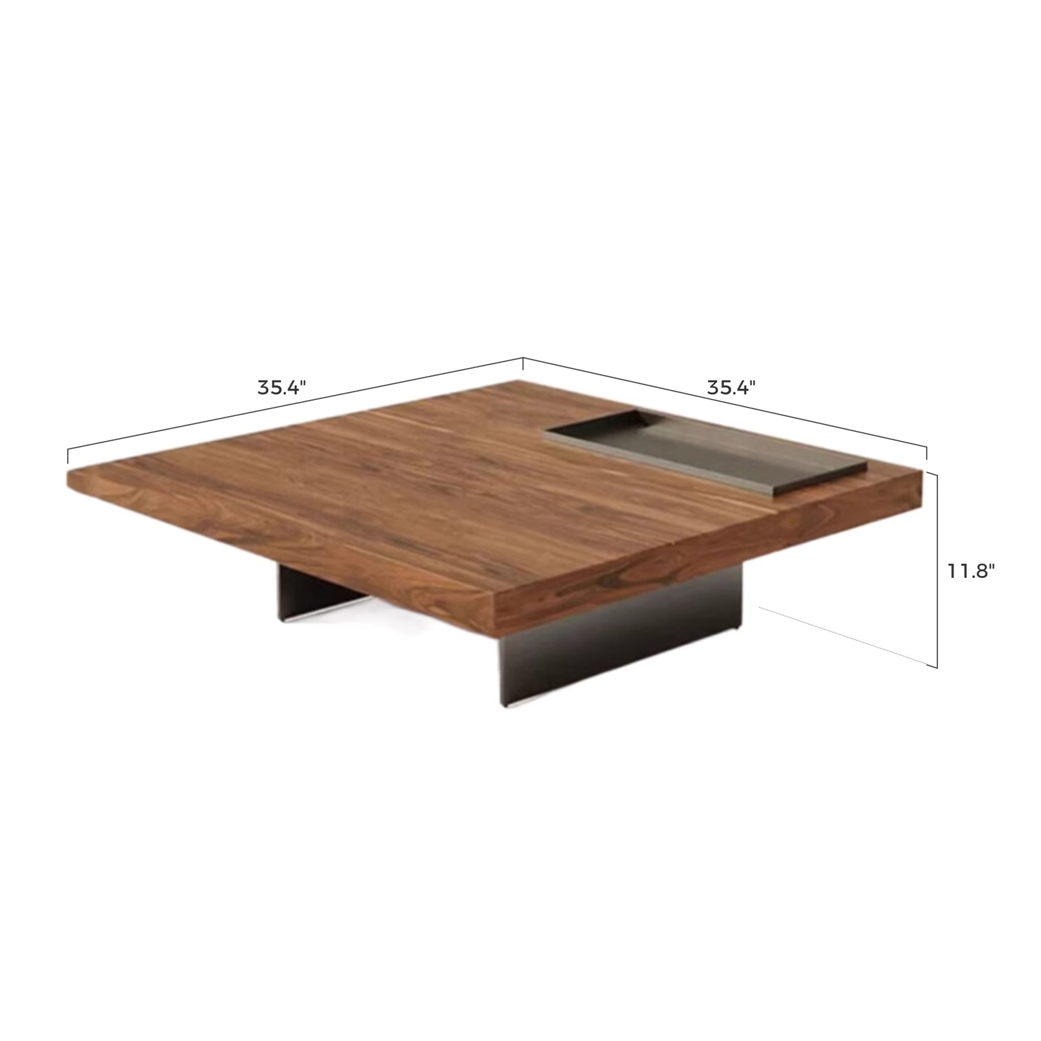 35.4''Modern Mid Century Square Walnut Coffee Table