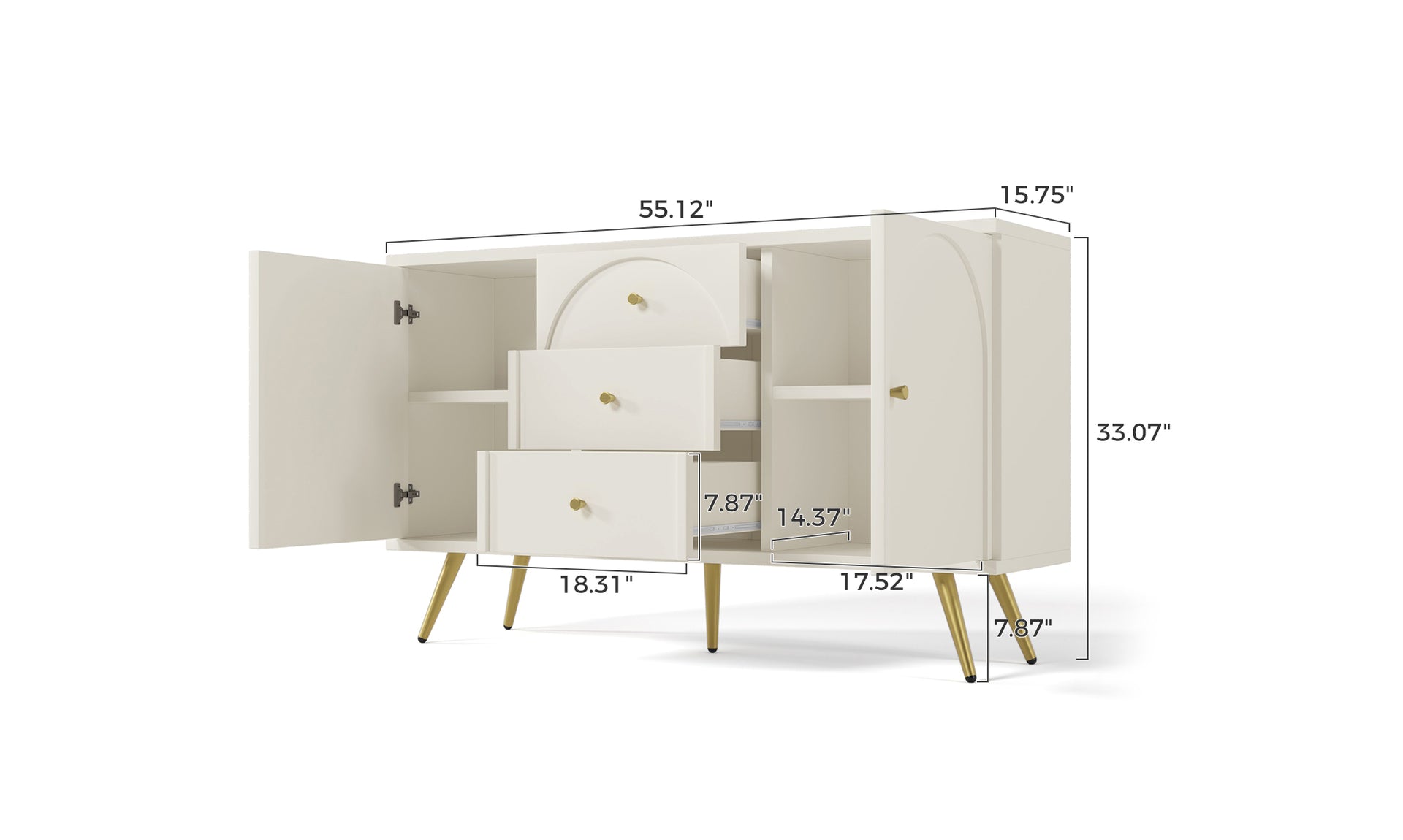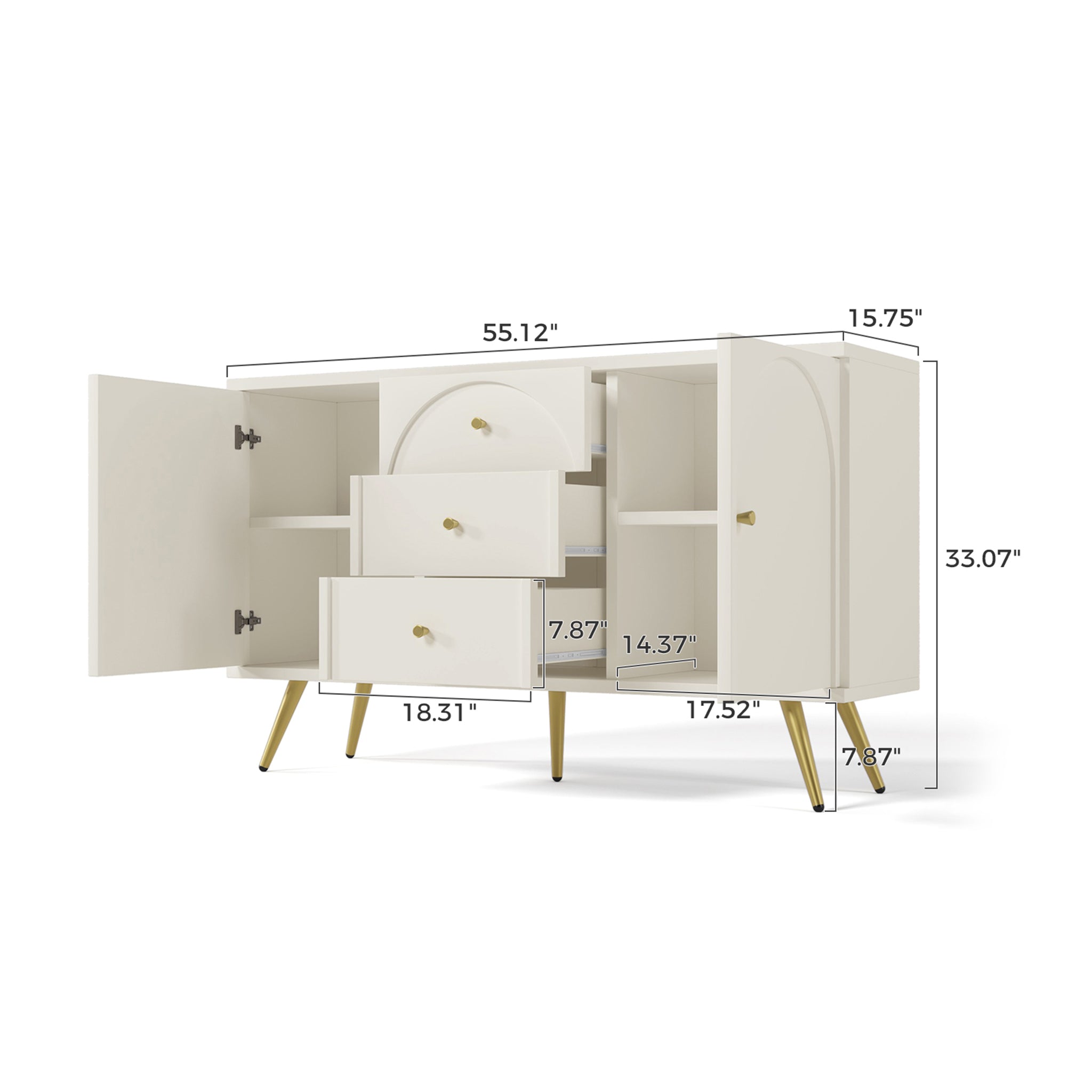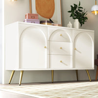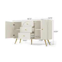 55''Mid Century Modern Storage Cabinet with 3 Drawers and 2 Doors for Kitchen and Living Room