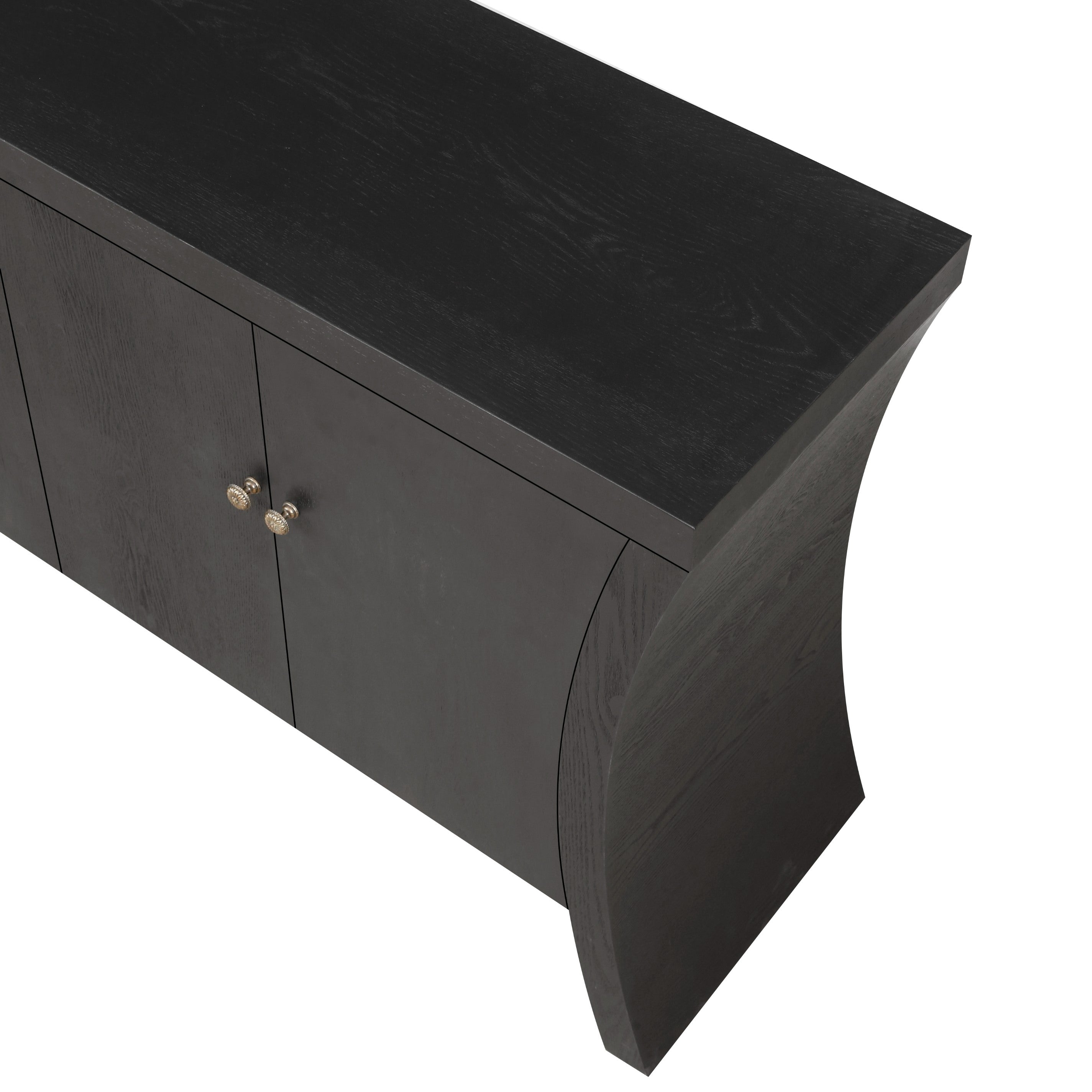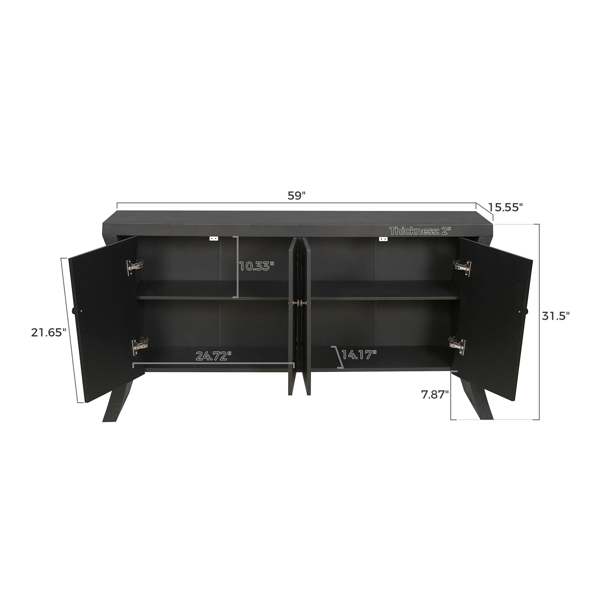59'' Mid-Century Industrial Credenza Wood Sideboard Buffet Cabinet with Curved Legs and Vintage Bronze Handles