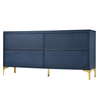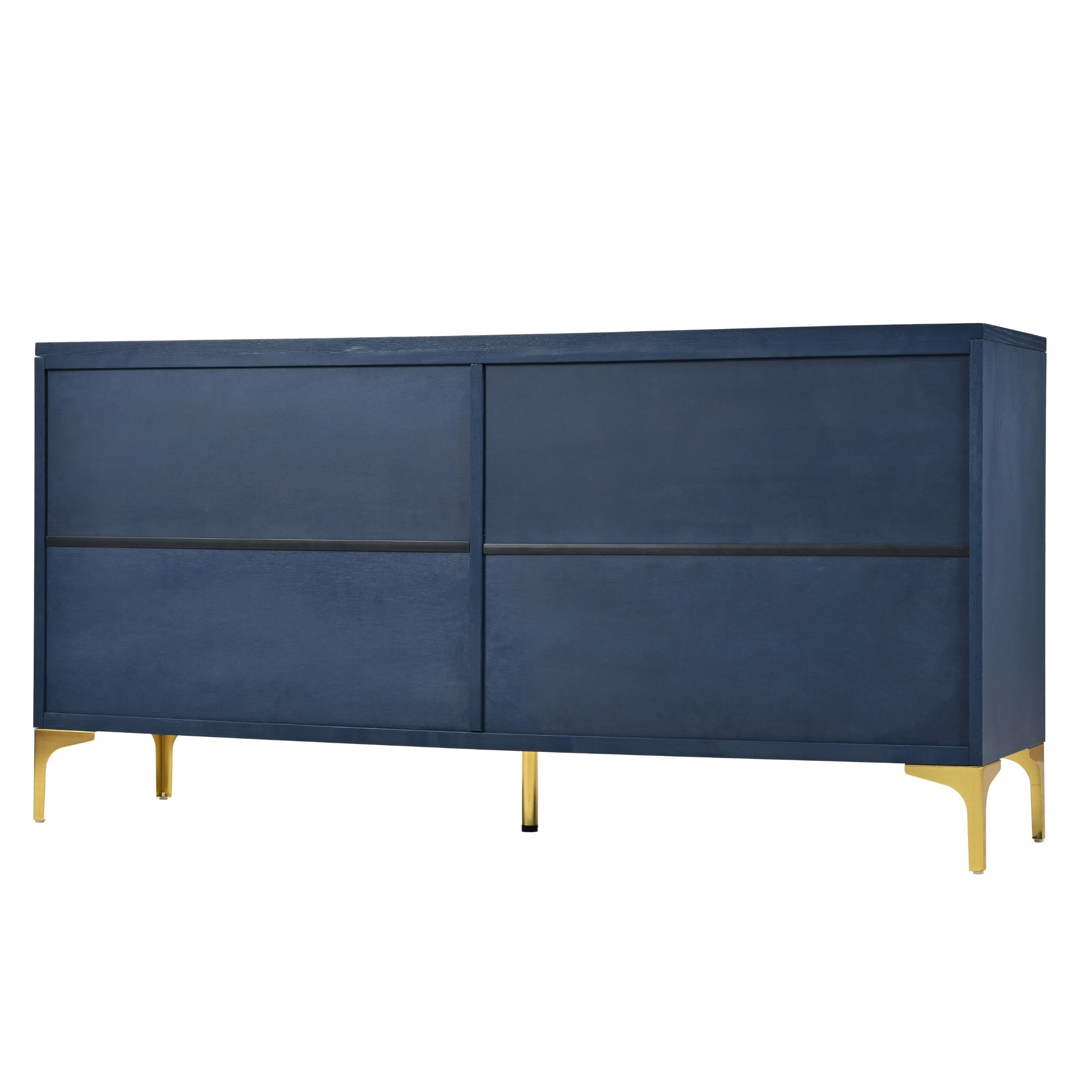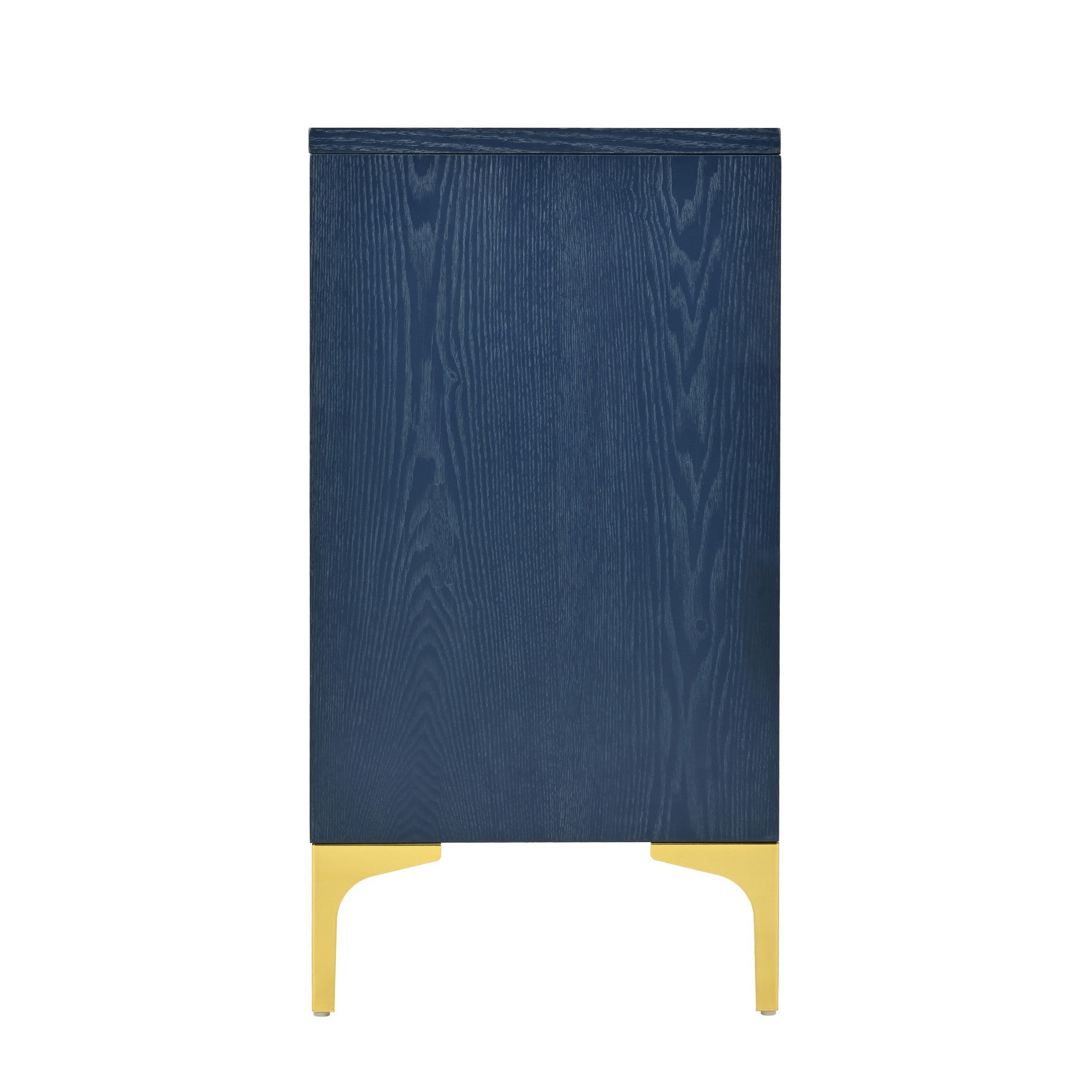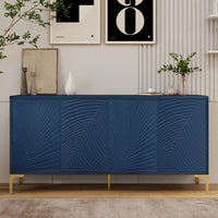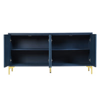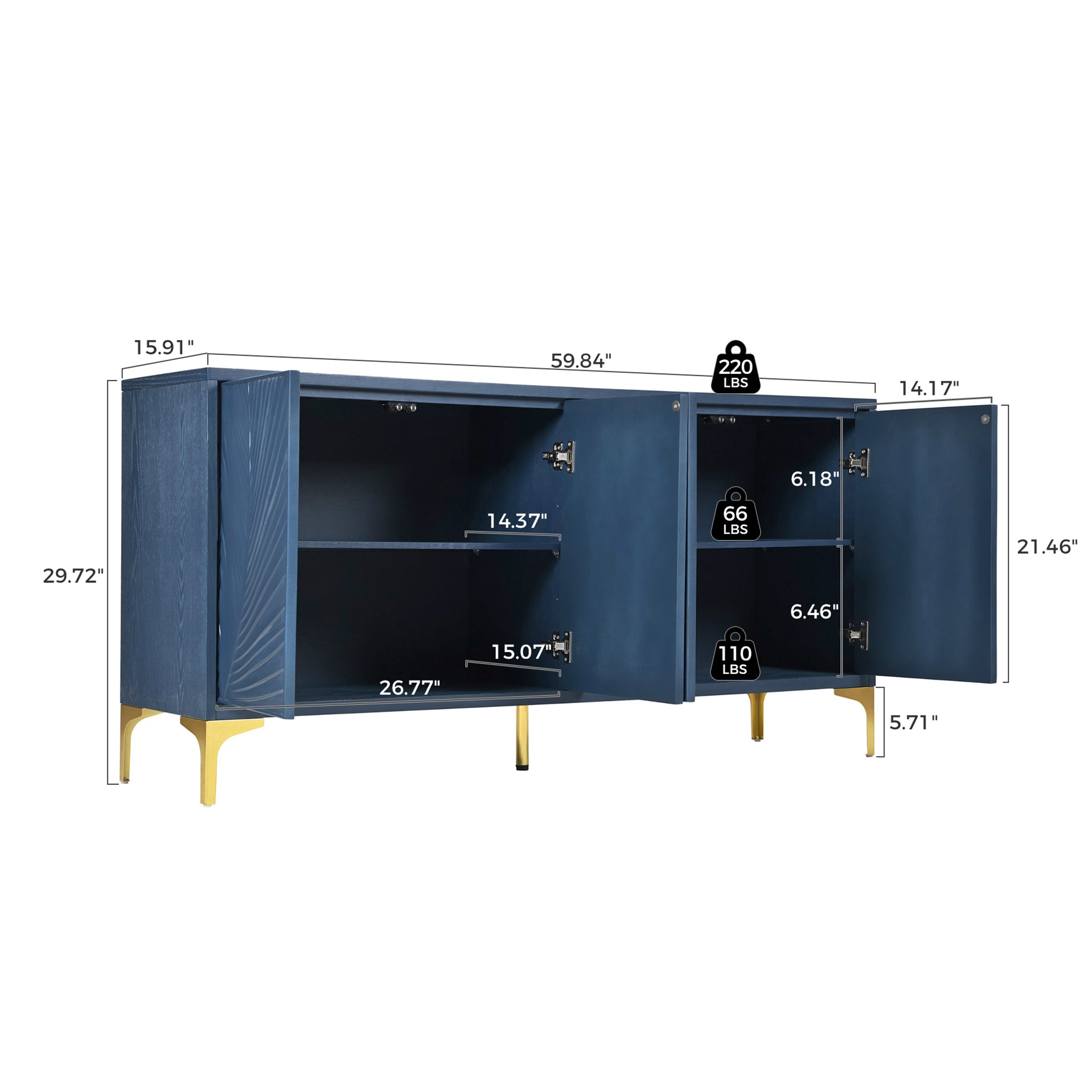 • 59'' Mid-Century Modern Storage Cabinet with Natural Wood Veneer, Metal Legs, and Spacious Adjustable ShelvesBlue
