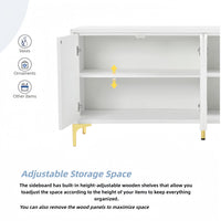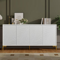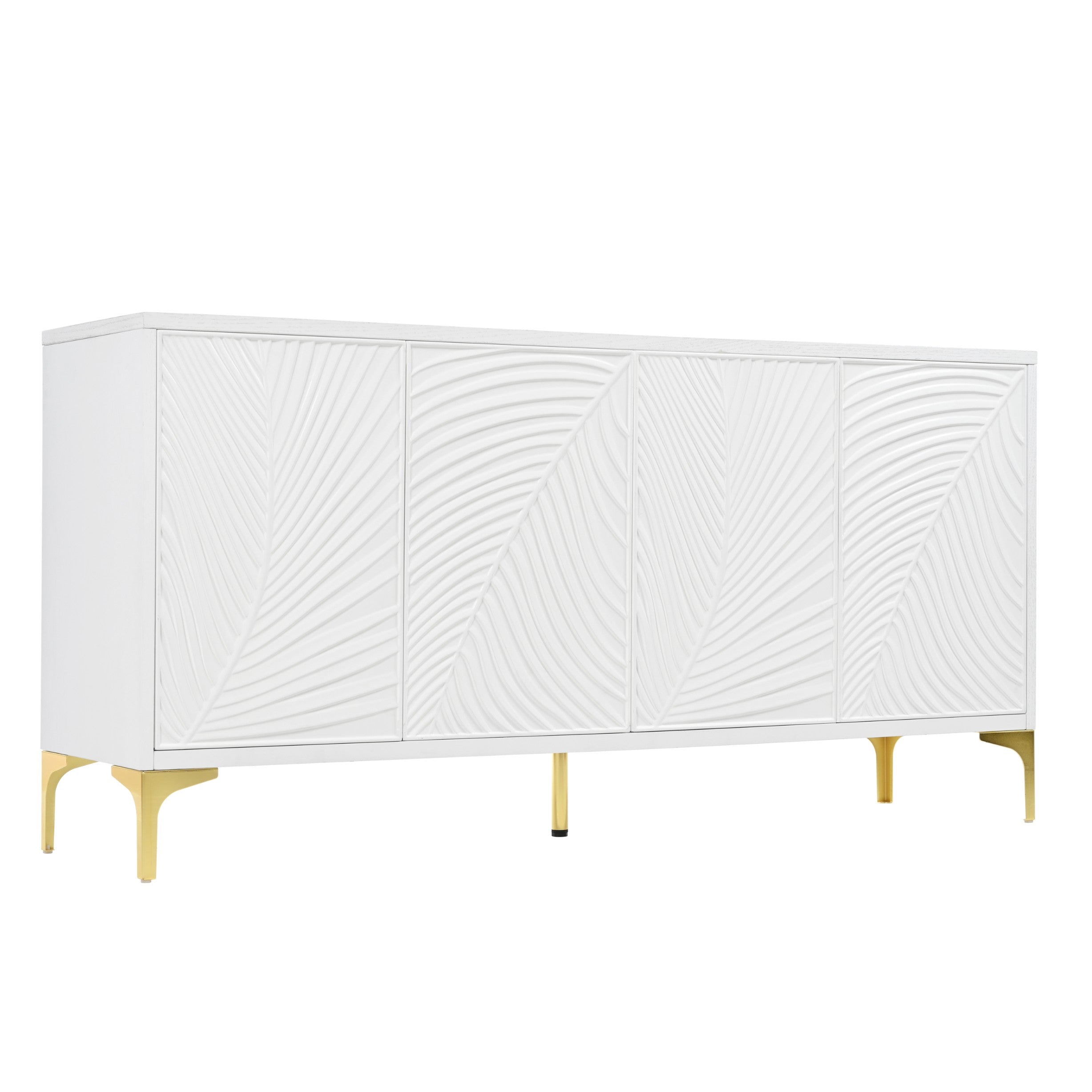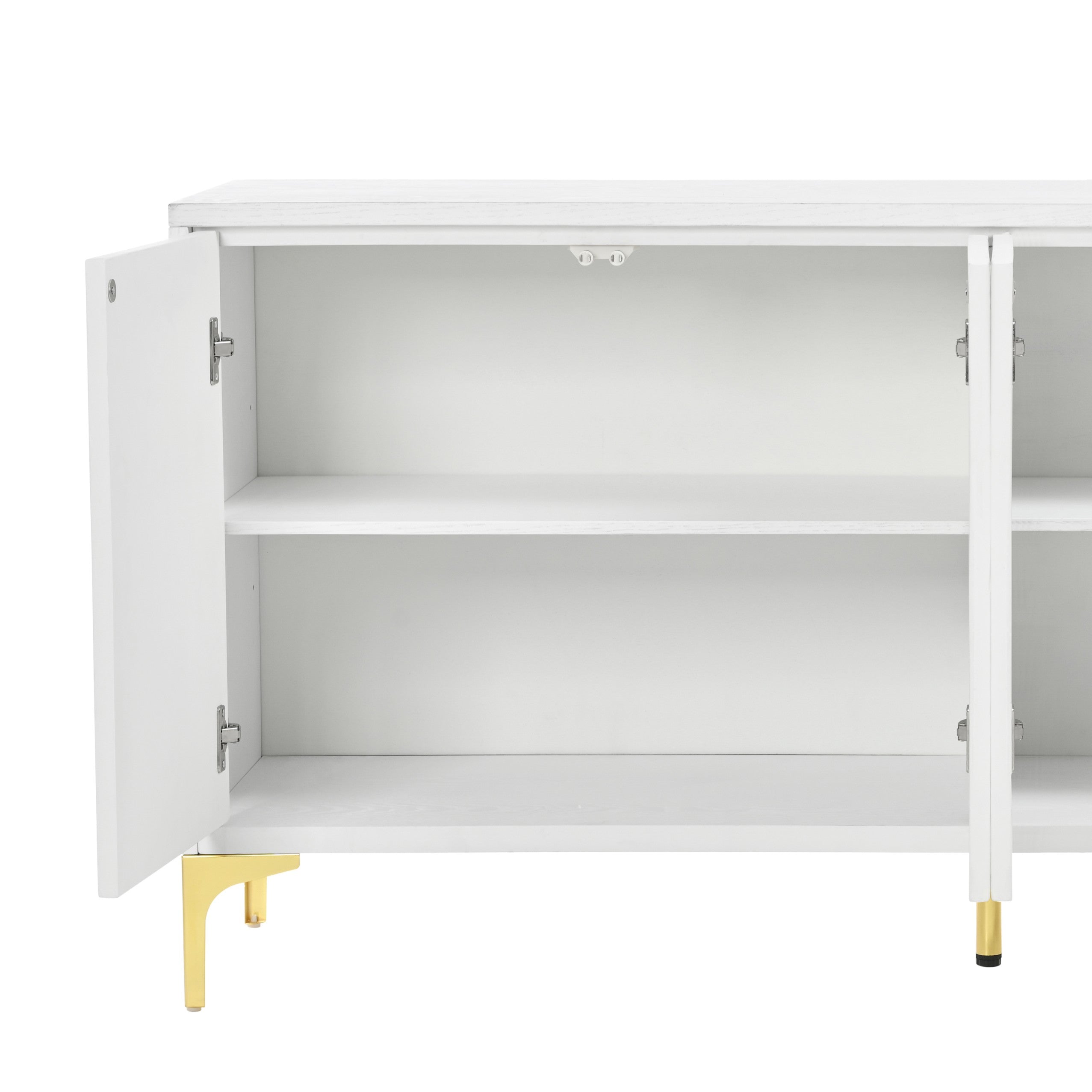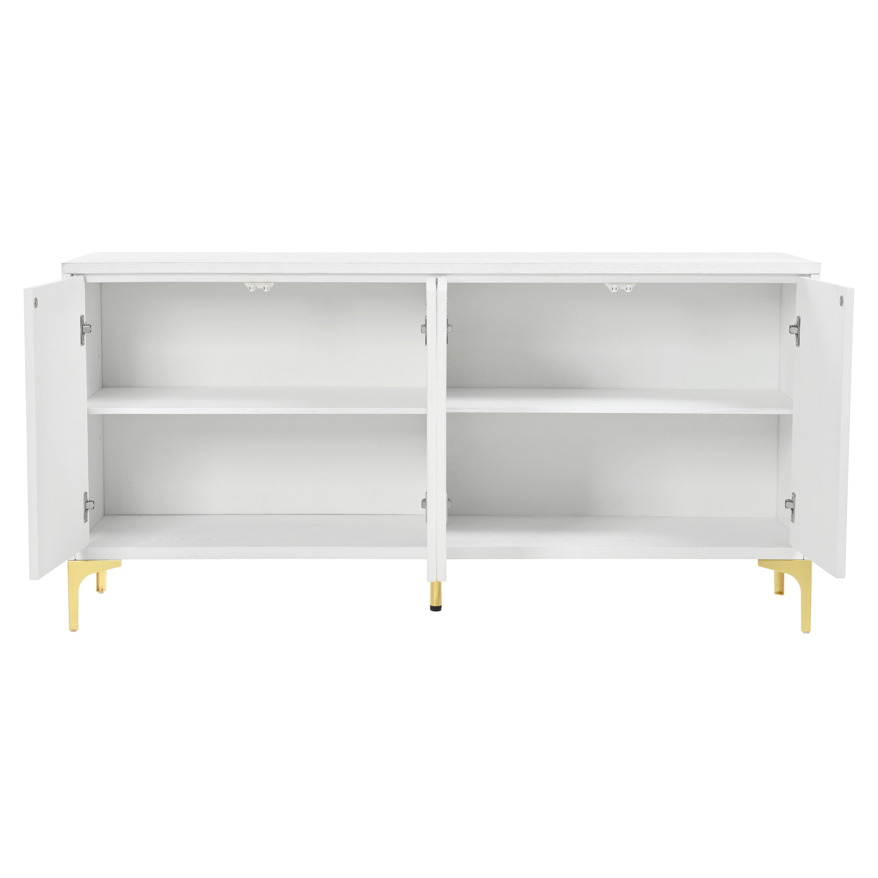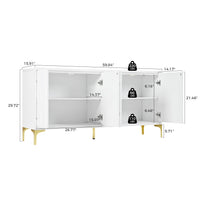 • 59'' Mid-Century Modern Storage Cabinet with Natural Wood Veneer, Metal Legs, and Spacious Adjustable ShelvesBlue