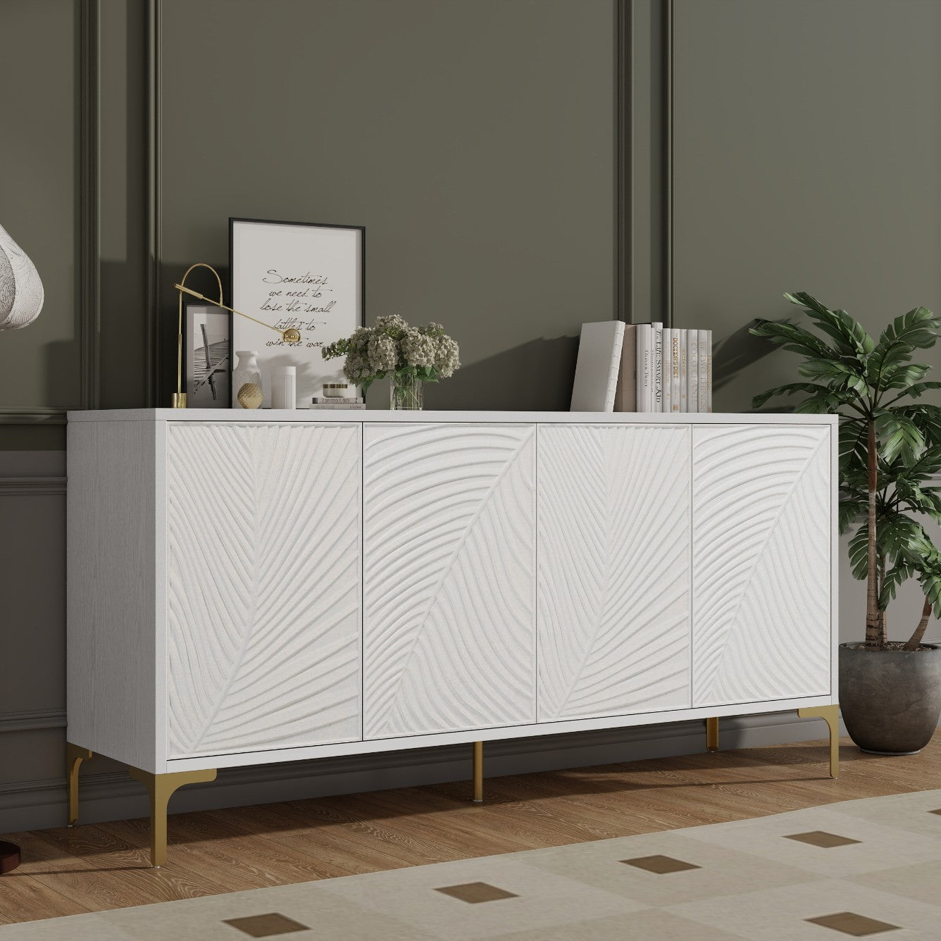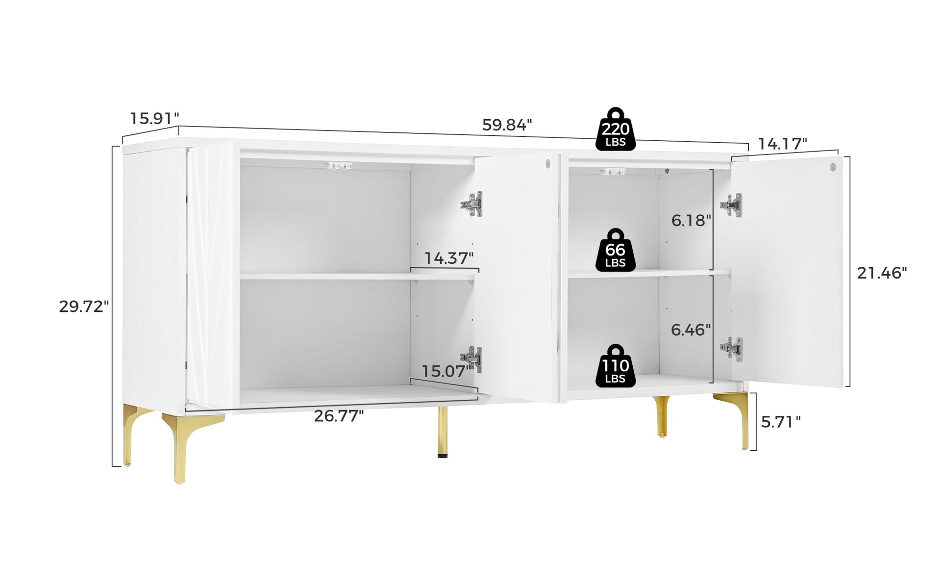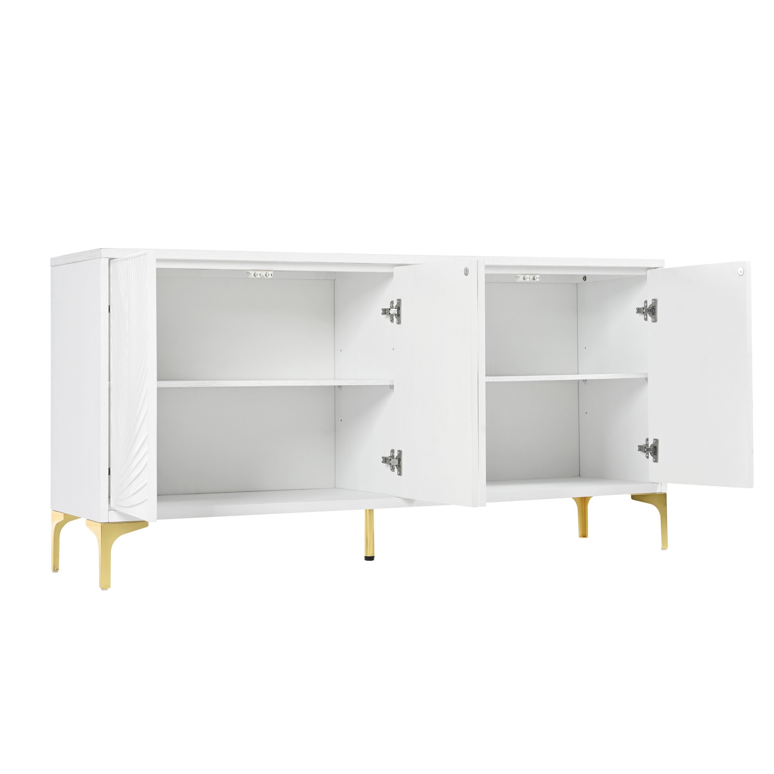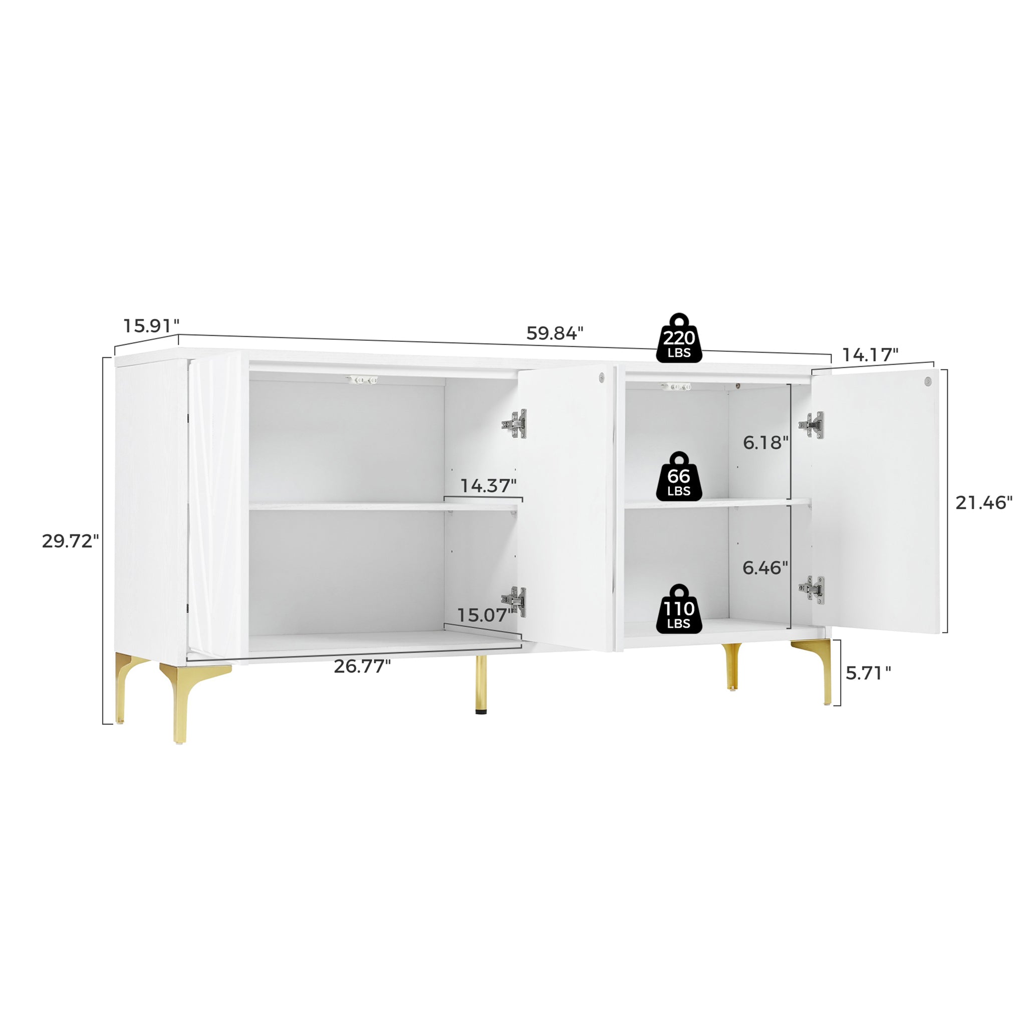 59'' Mid-Century Modern Storage Cabinet with Natural Wood Veneer, Metal Legs, and Spacious Adjustable Shelves
