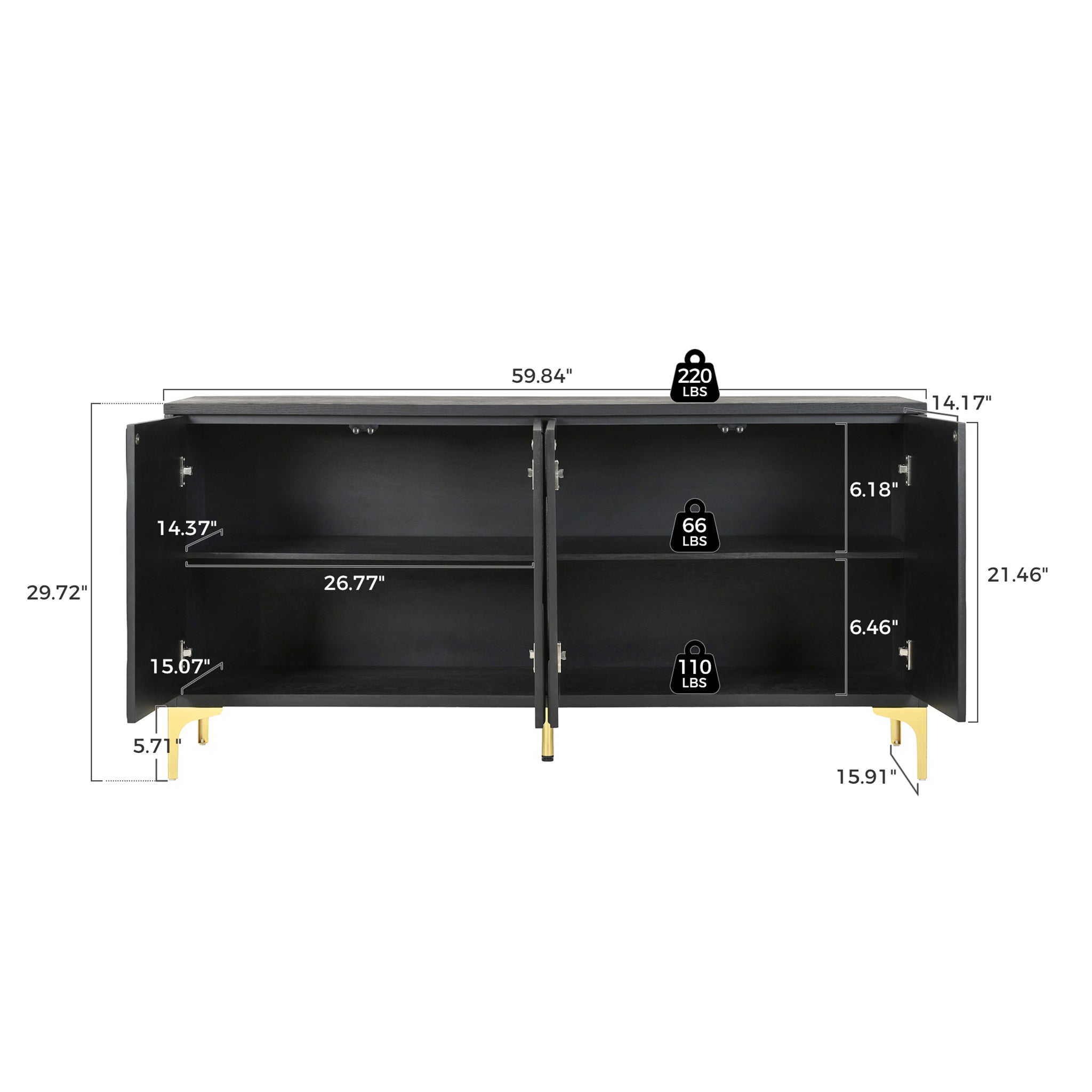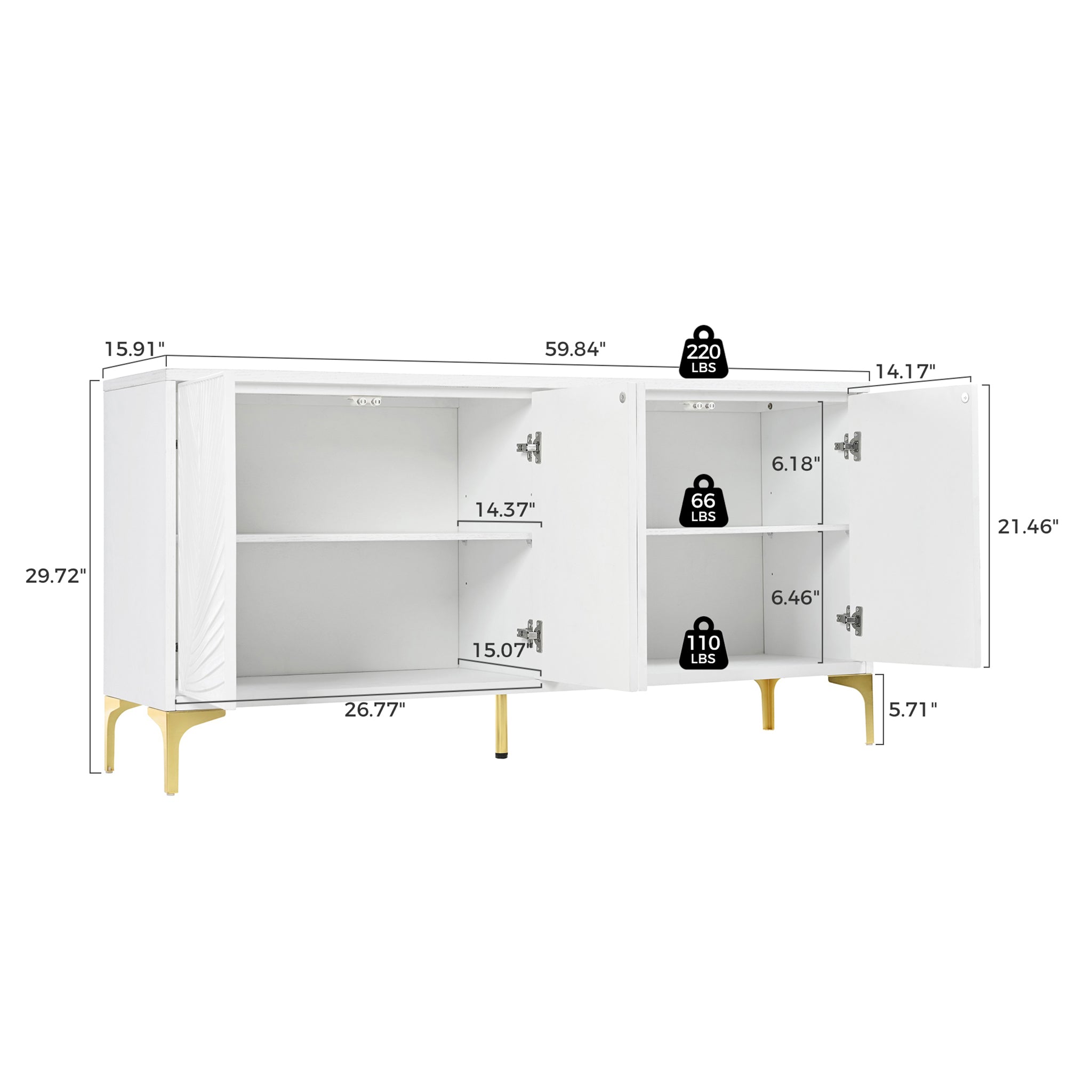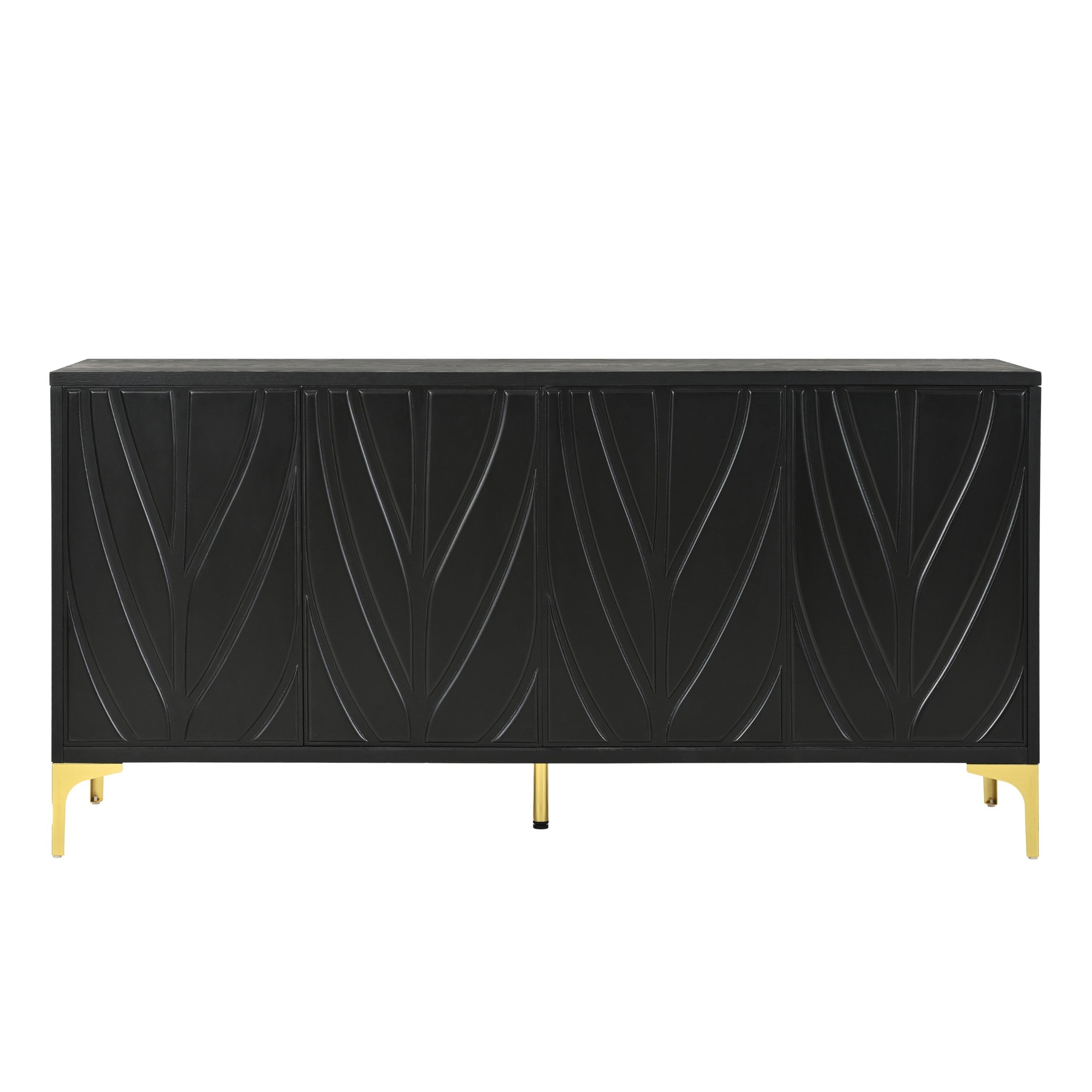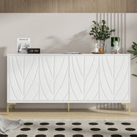59'' Minimalist Modern Credenza Sideboard Buffet Cabinet with Gold Legs and Carved Door Panels