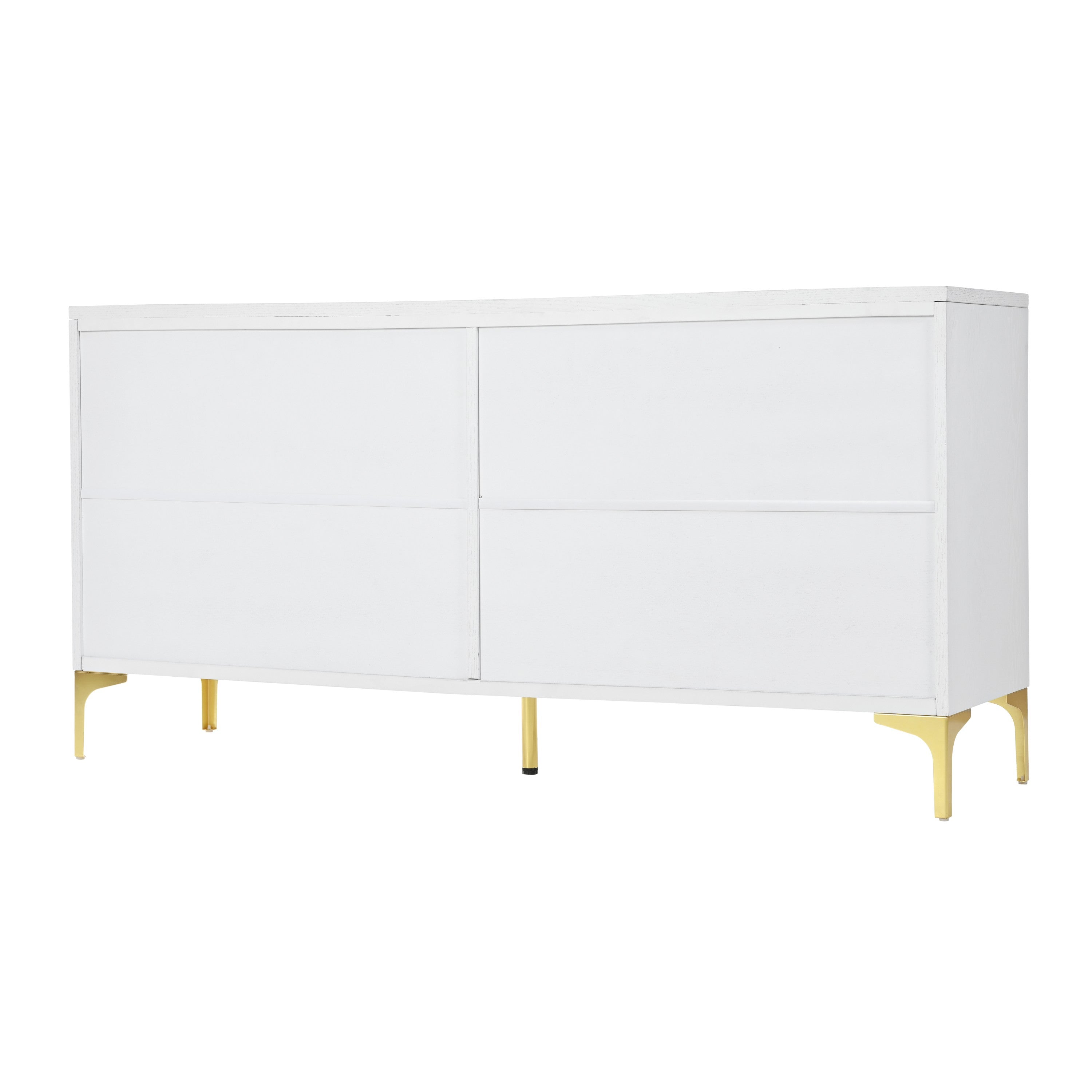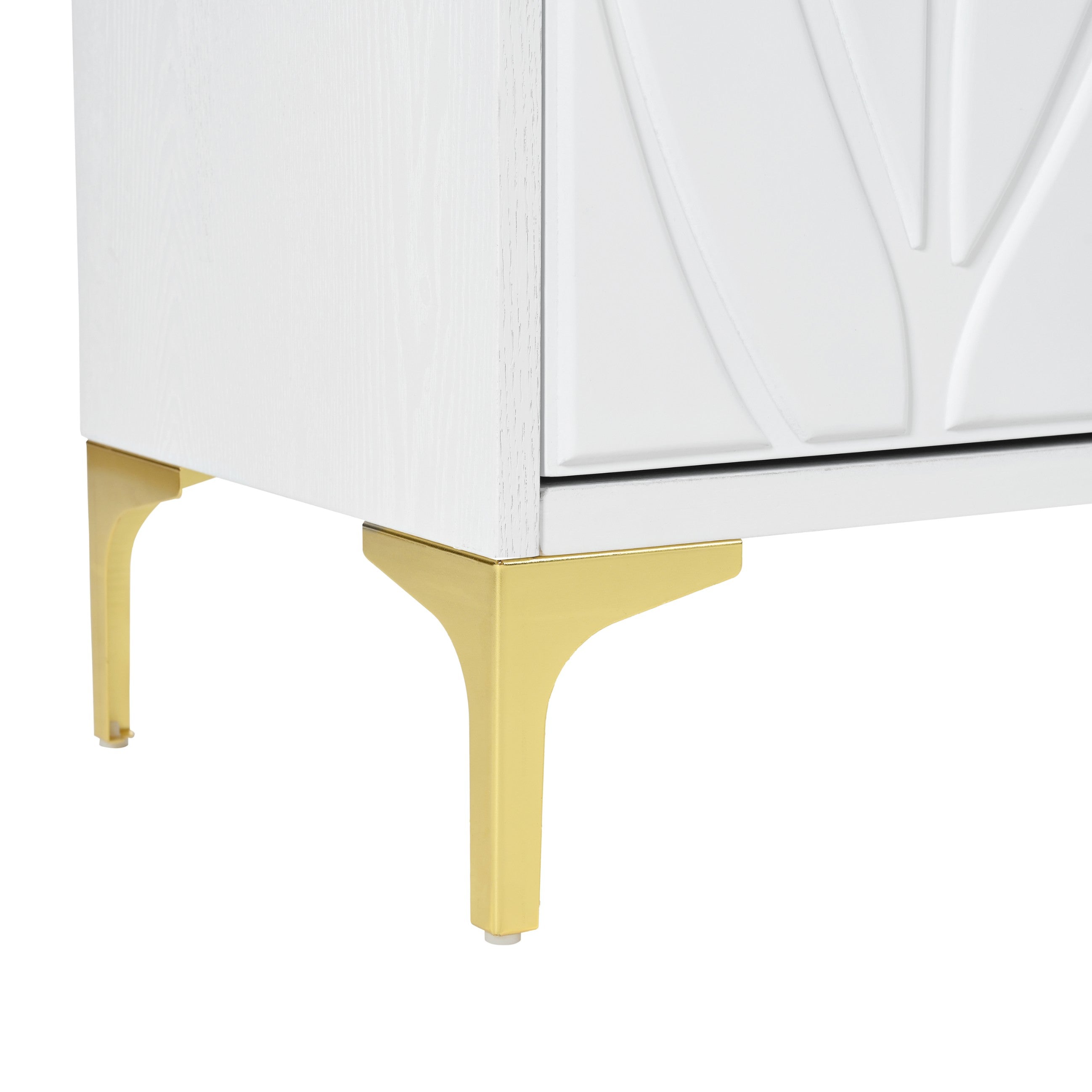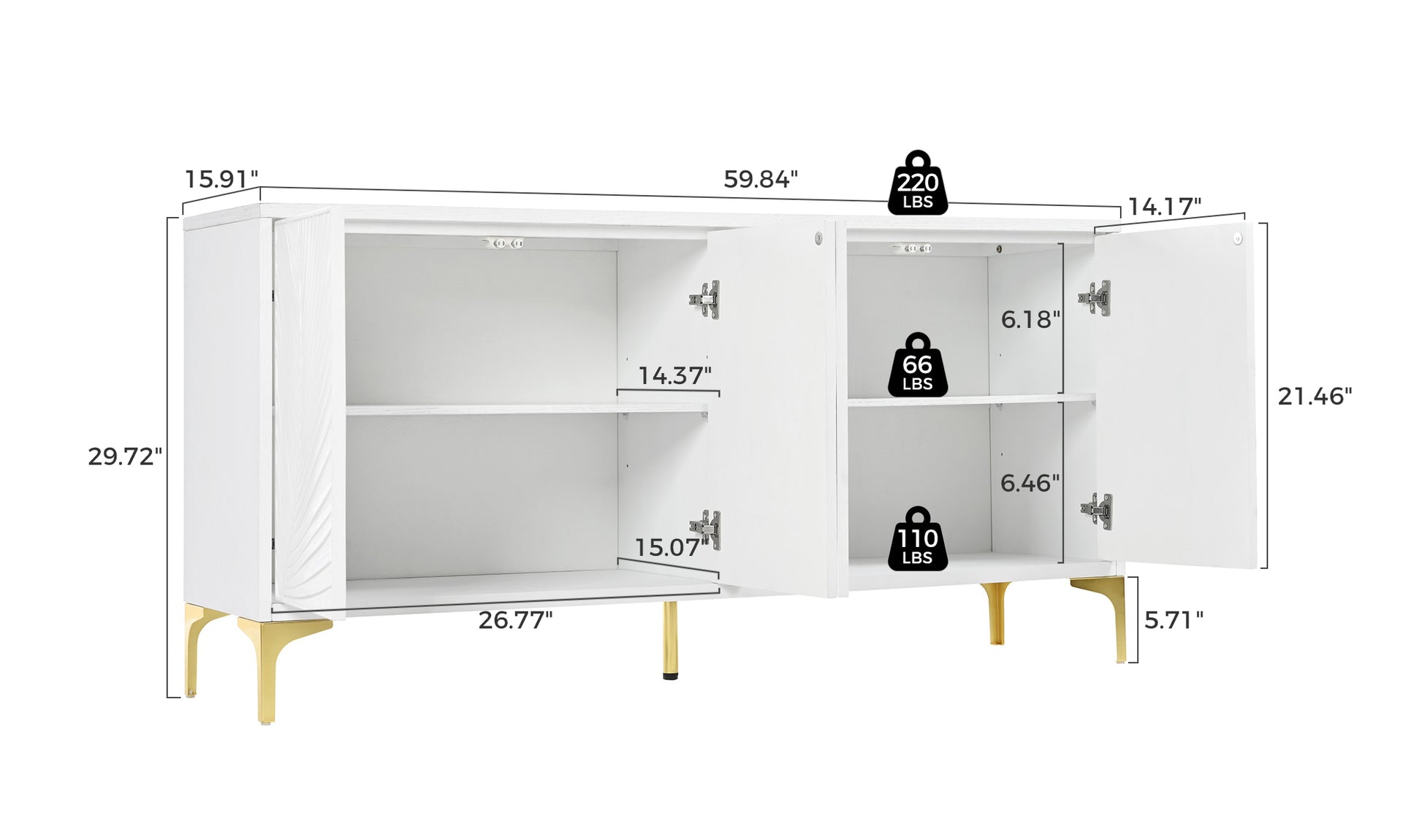 59'' Minimalist Modern Credenza Sideboard Buffet Cabinet with Gold Legs and Carved Door Panels