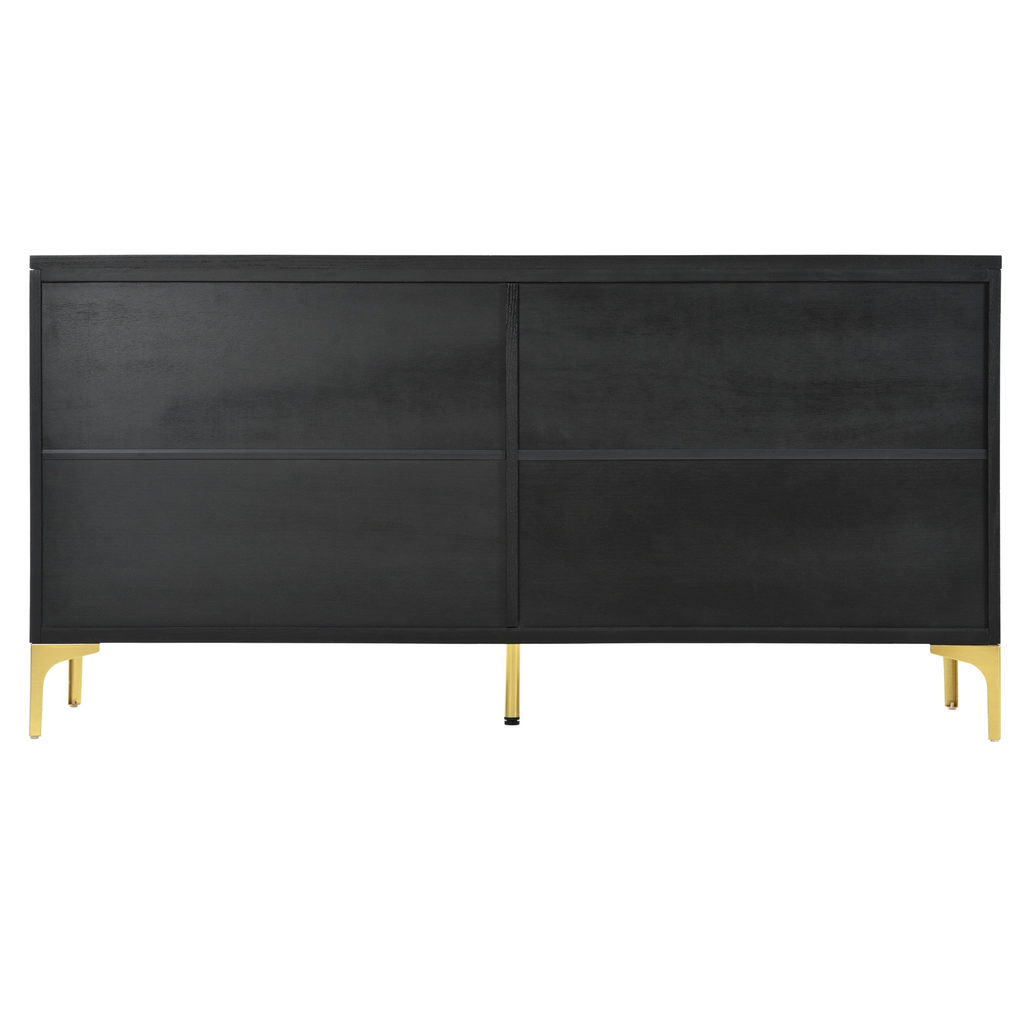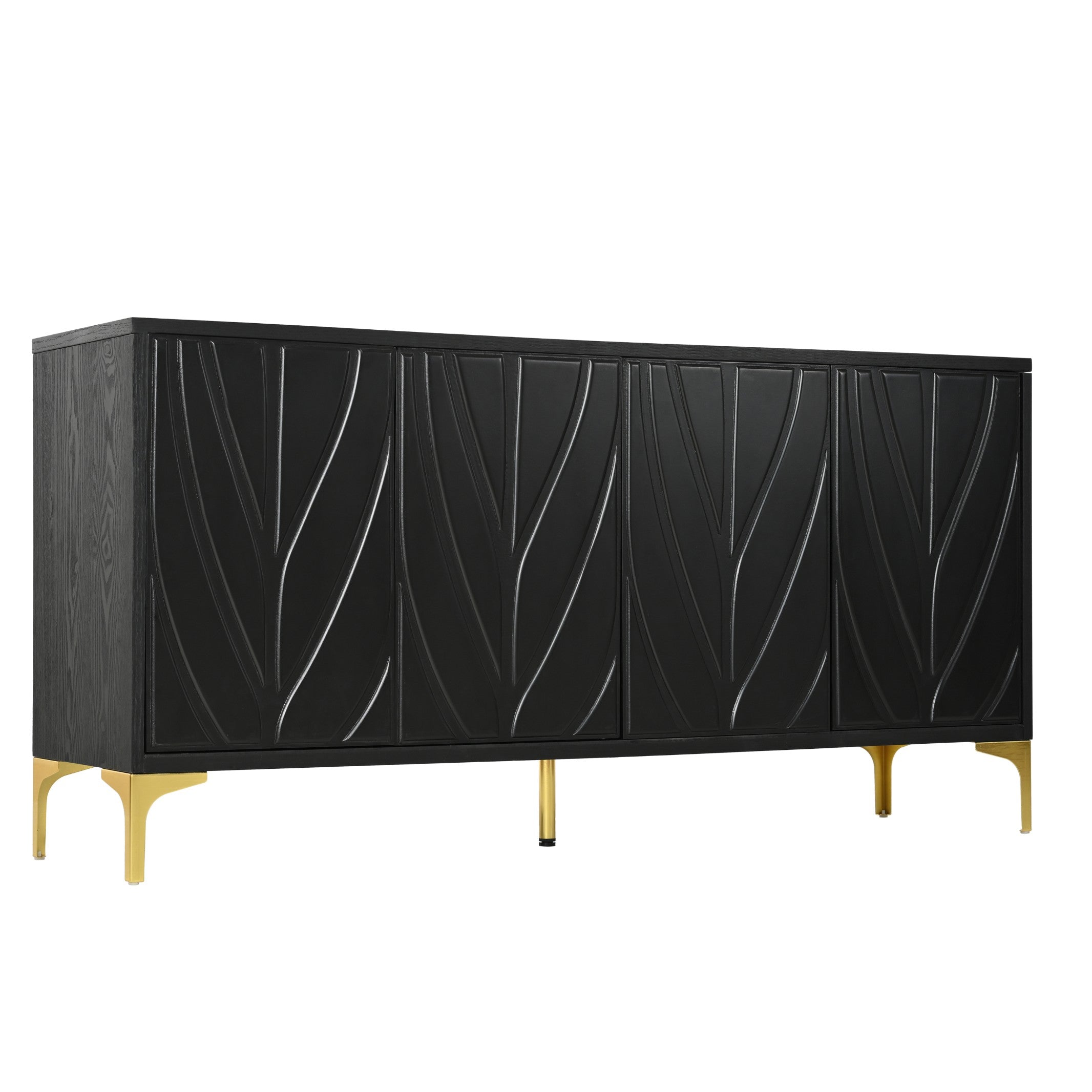 • 59'' Minimalist Modern Credenza Sideboard Buffet Cabinet with Gold Legs and Carved Door PanelsBlack