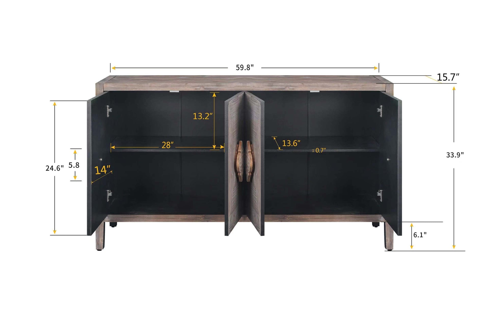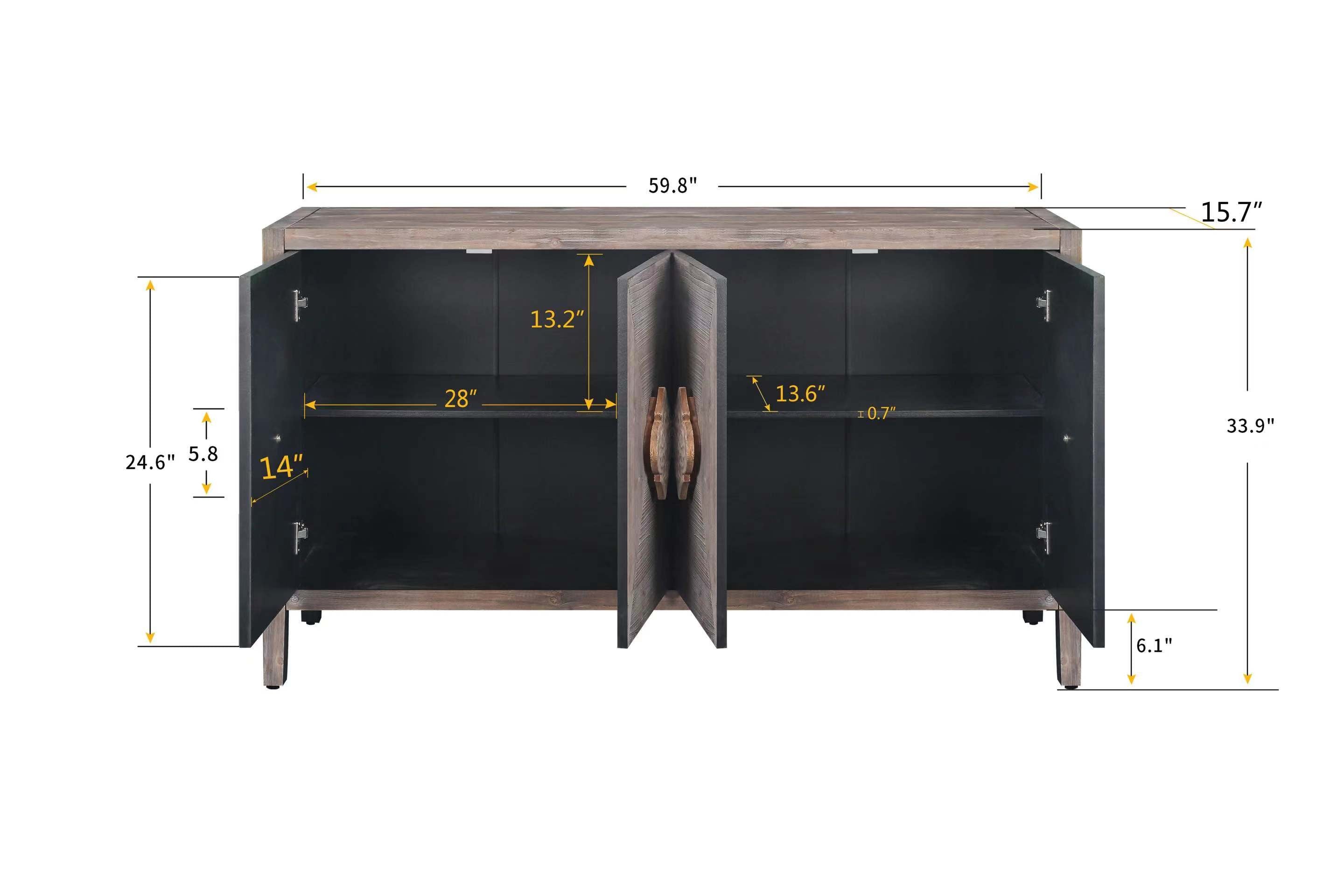 59'' Vintage Sideboard Cabinet with Carved Flower Handles and Adjustable Shelves