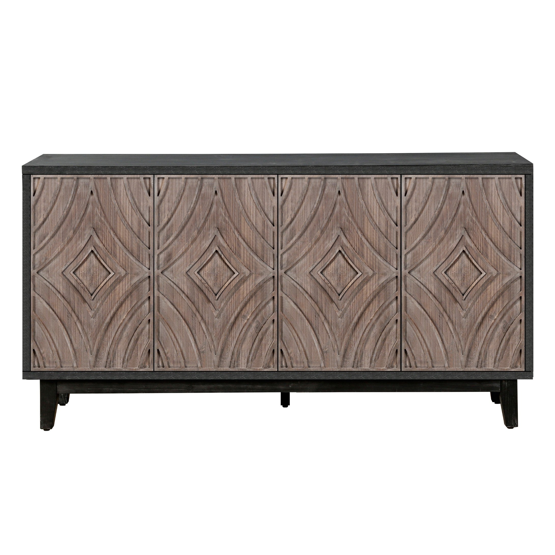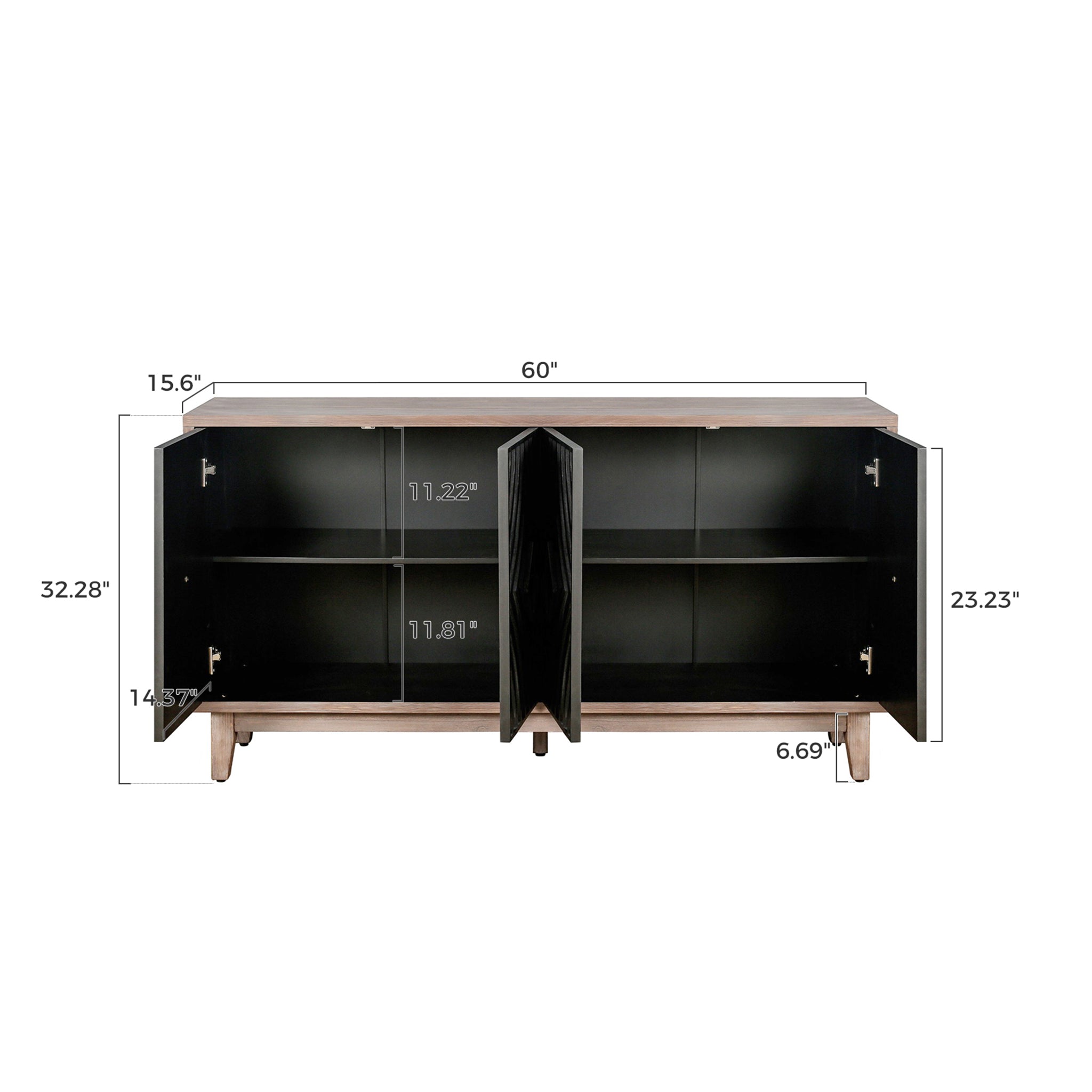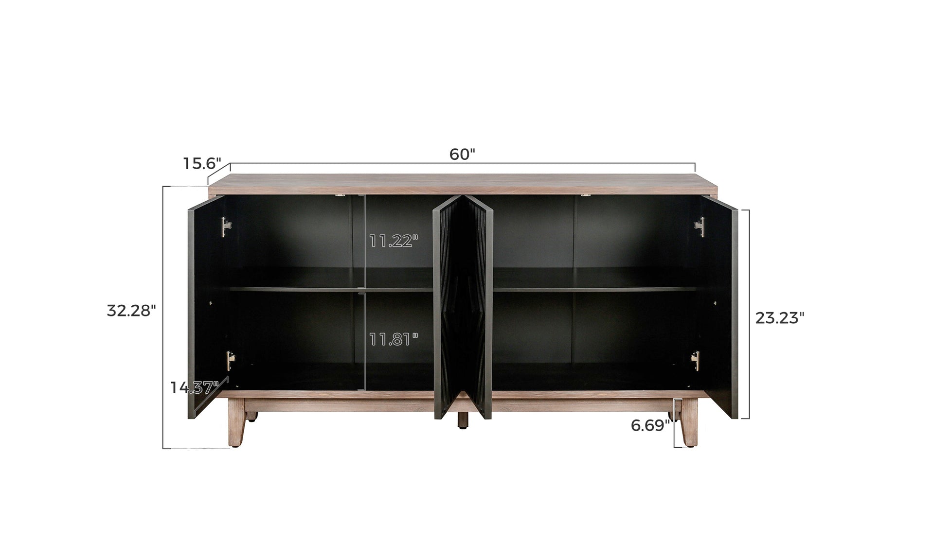 • 60'' Classic American Country Buffet Cabinet with Fluted Doors and Symmetrical DesignBlack