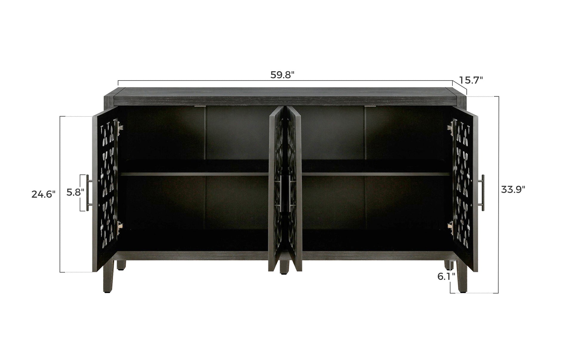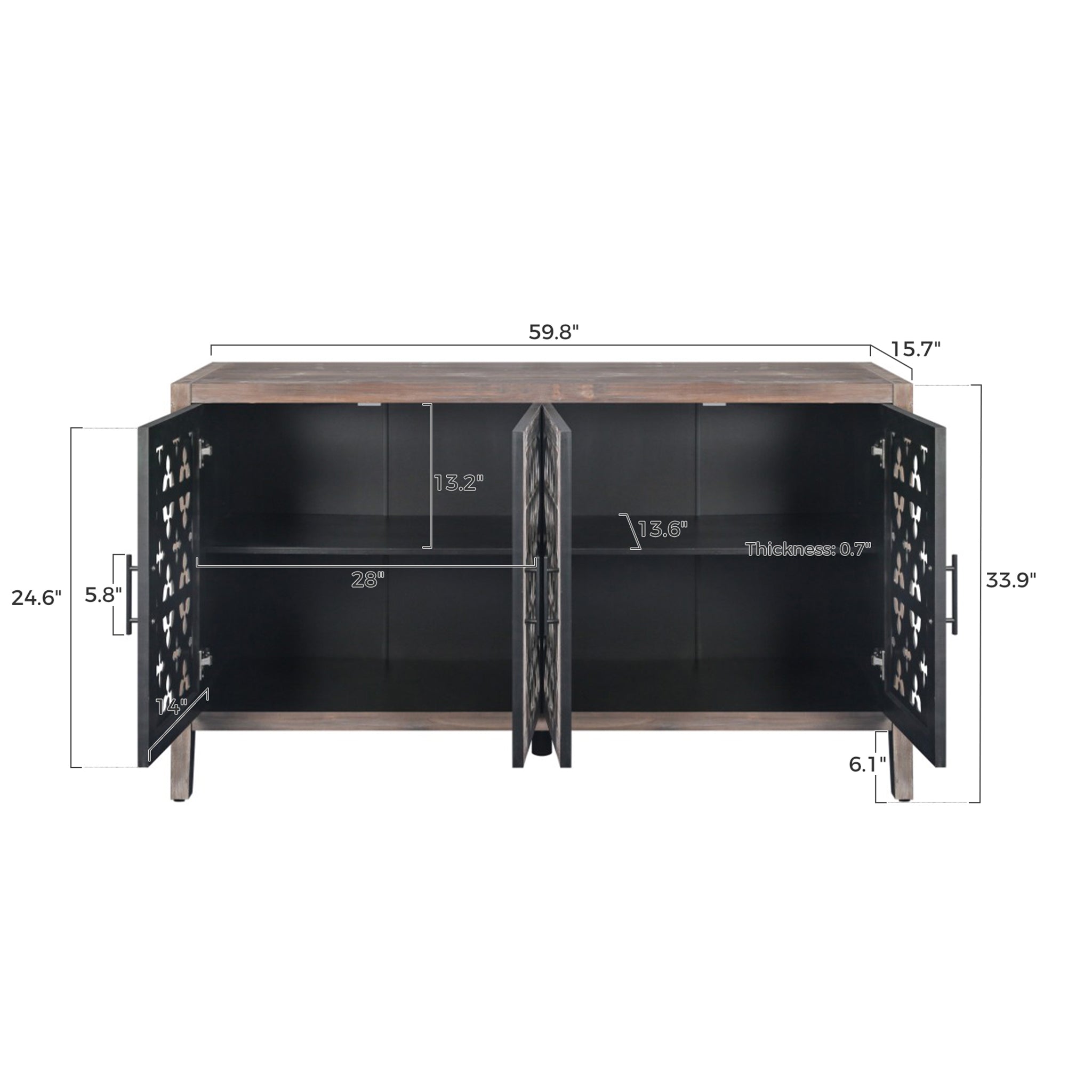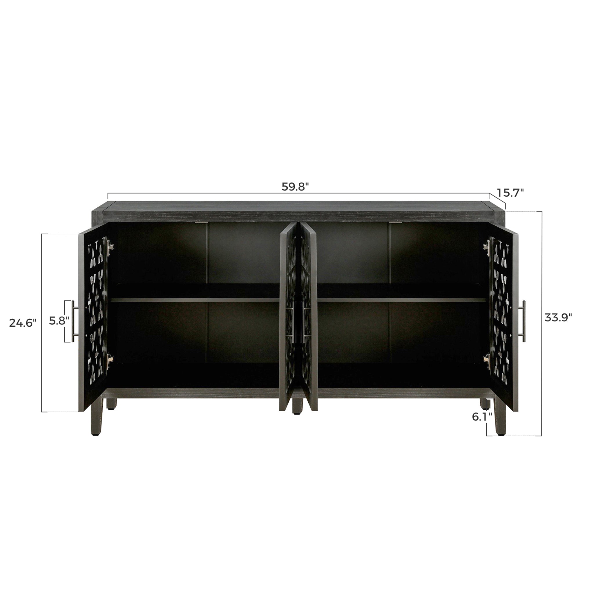 60'' Classic Sideboard Buffet Cabinet with Hollowed-Out Floral Pattern Doors