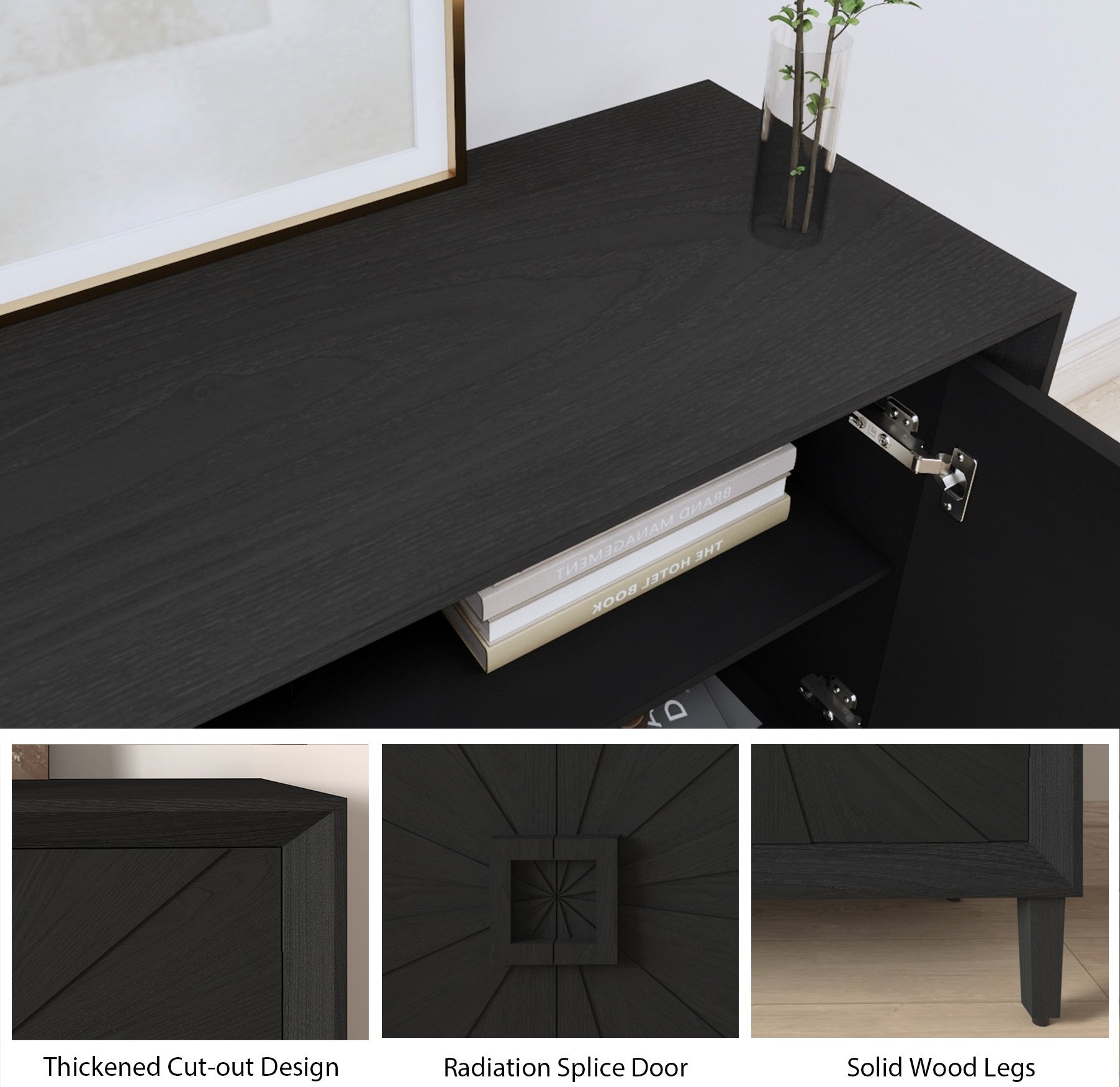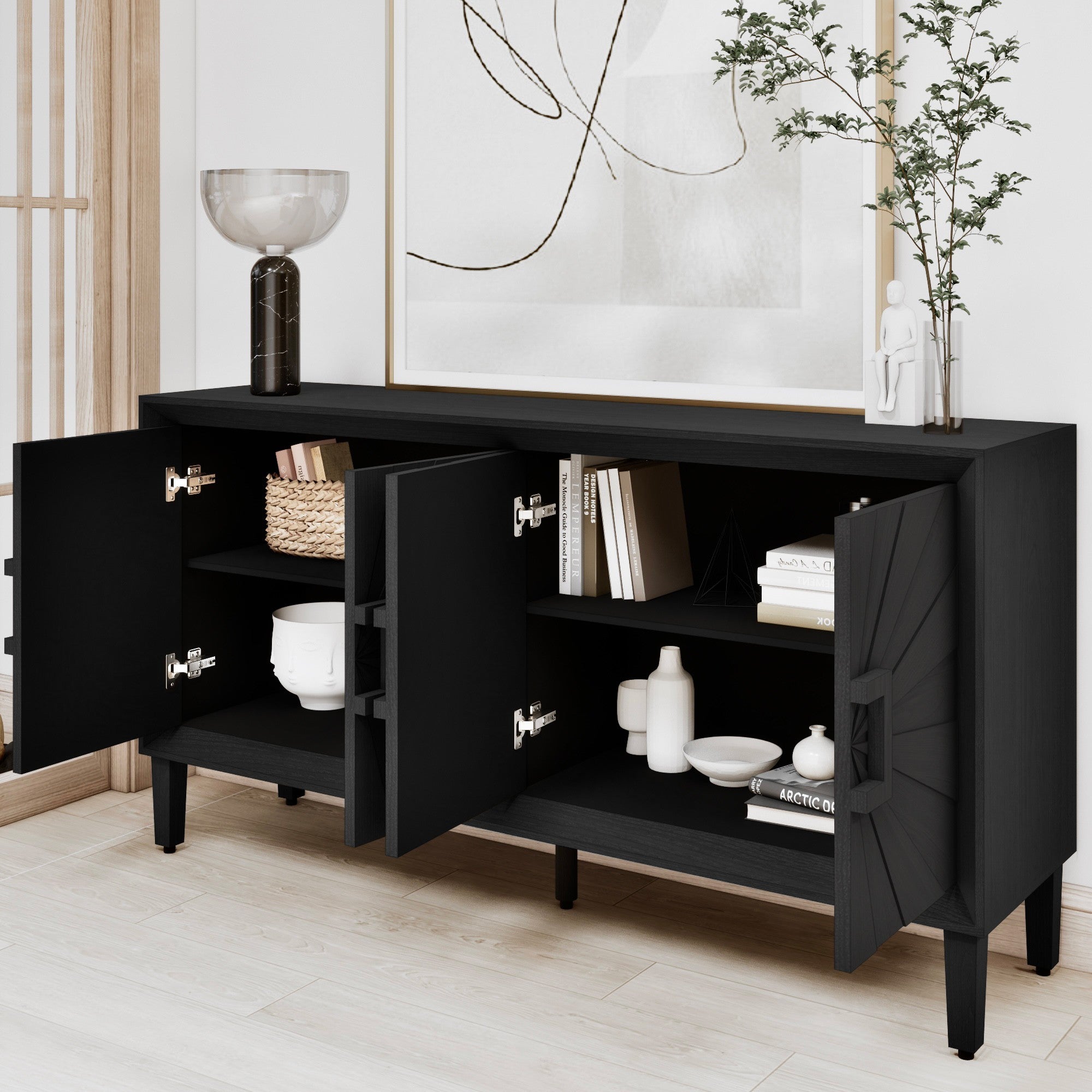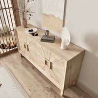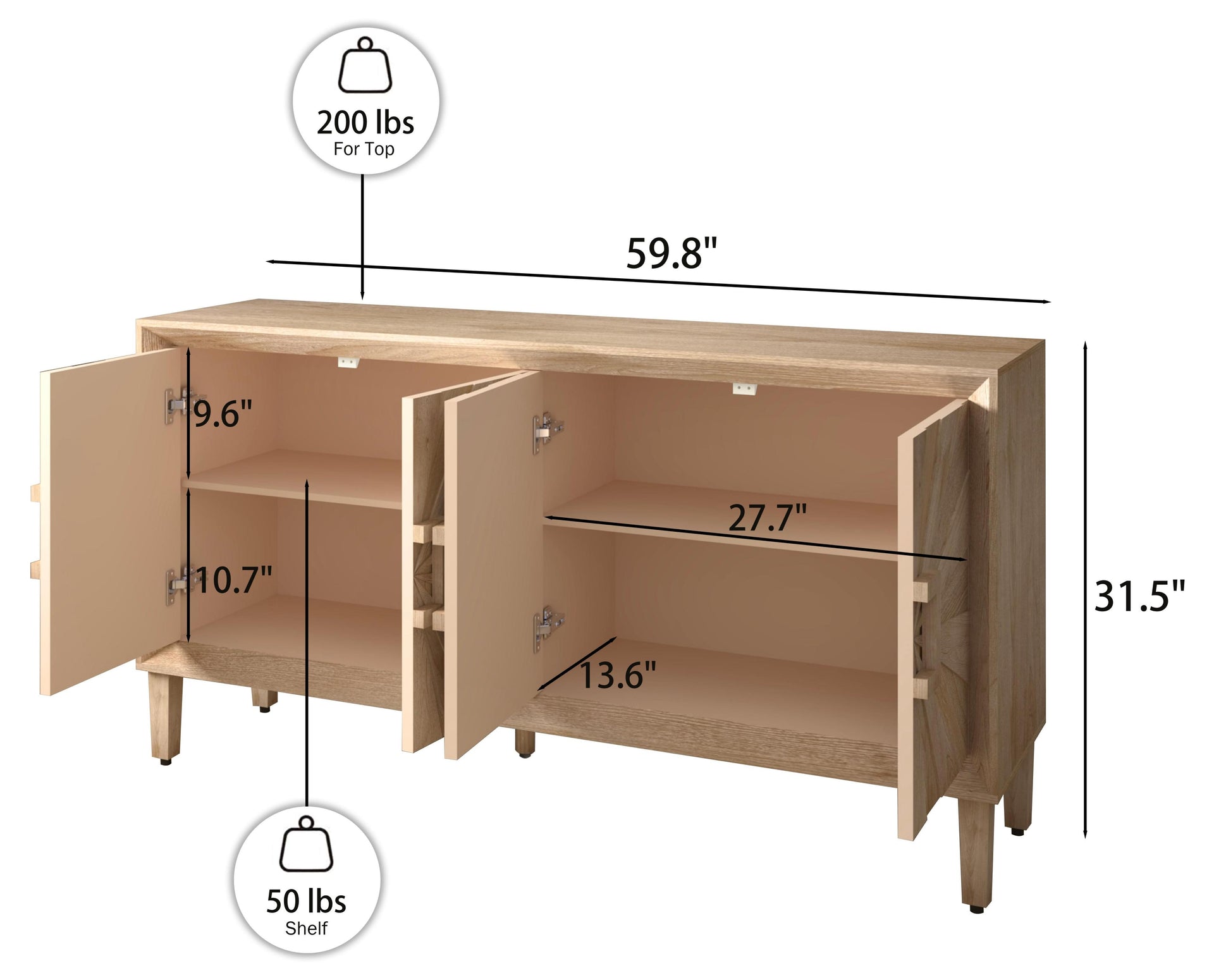 60" Farmhouse Credenza with Reinforced Antique Wood Frame and Adjustable Shelves
