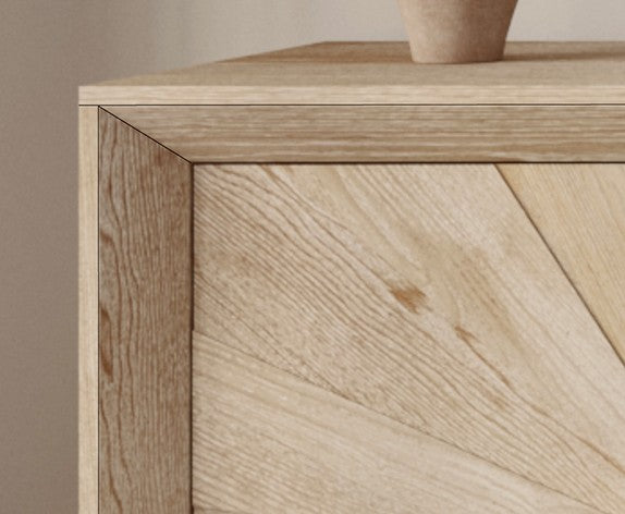 Constructed with a sturdy MDF frame and natural wood accents, this cabinet combines durability with warm, timeless appeal.