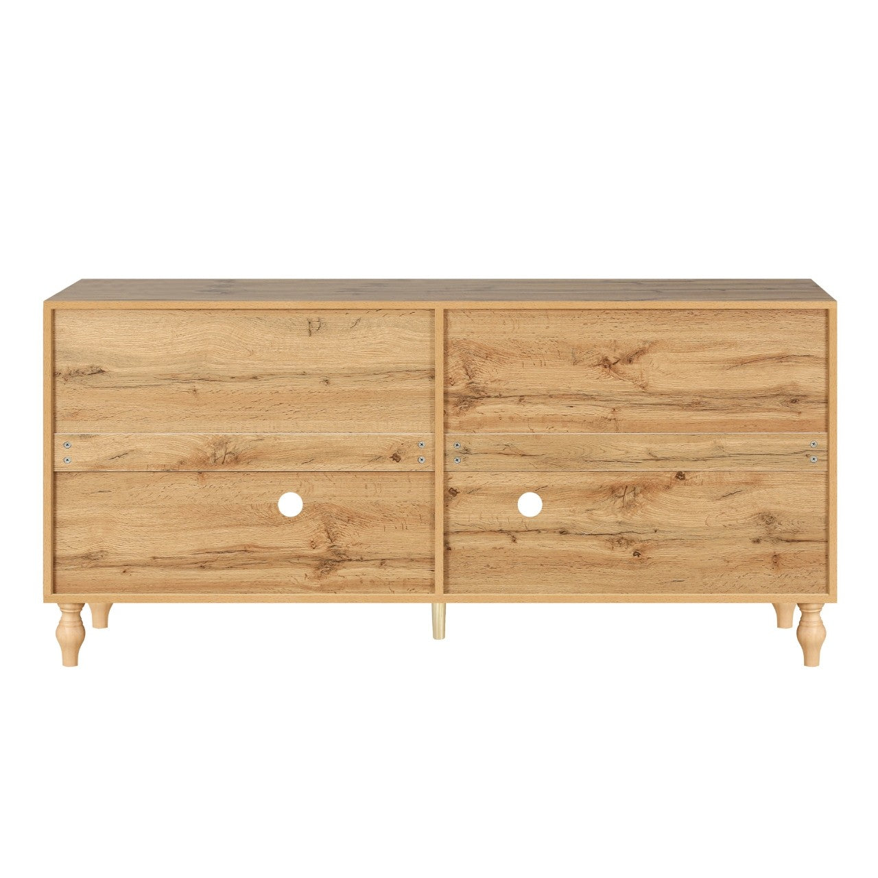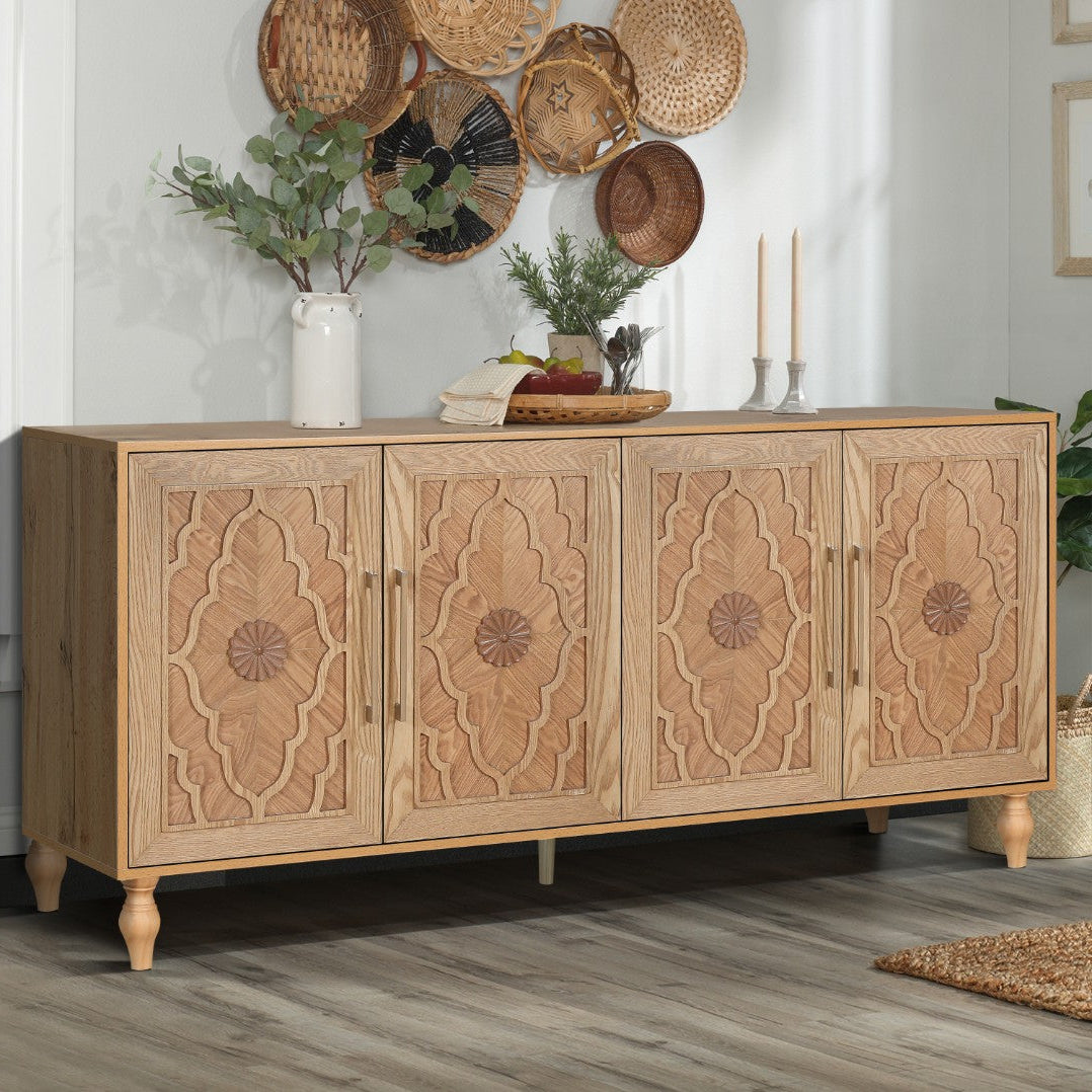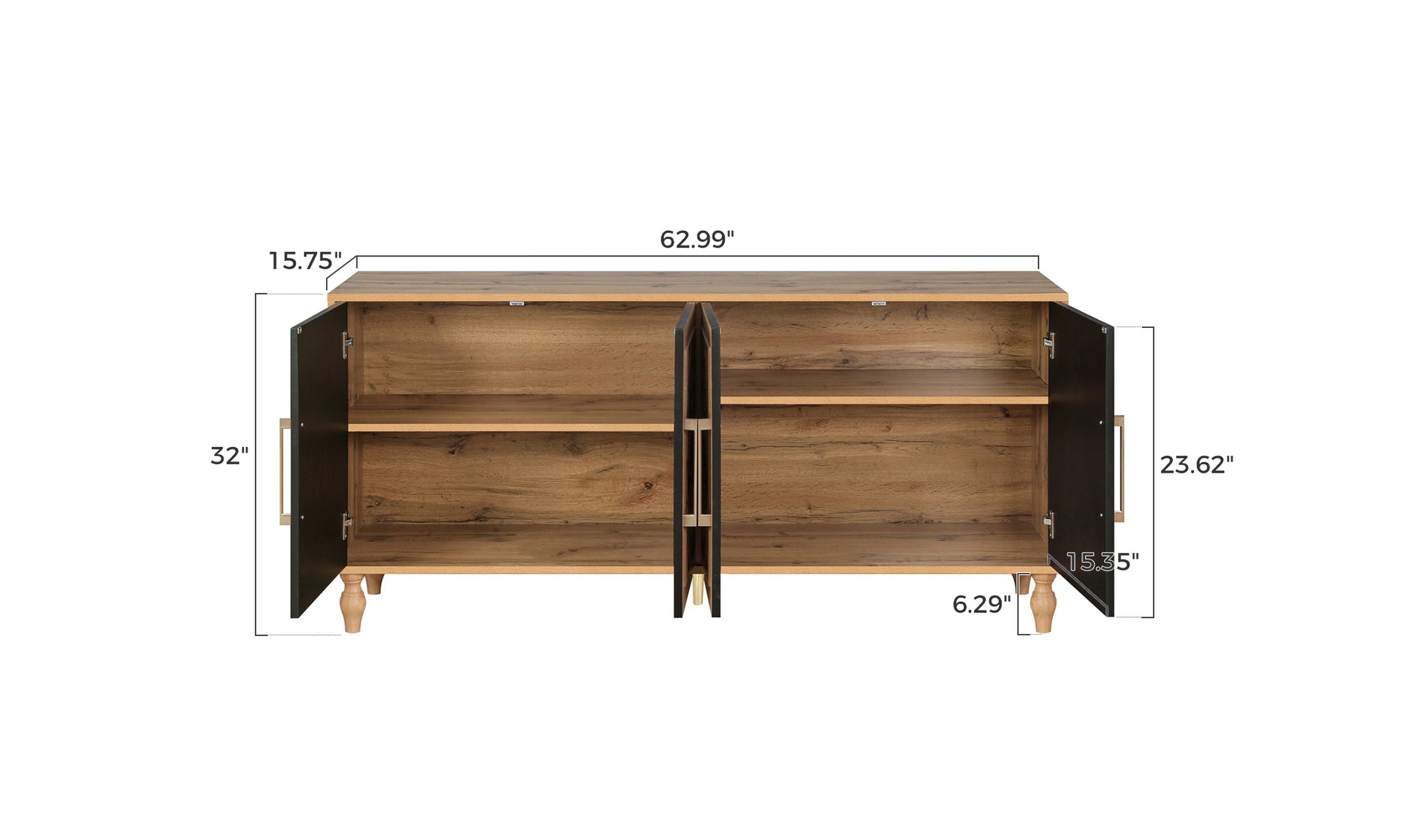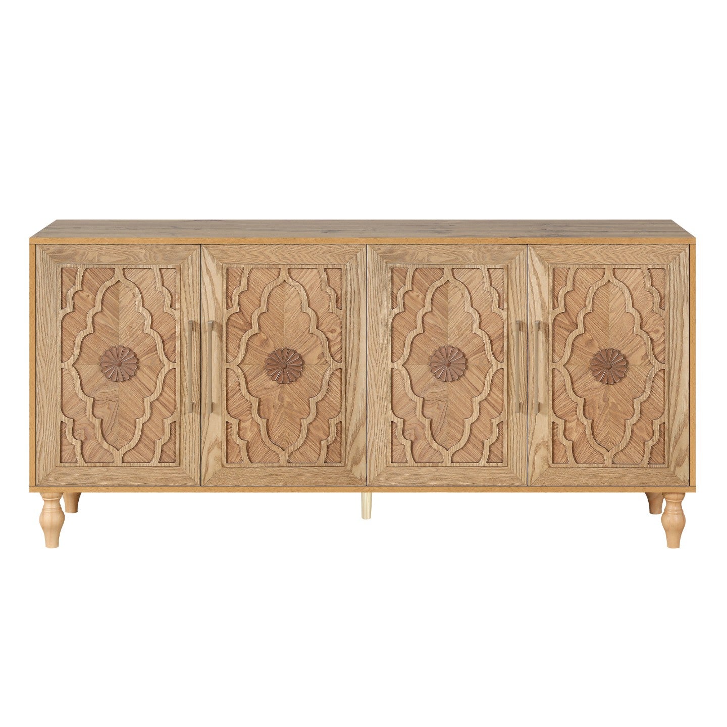 60'' Rustic Carved Door Sideboard Buffet Cabinet with Metal Handles and Ample Storage