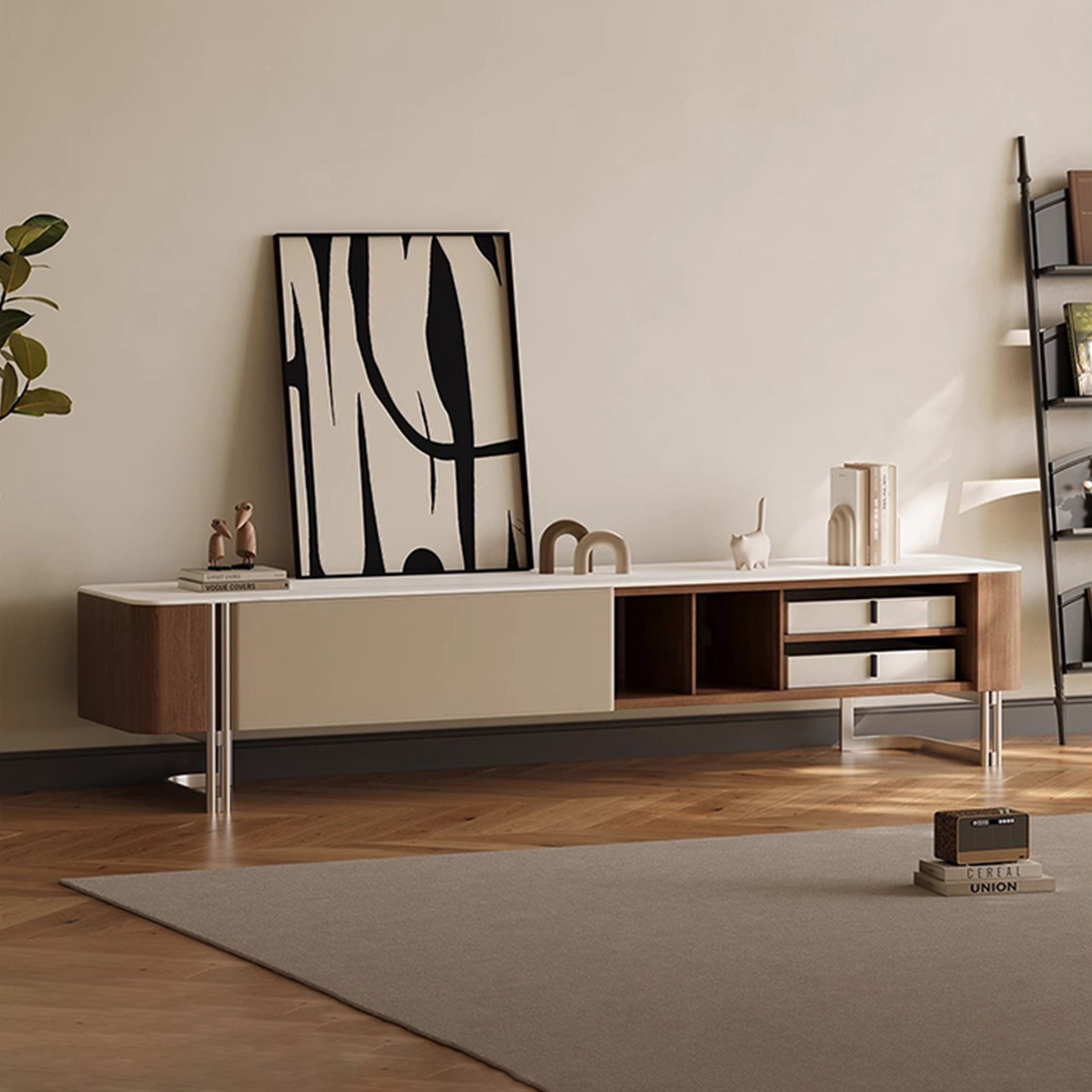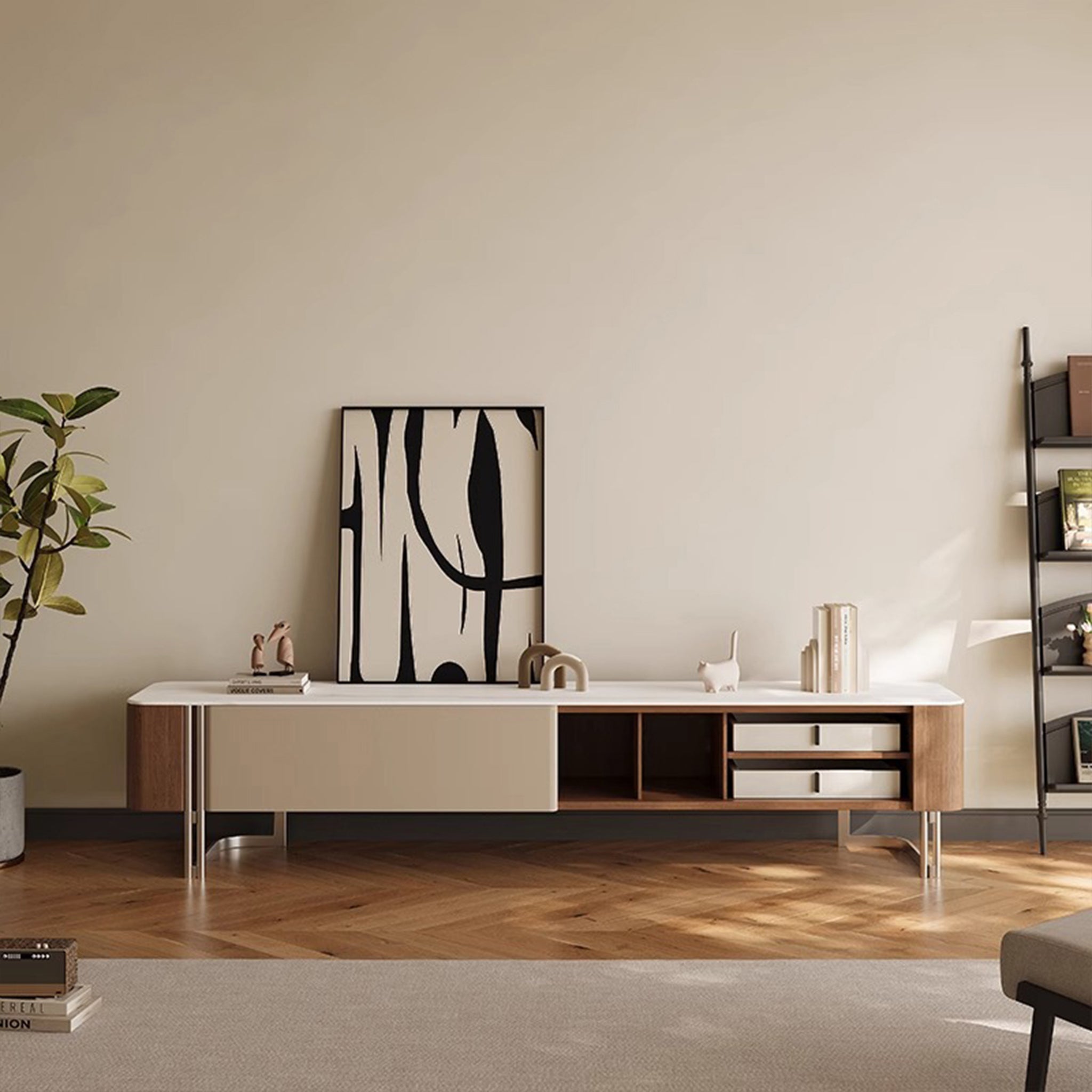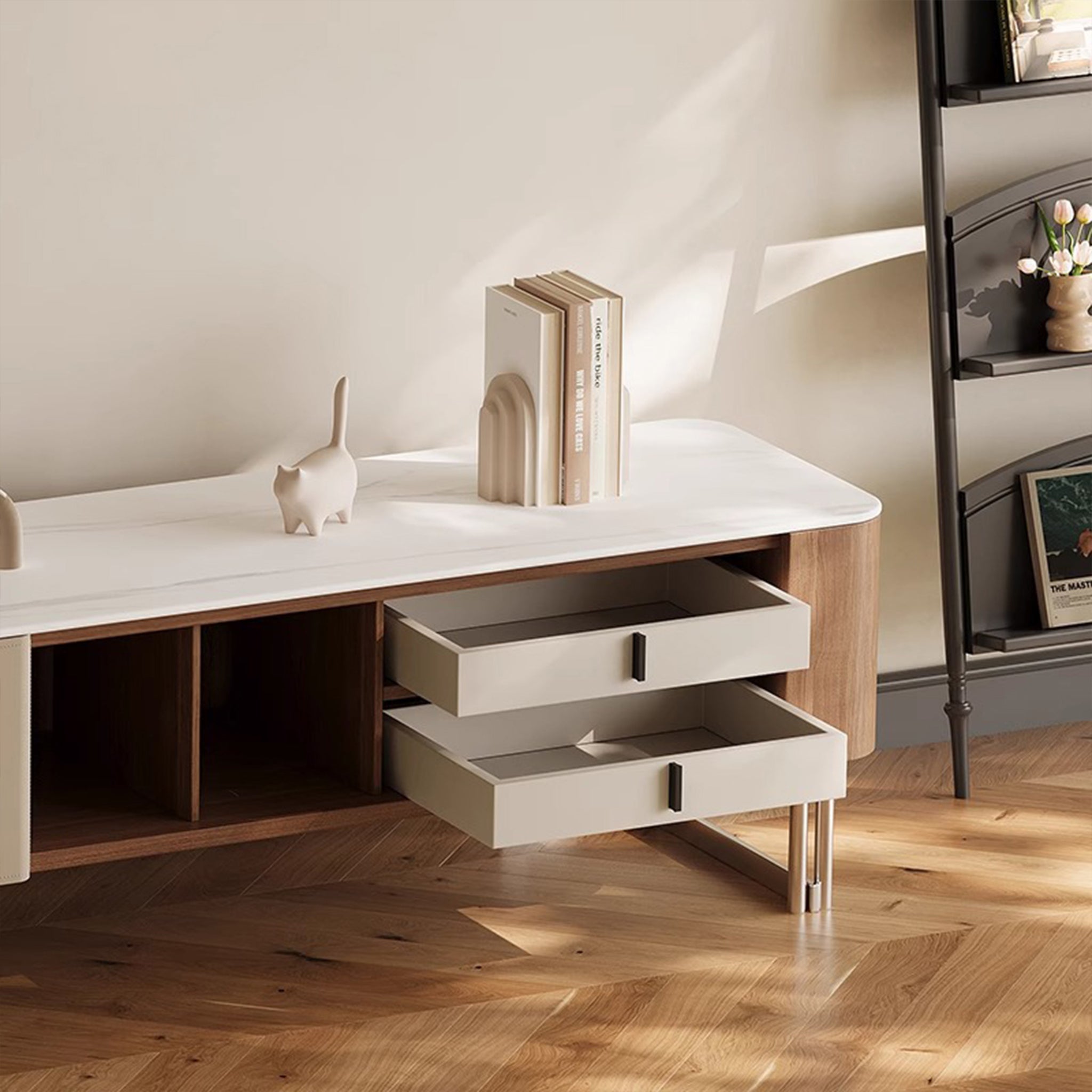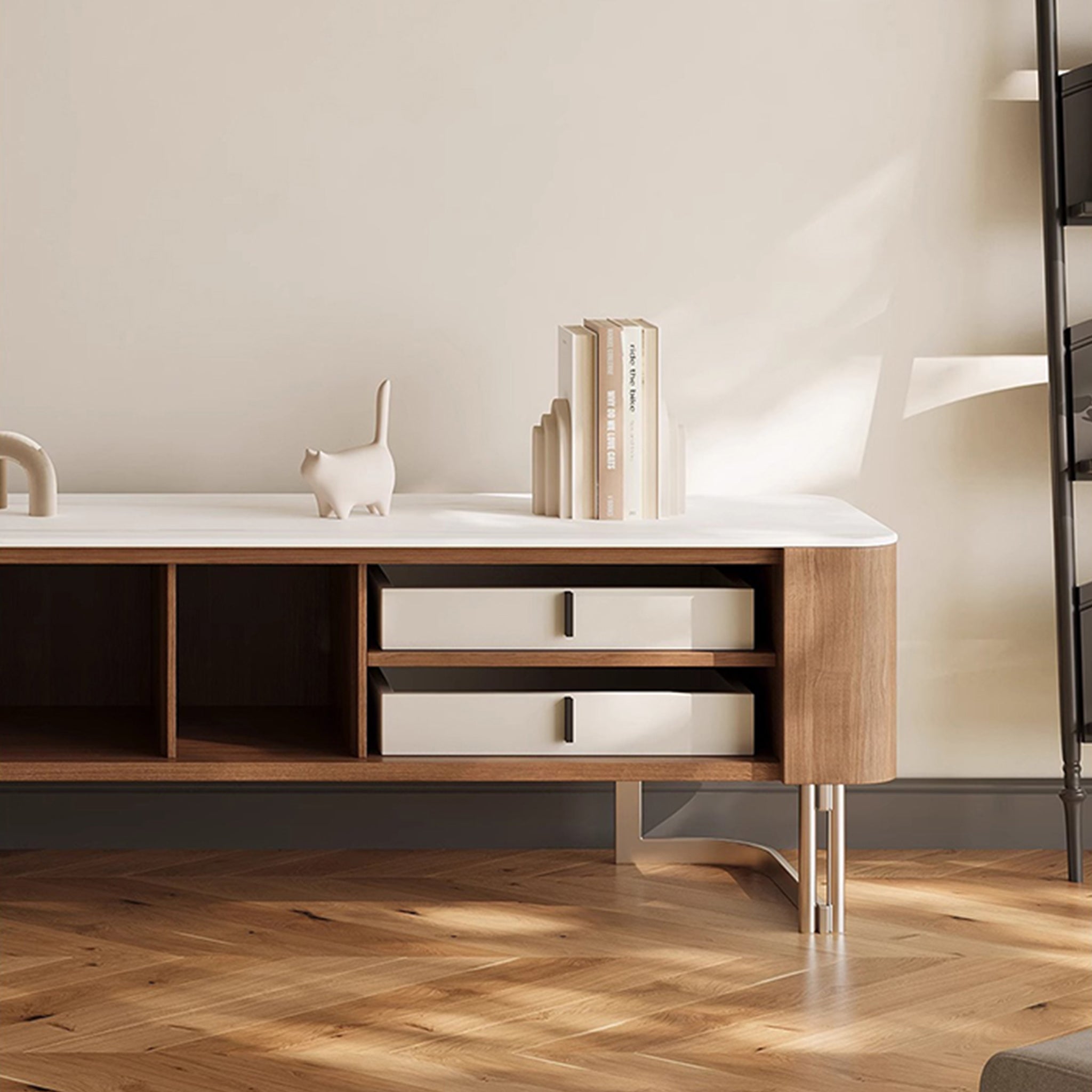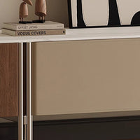 Crafted with durable multi-layer solid wood paired with wood veneer, supported by a strong metal leg frame, and finished with a sintered-stone surface—delivering both elevated style and long-lasting performance.