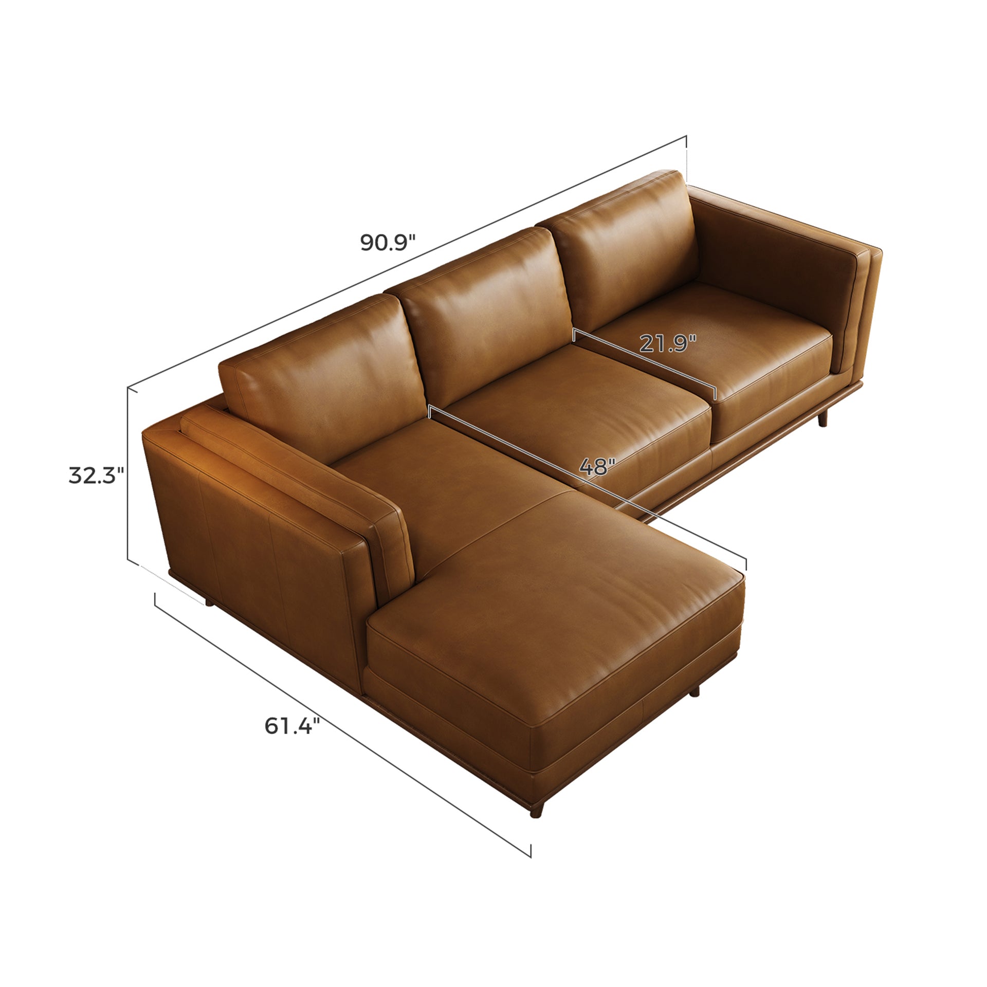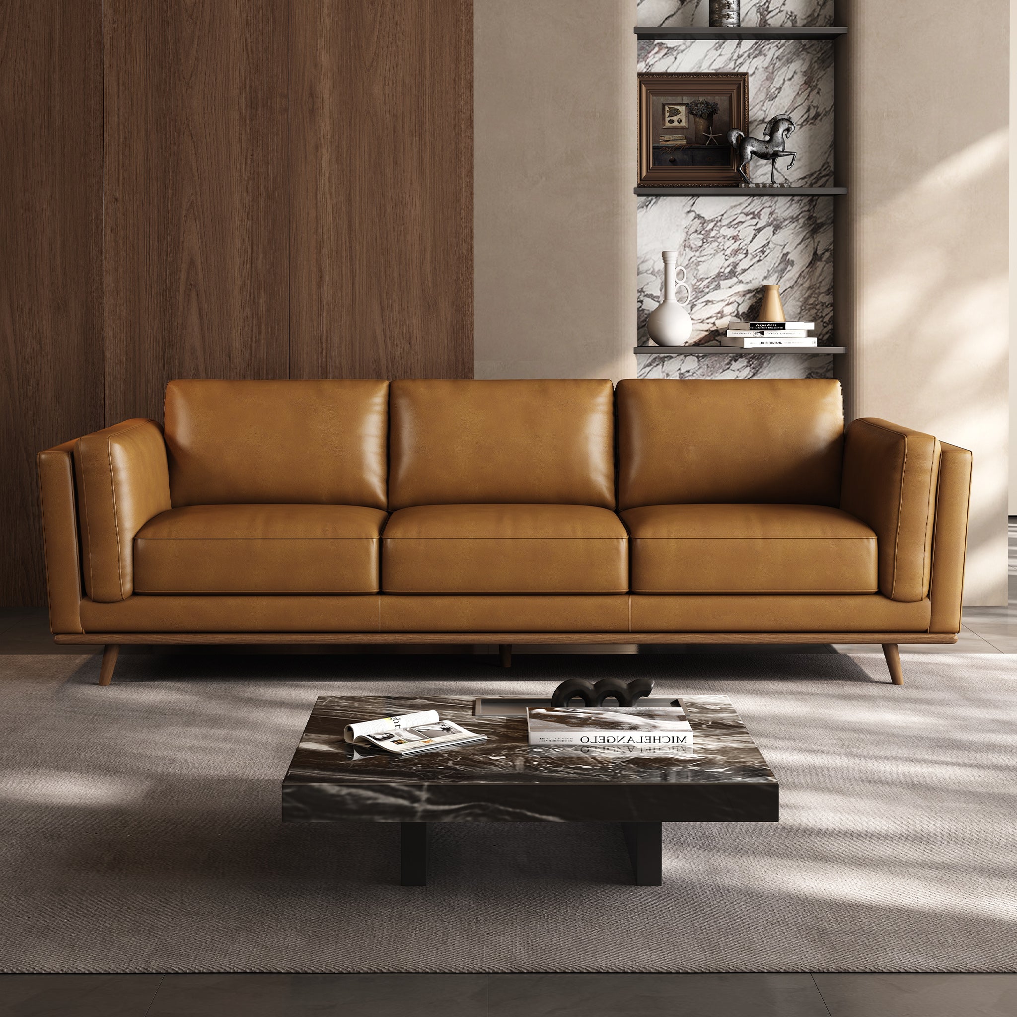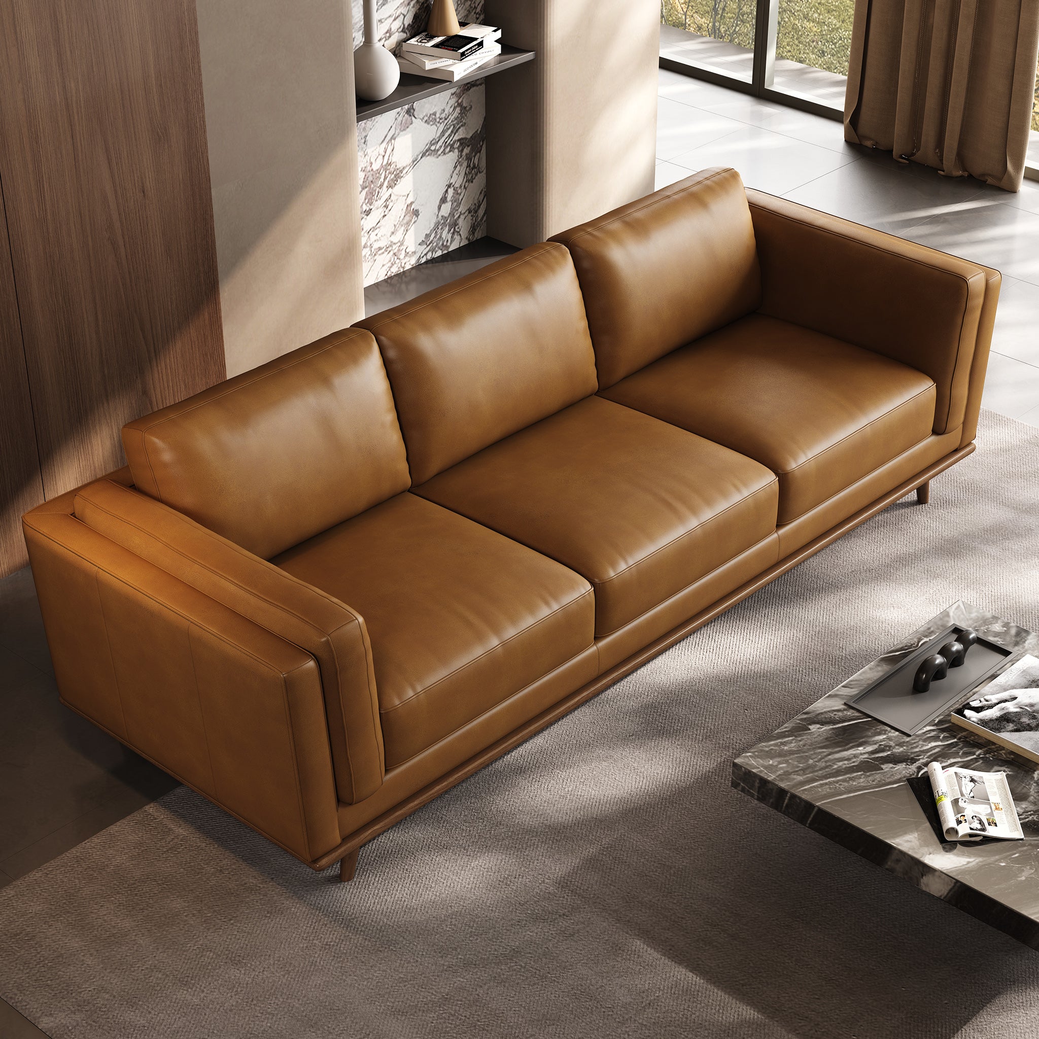 90.9'' Genuine Leather Sofa with Solid Wood Bottom Frame