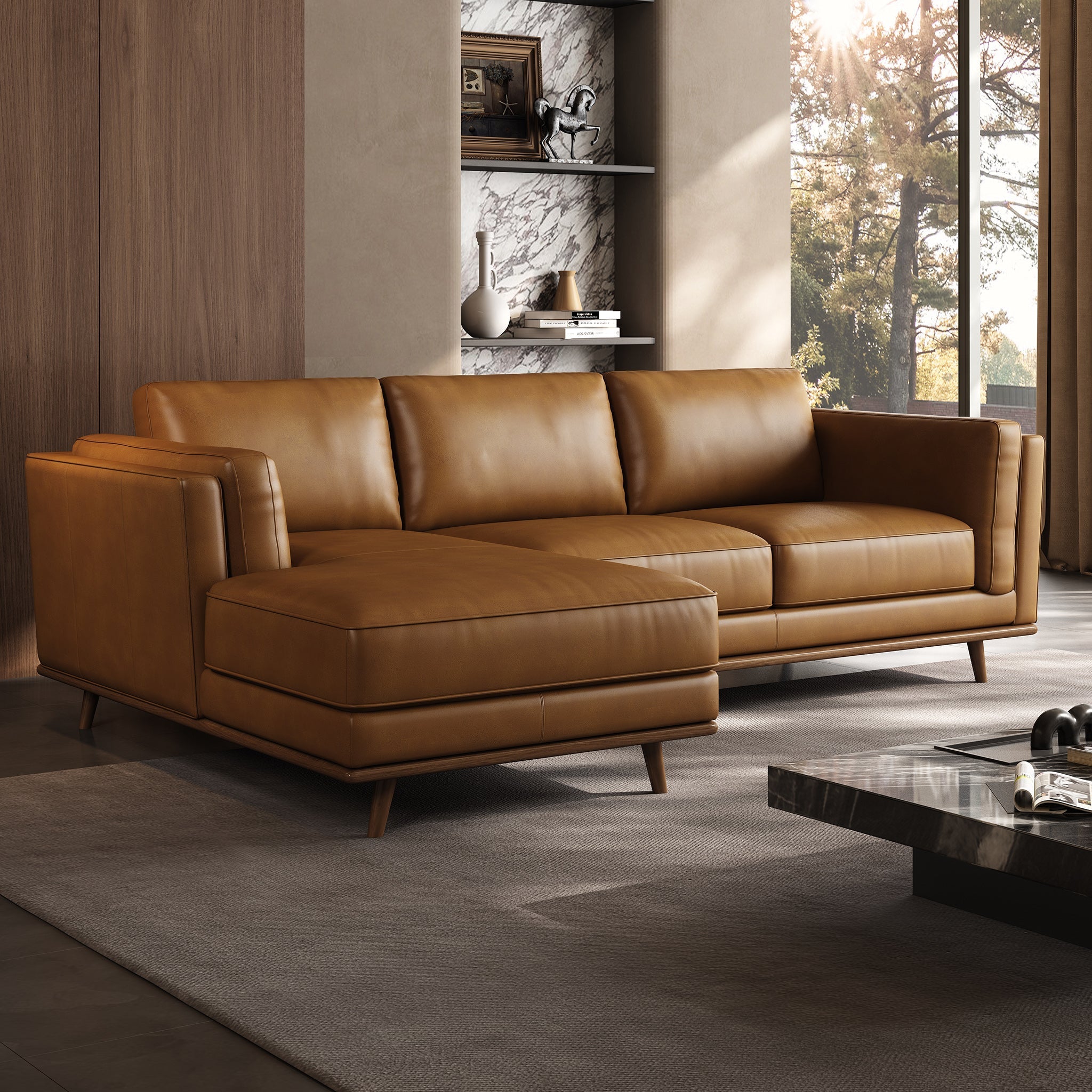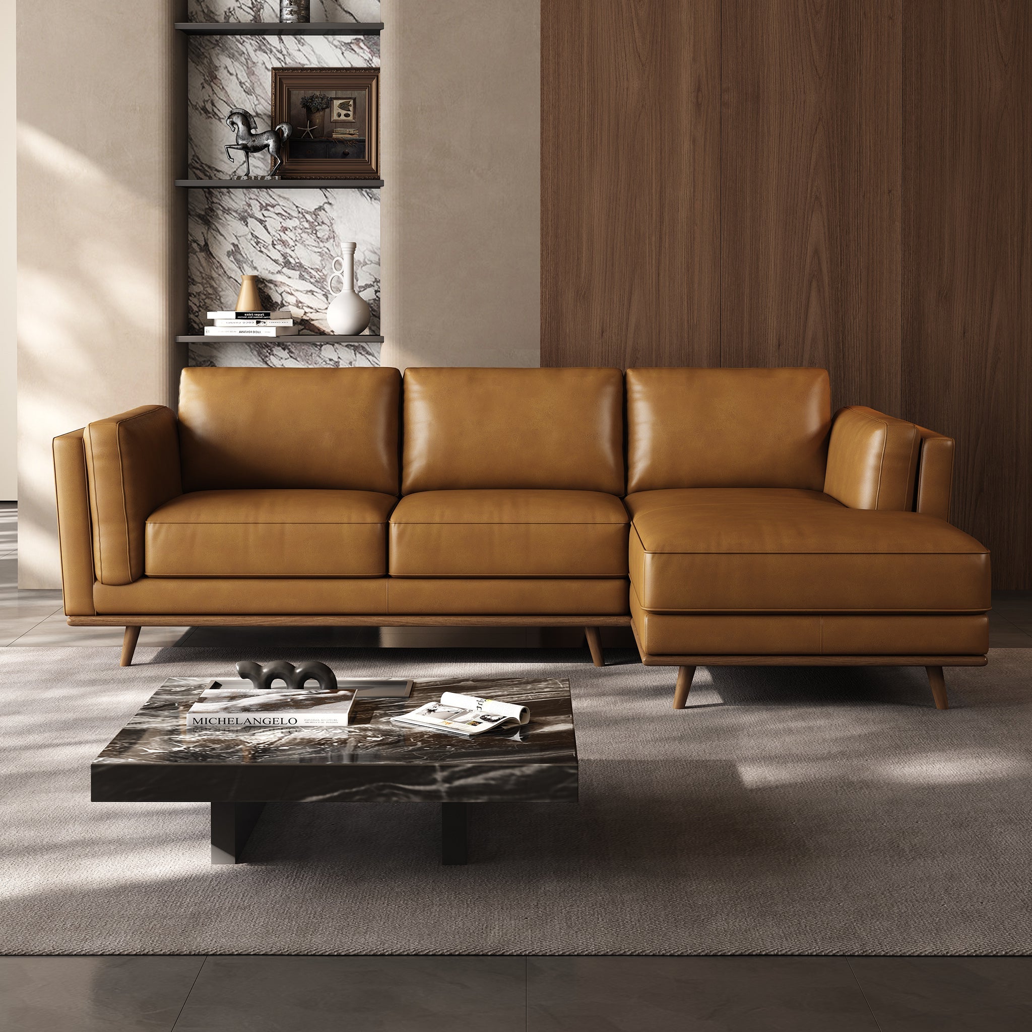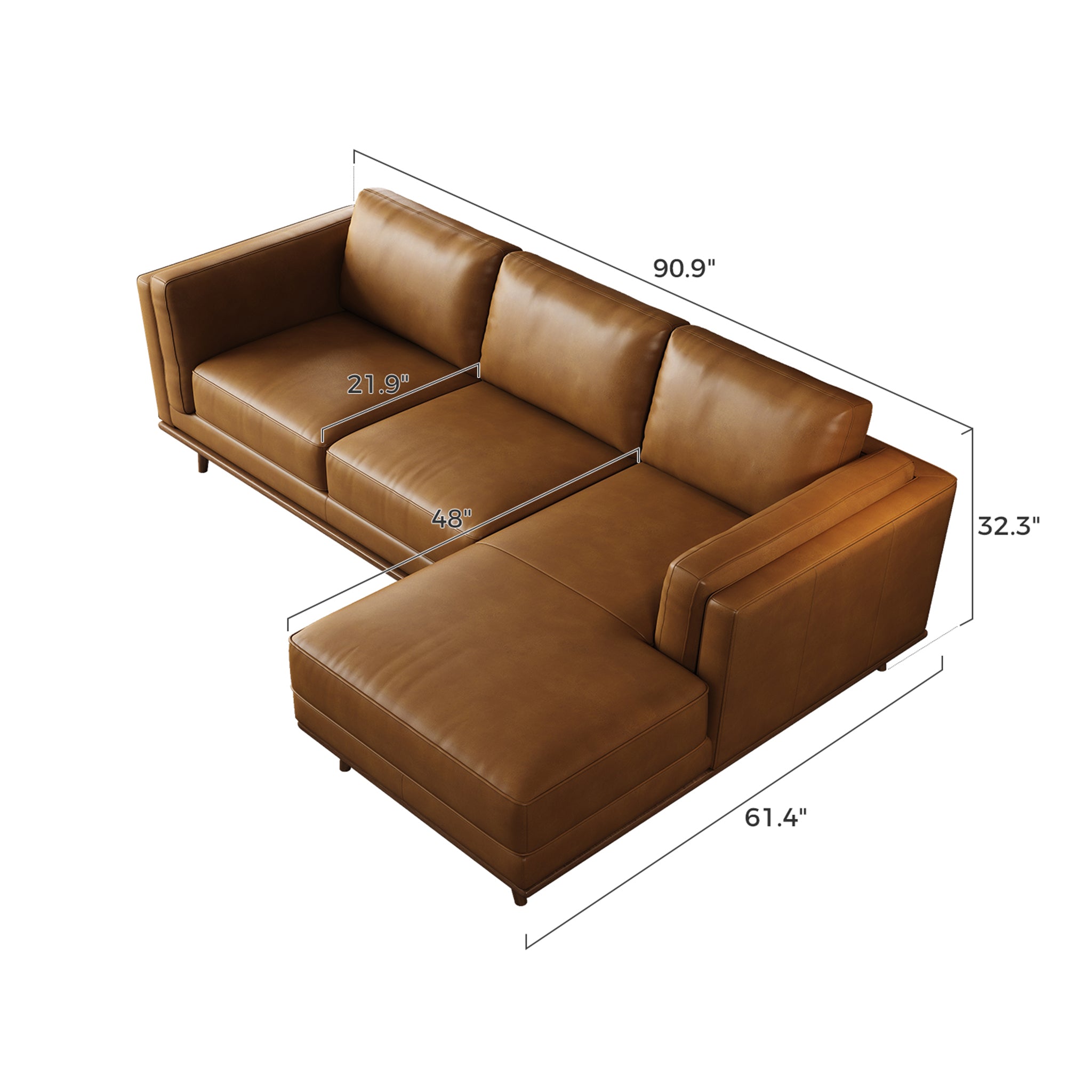 90.9'' Genuine Leather Sofa with Solid Wood Bottom Frame