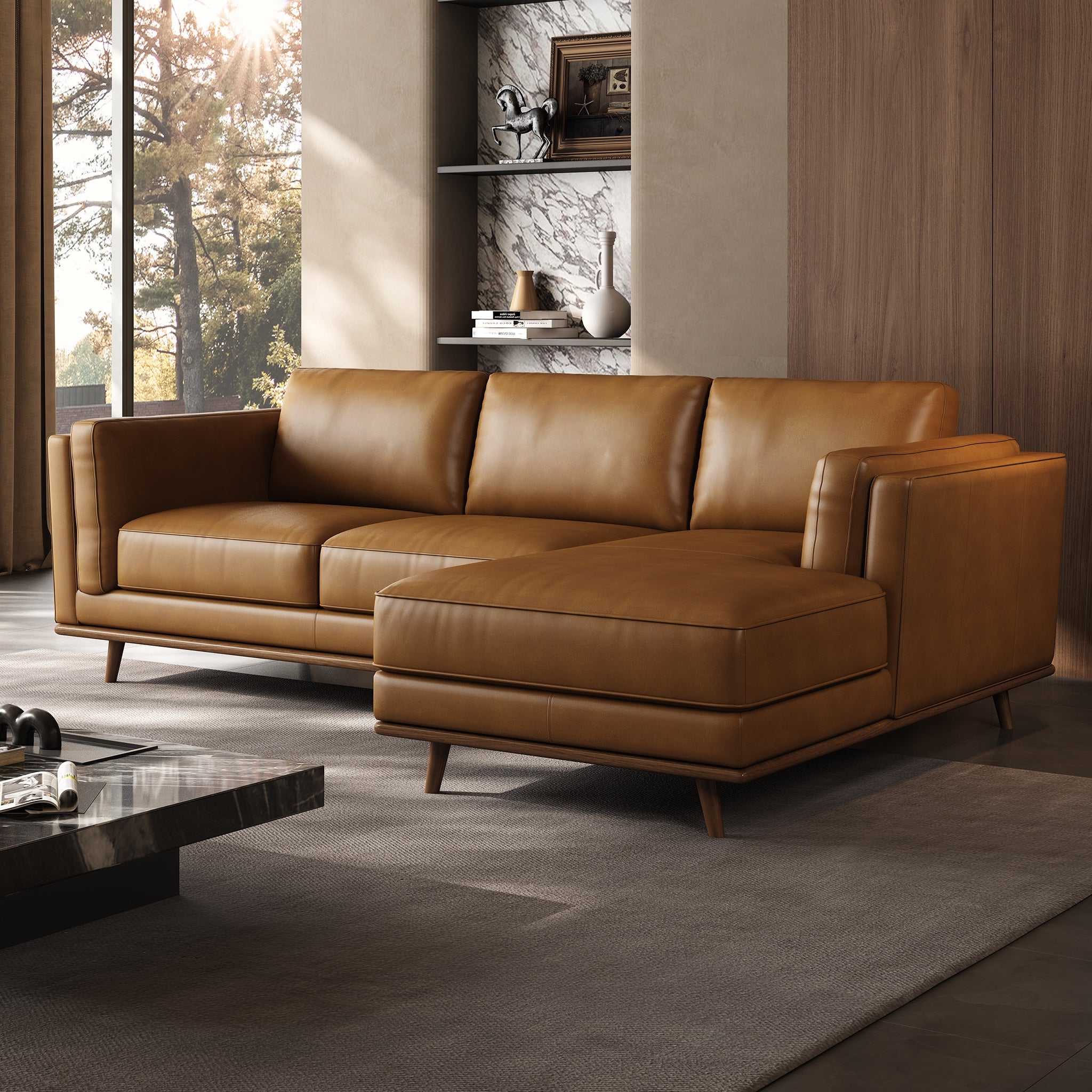 Upholstered in luxurious genuine leather, treated with organic protection to resist cracks and aging.