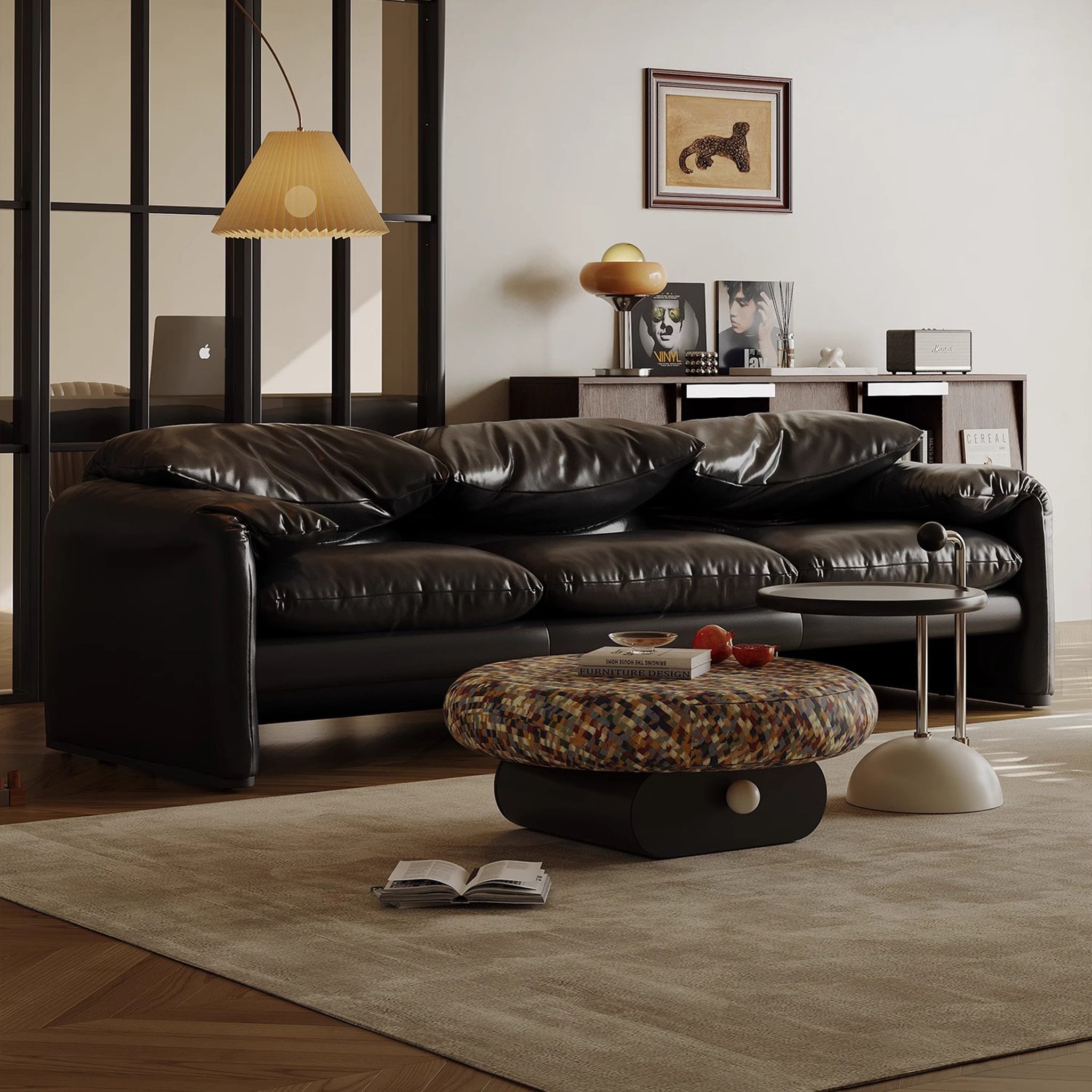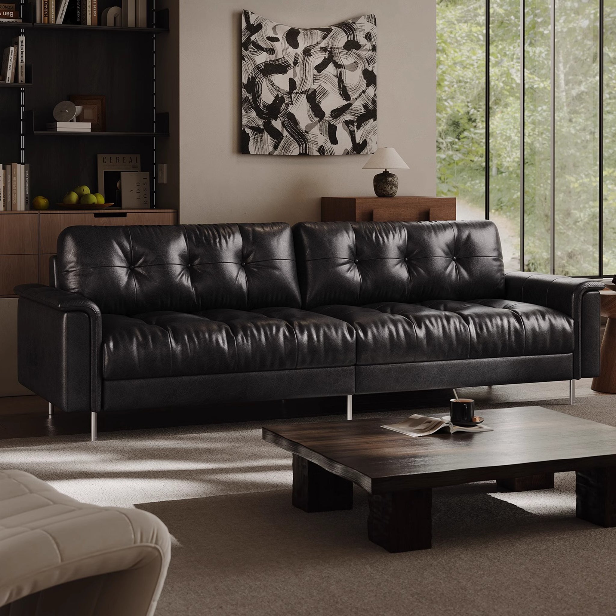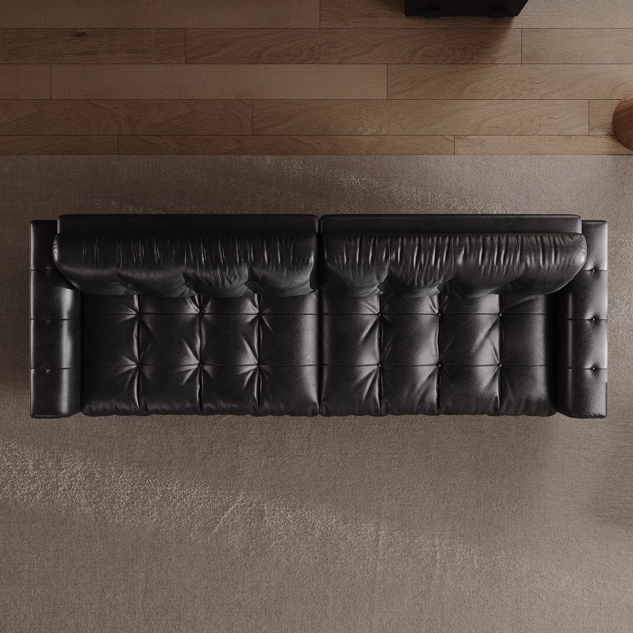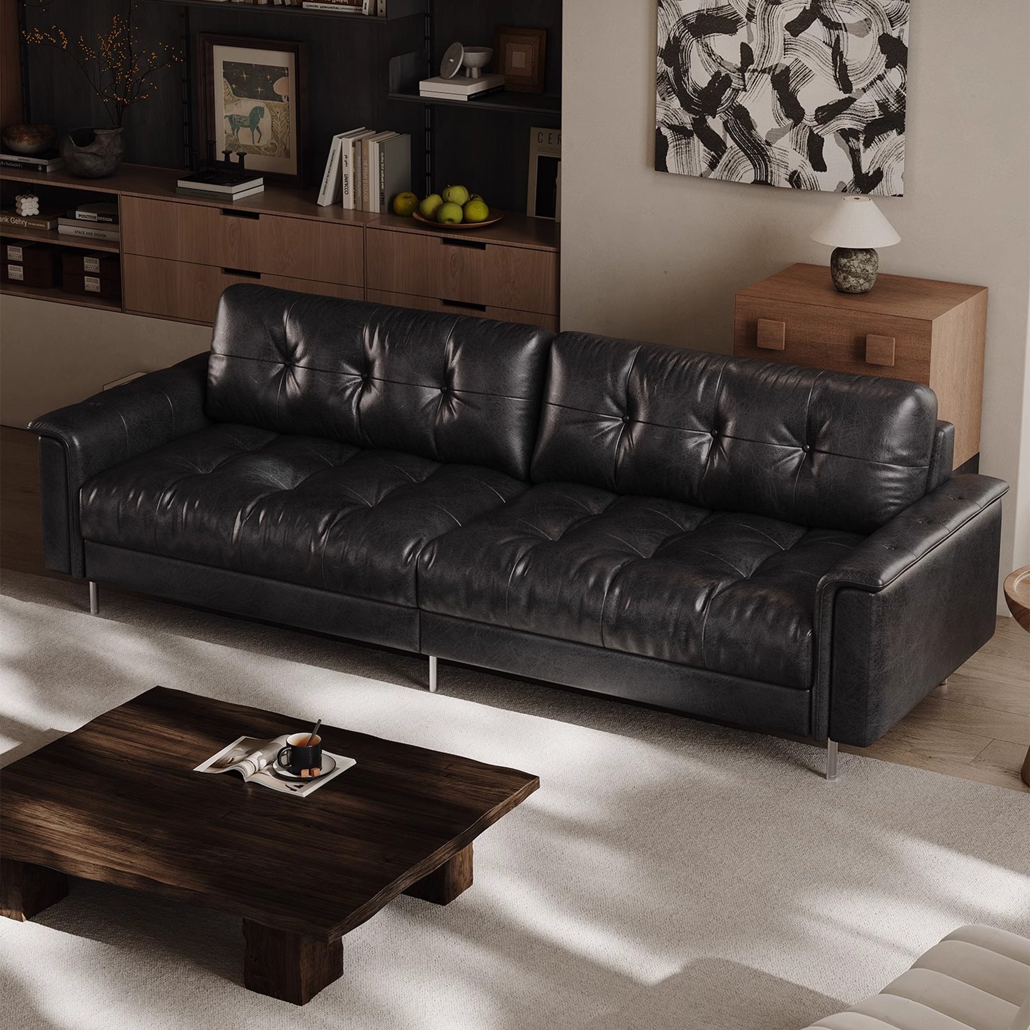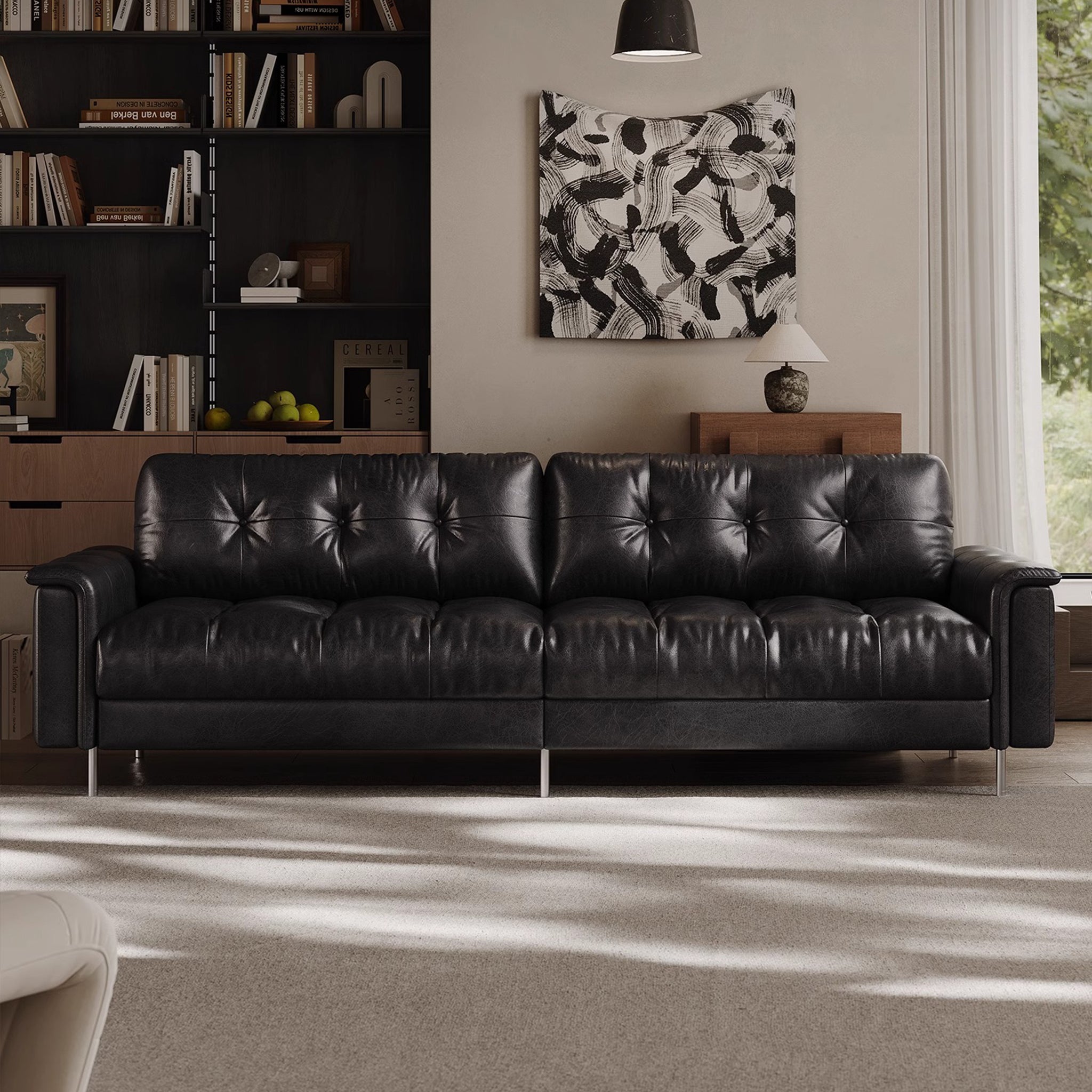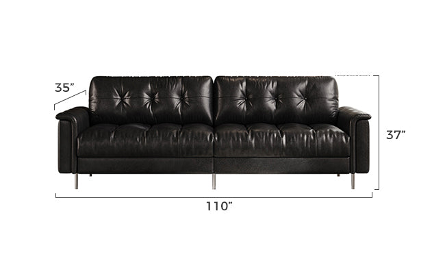 Black Retro Leather Tufted Sofa