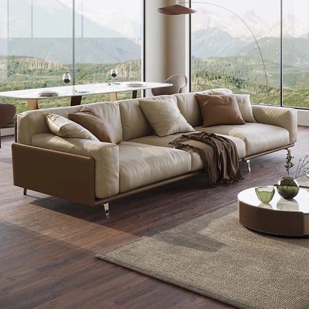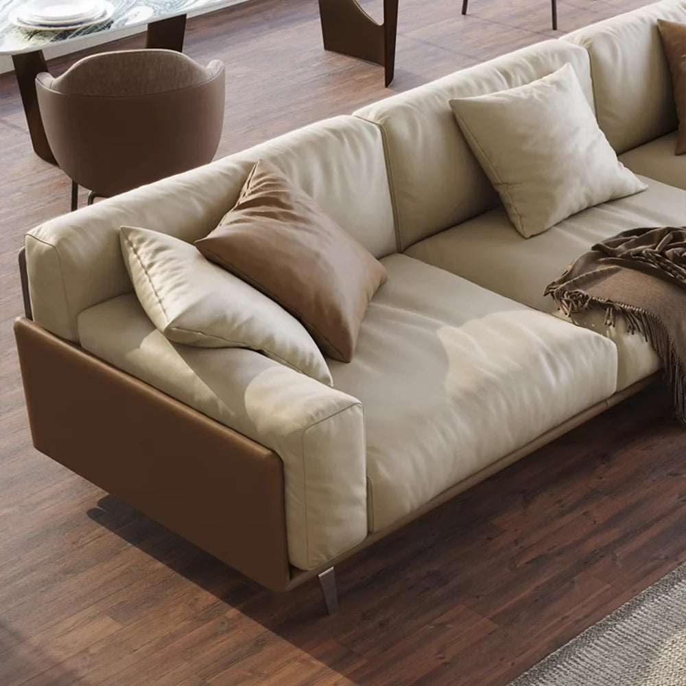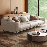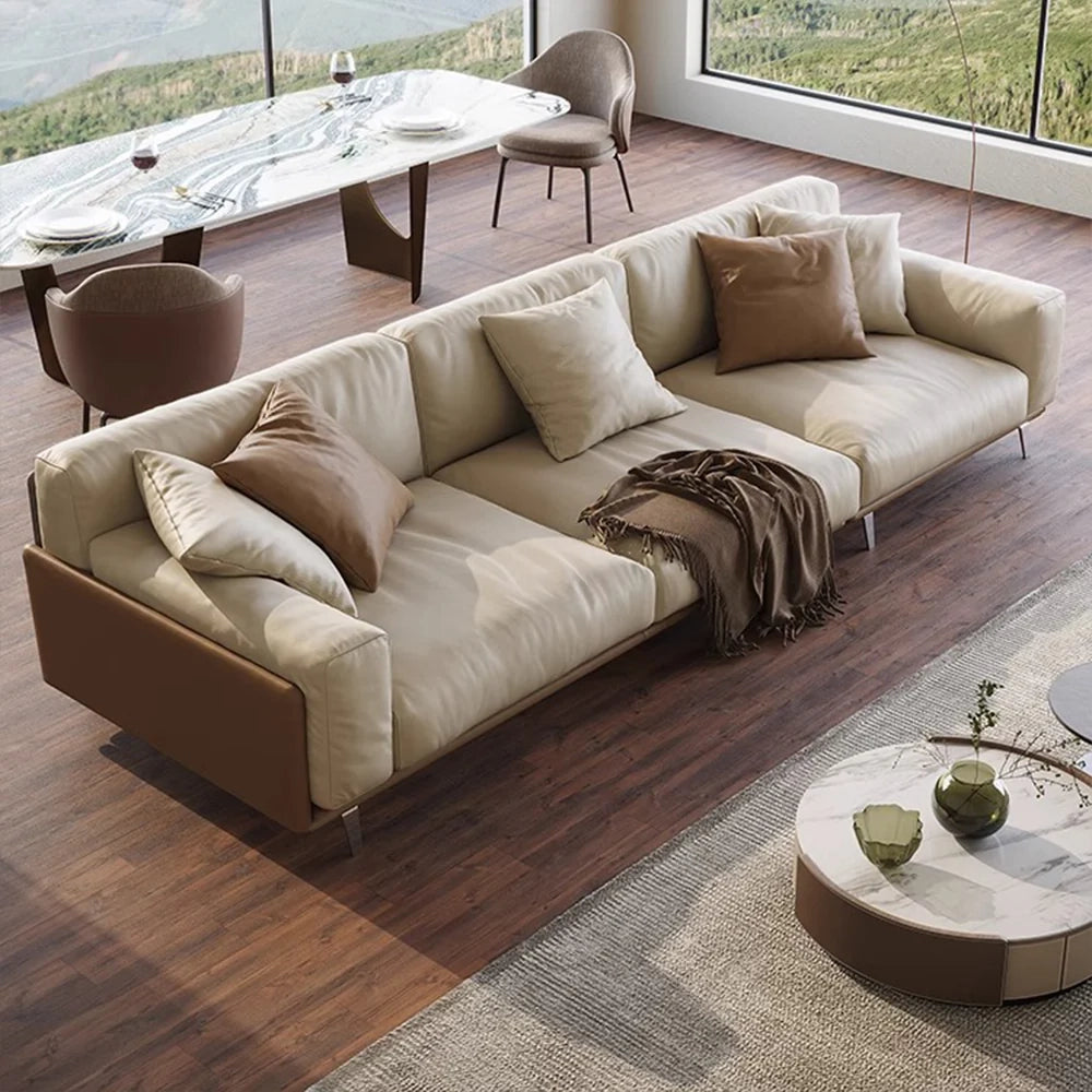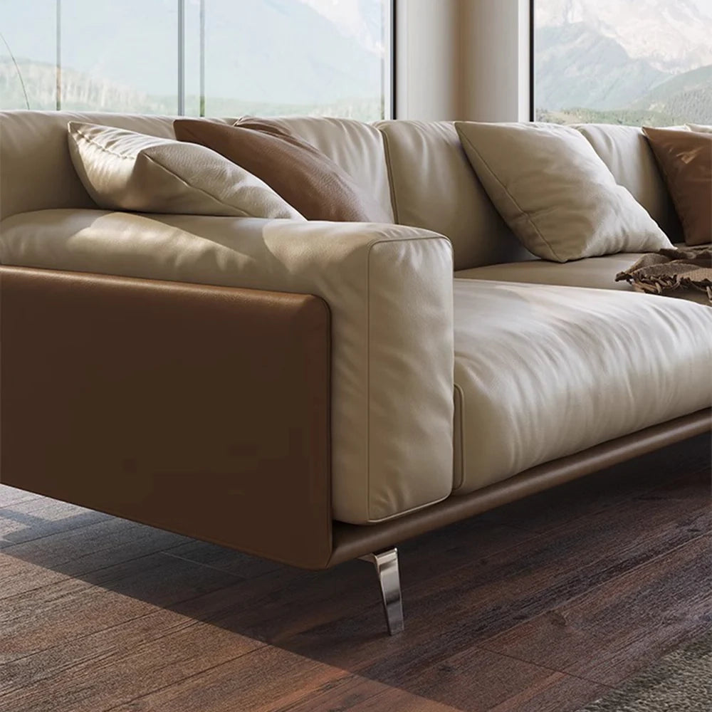The cushion parts feature premium genuine leather, while the frame is crafted with vegan leather, both of them offering a smooth texture and long-lasting durability.