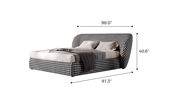 • Modern Cotton-Linen Upholstered Bed Frame with Curved HeadboardHoundstooth / Queen