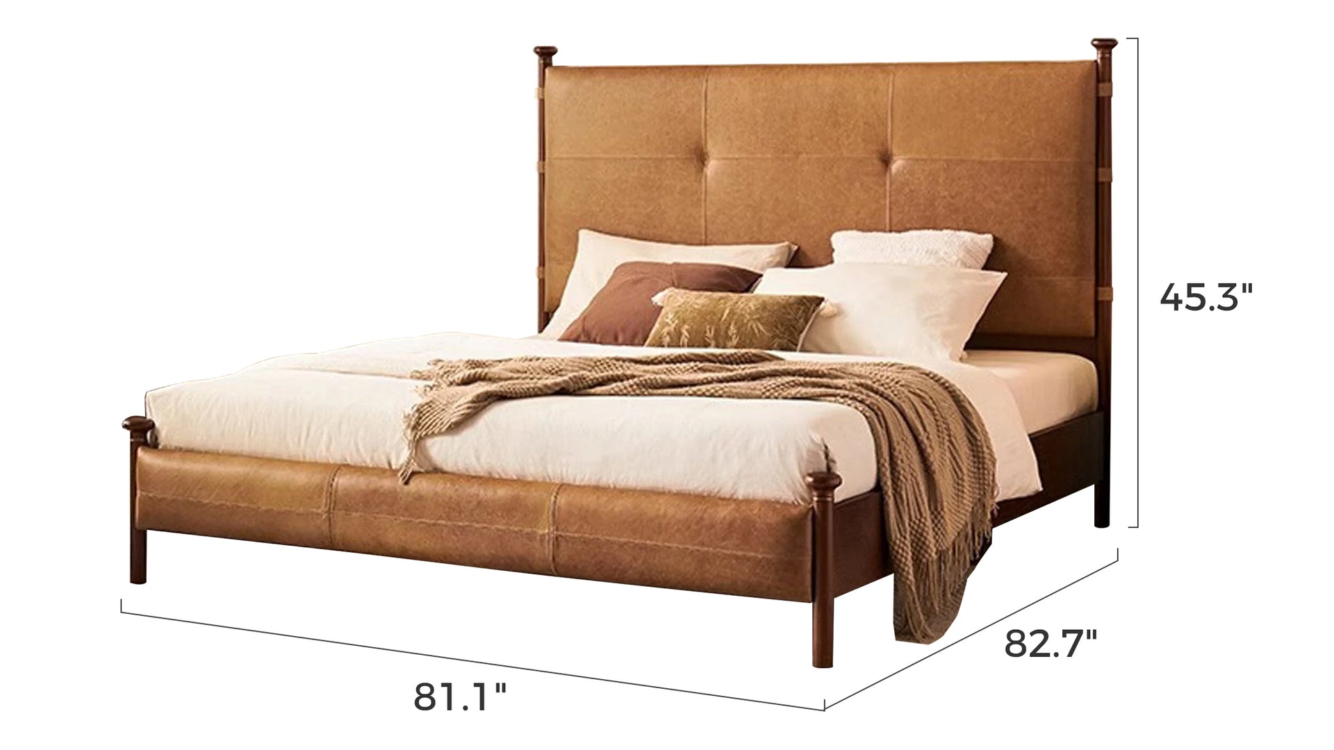 Mid-Century Modern Leather Upholstered Bed Frame with Headboard