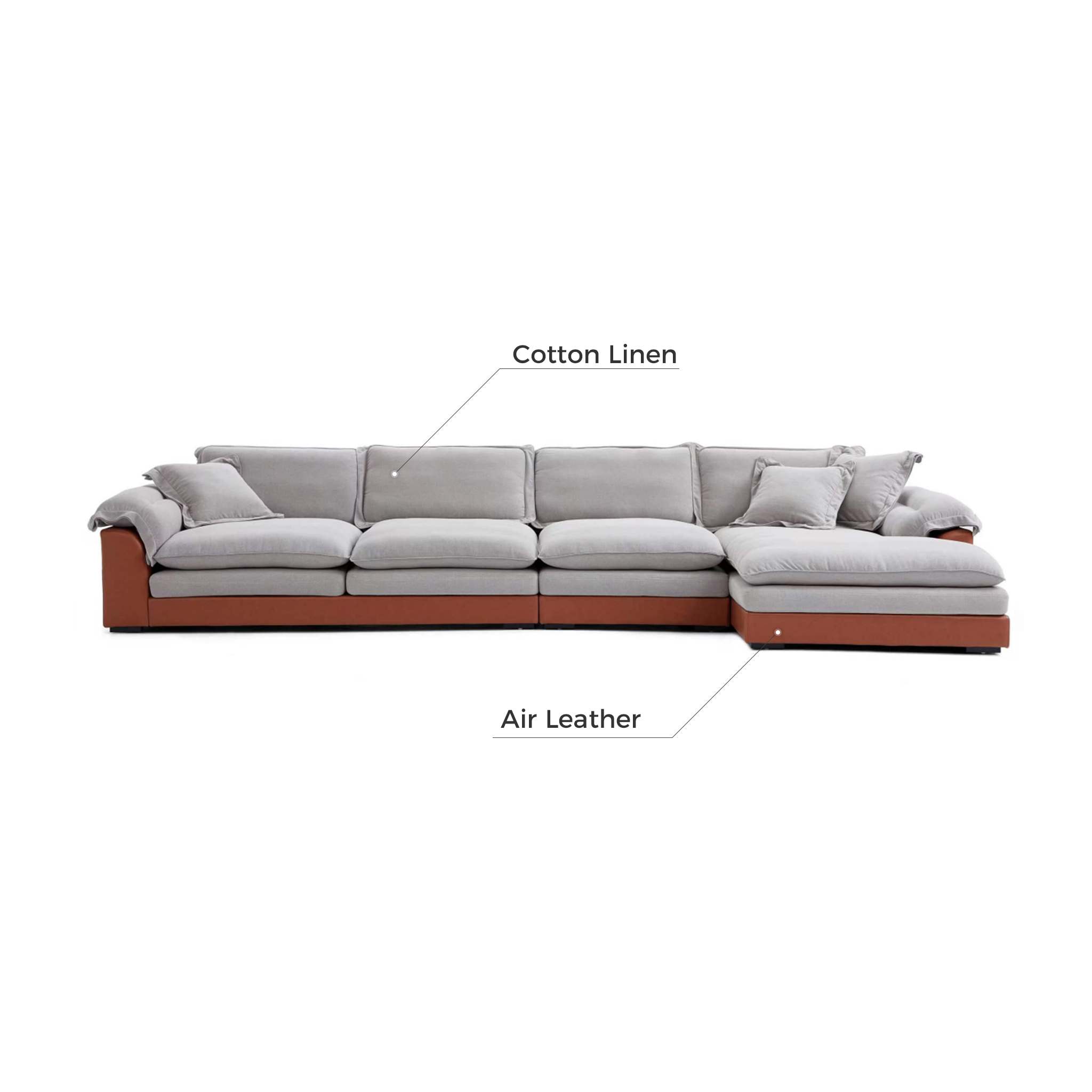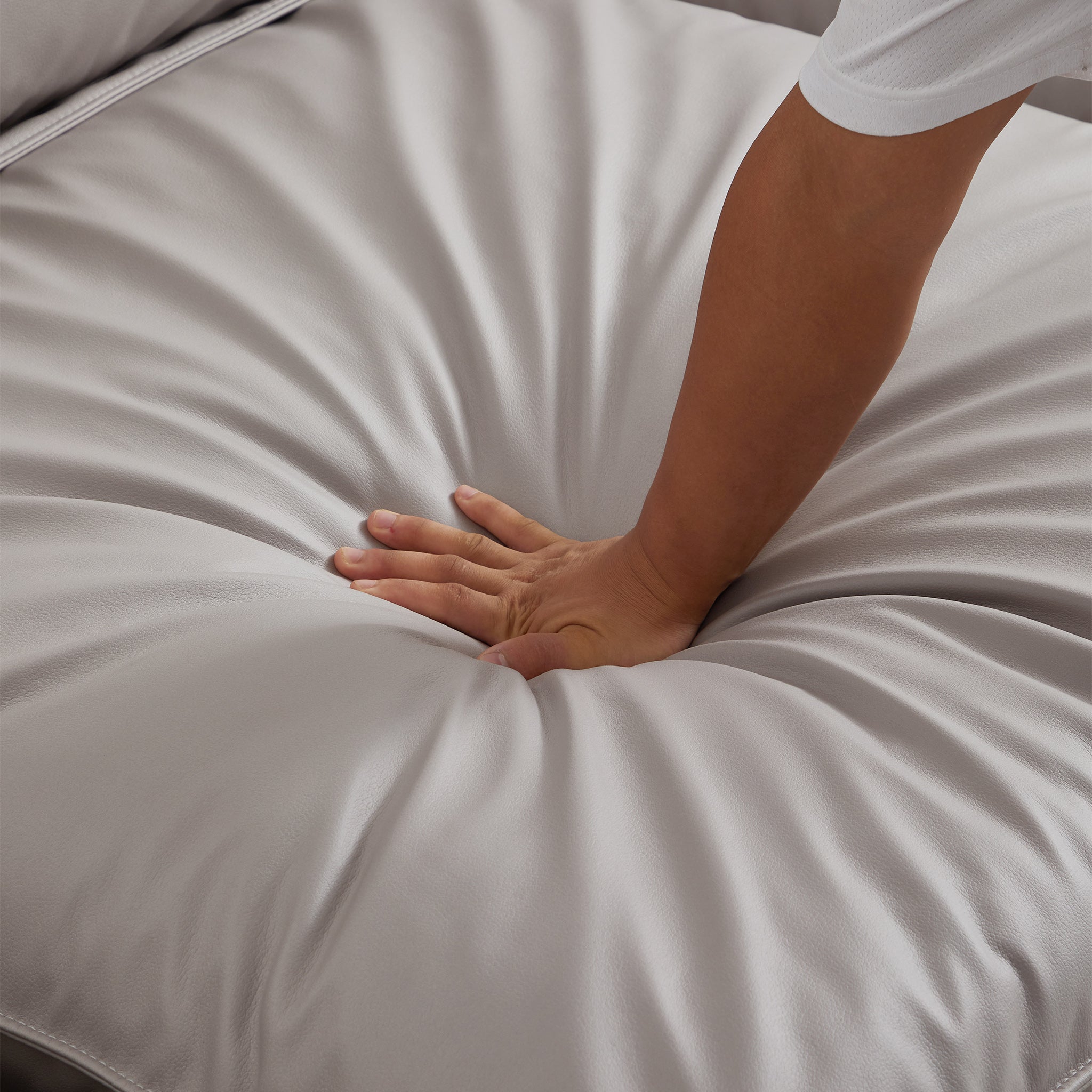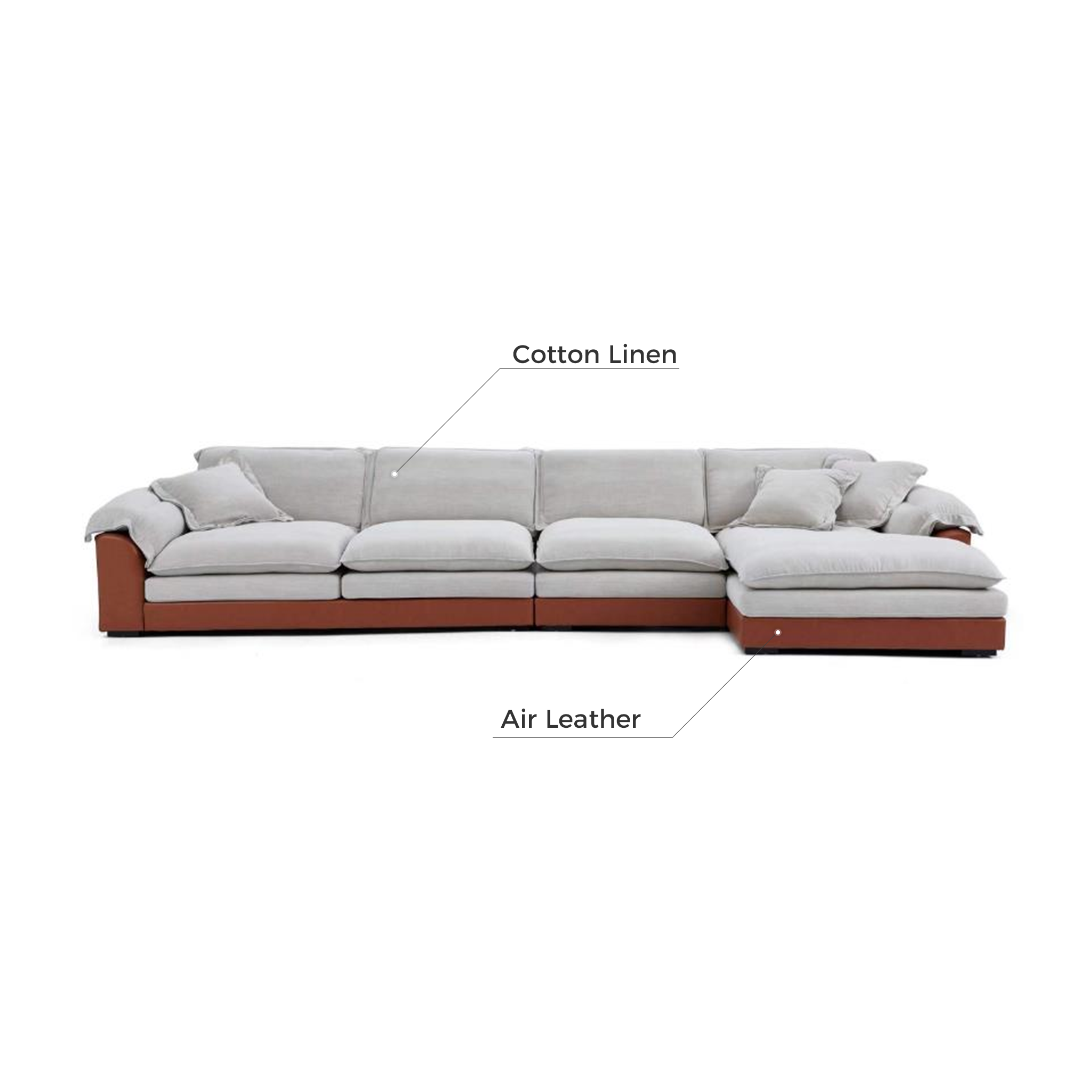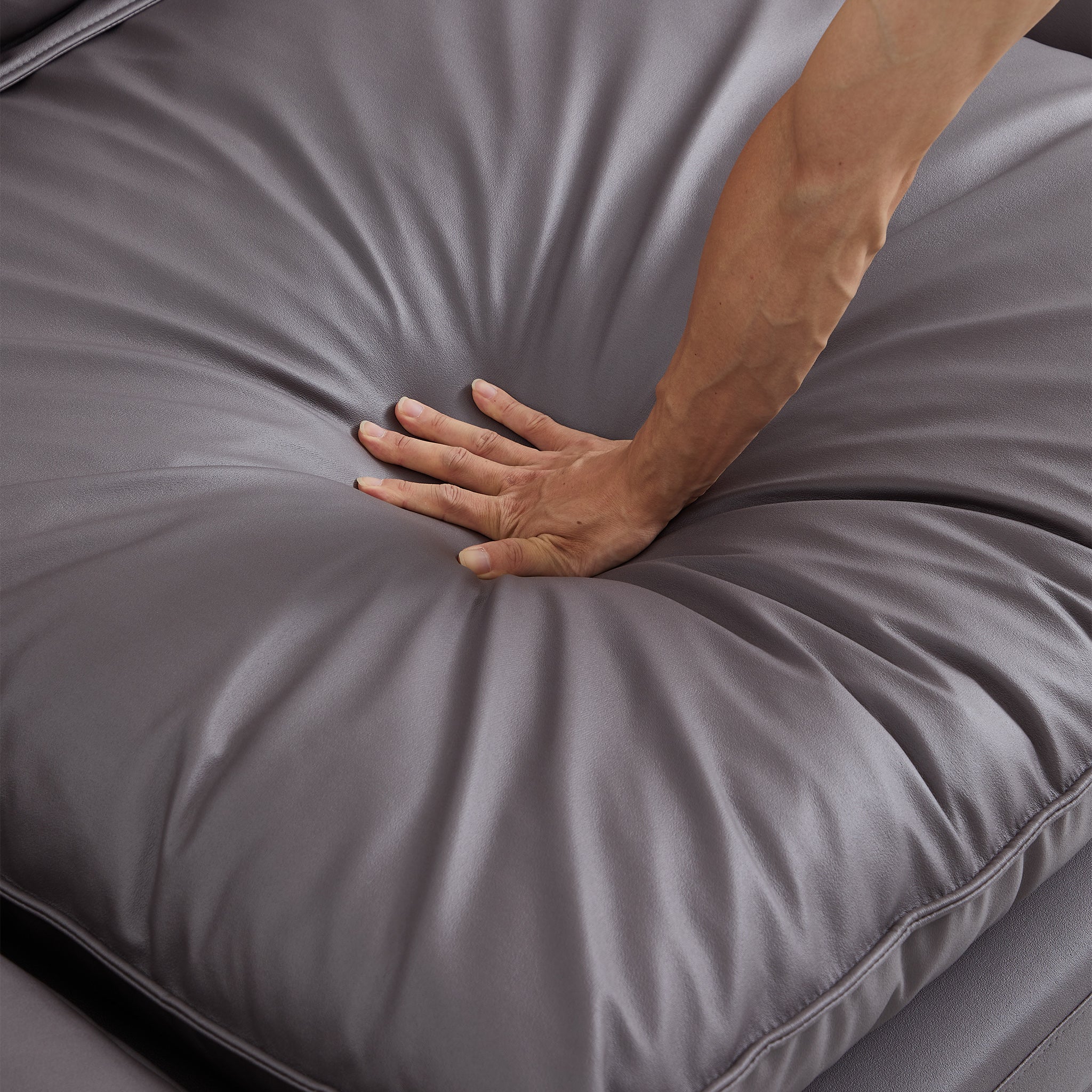 The reason is simple! Just like buying a sandwich, you can decide the order of ingredients and enjoy the rich taste in one bite. That’s why we ask you to consider this excellent reclining sofa that allows customized comfort through its changeable cushion configurations - it is a Four-in-One sofa. Each seat consists of 2 cushions: a soft feather cushion and a bouncy foam cushion. By combining the cushions as you wish, you can get four sofa for the price of one. It is not only suitable for various spaces, but also brings your family four types of enjoyment.