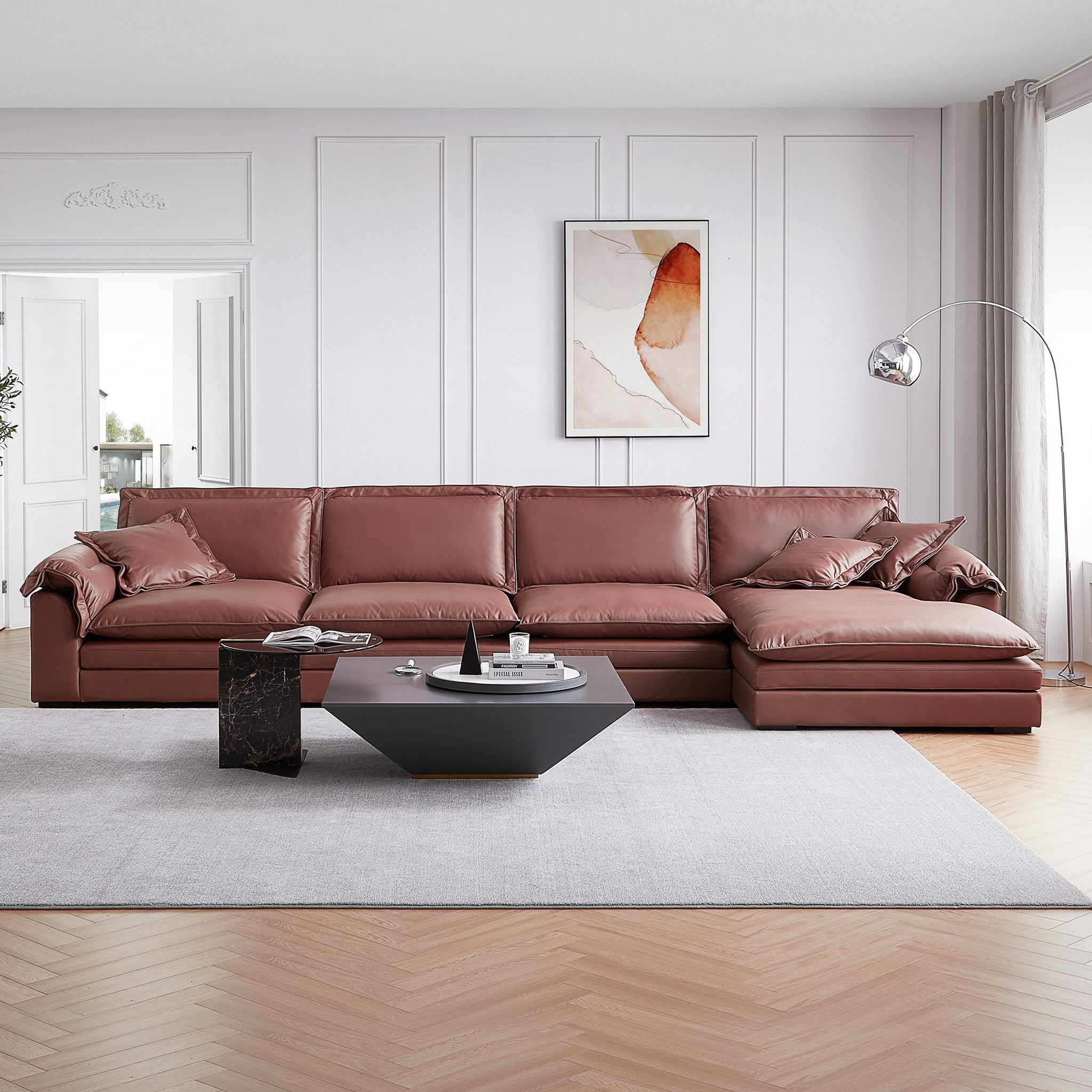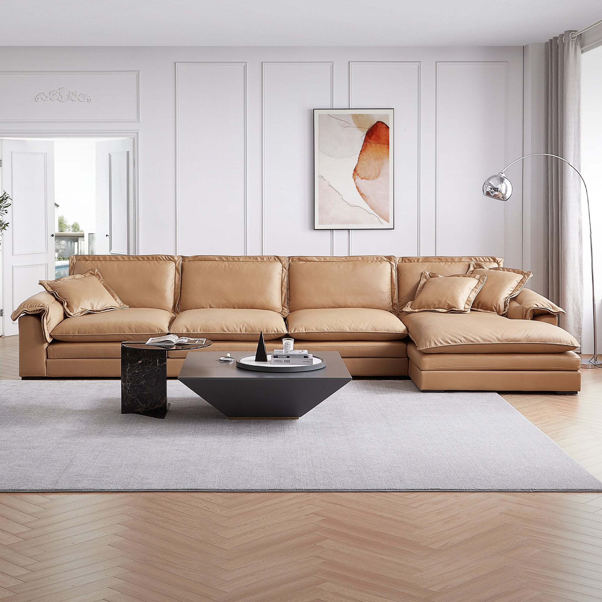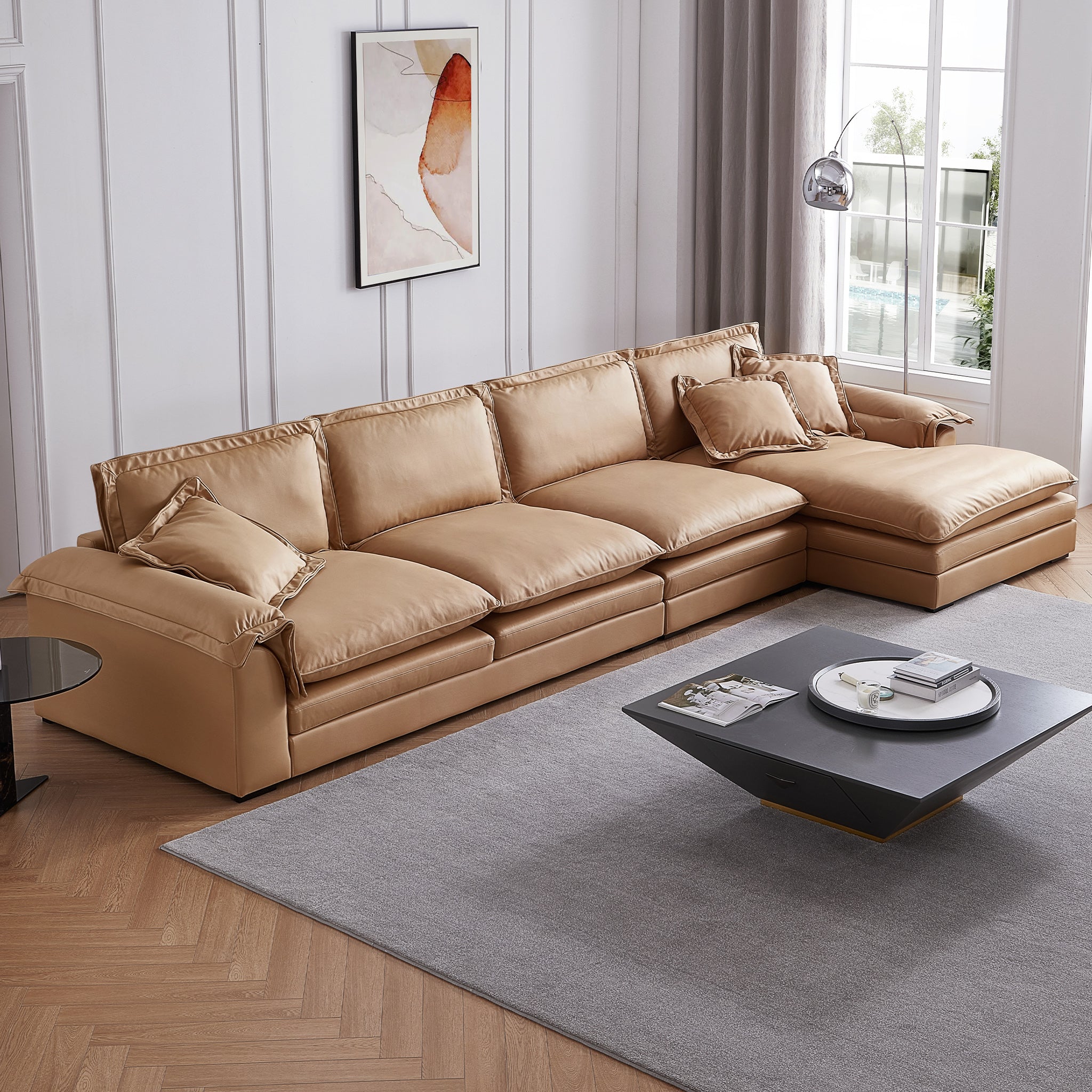 If the feather sofa becomes saggy, it can be restored to its original shape by patting the pillow or pad.