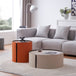 This 2-piece saddle leather coffee table embodies the essence of Nordic design, exuding a distinctly modern aesthetic. Its smooth curved contours and intricate stitching showcase meticulous craftsmanship. Featuring environmentally friendly materials, this round coffee table makes a versatile and timeless addition to any living room.