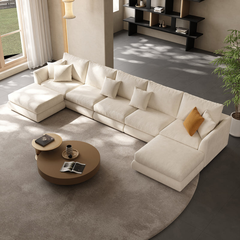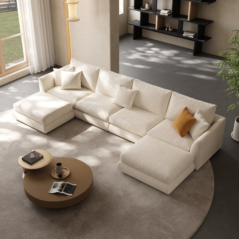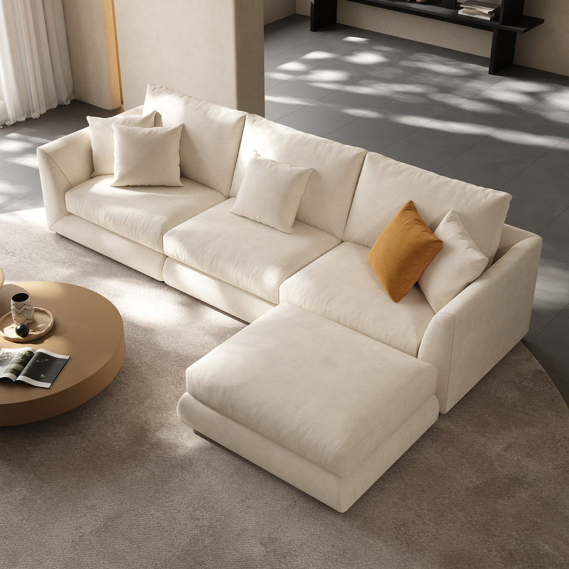 Our Modular Feathers Sofa is thoughtfully designed with plush feather-filled cushions, durable larch wood framing,