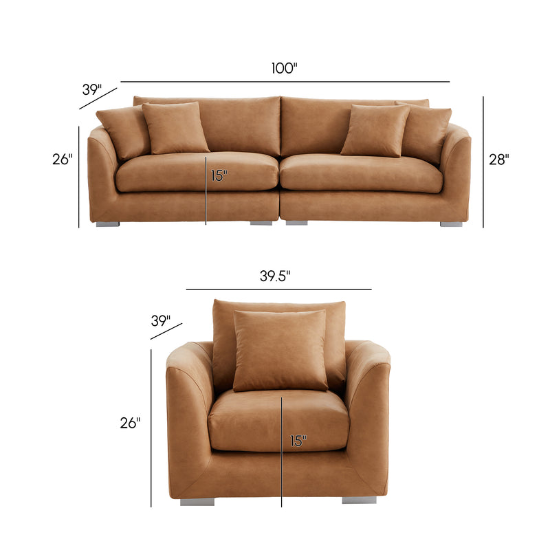 - Aalto Boutique Beige Feathers LoveseatOrange / 3 Seater + Armchair