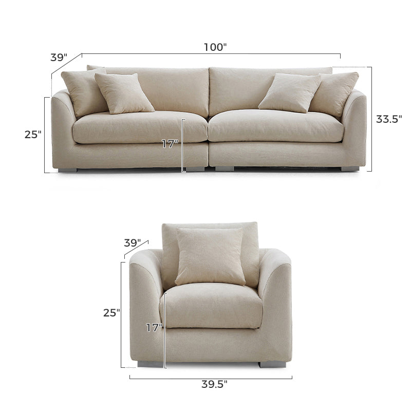 - Aalto Boutique Beige Feathers SectionalBeige / Facing Left / 100 inch + Armchair