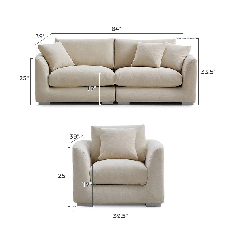 - Aalto Boutique Beige Feathers SectionalBeige / Facing Left / 84 inch + Armchair