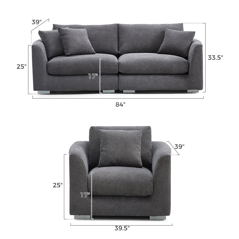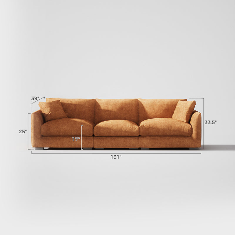 Our Modular Feathers Sofa is thoughtfully designed with plush feather-filled cushions, durable larch wood framing,