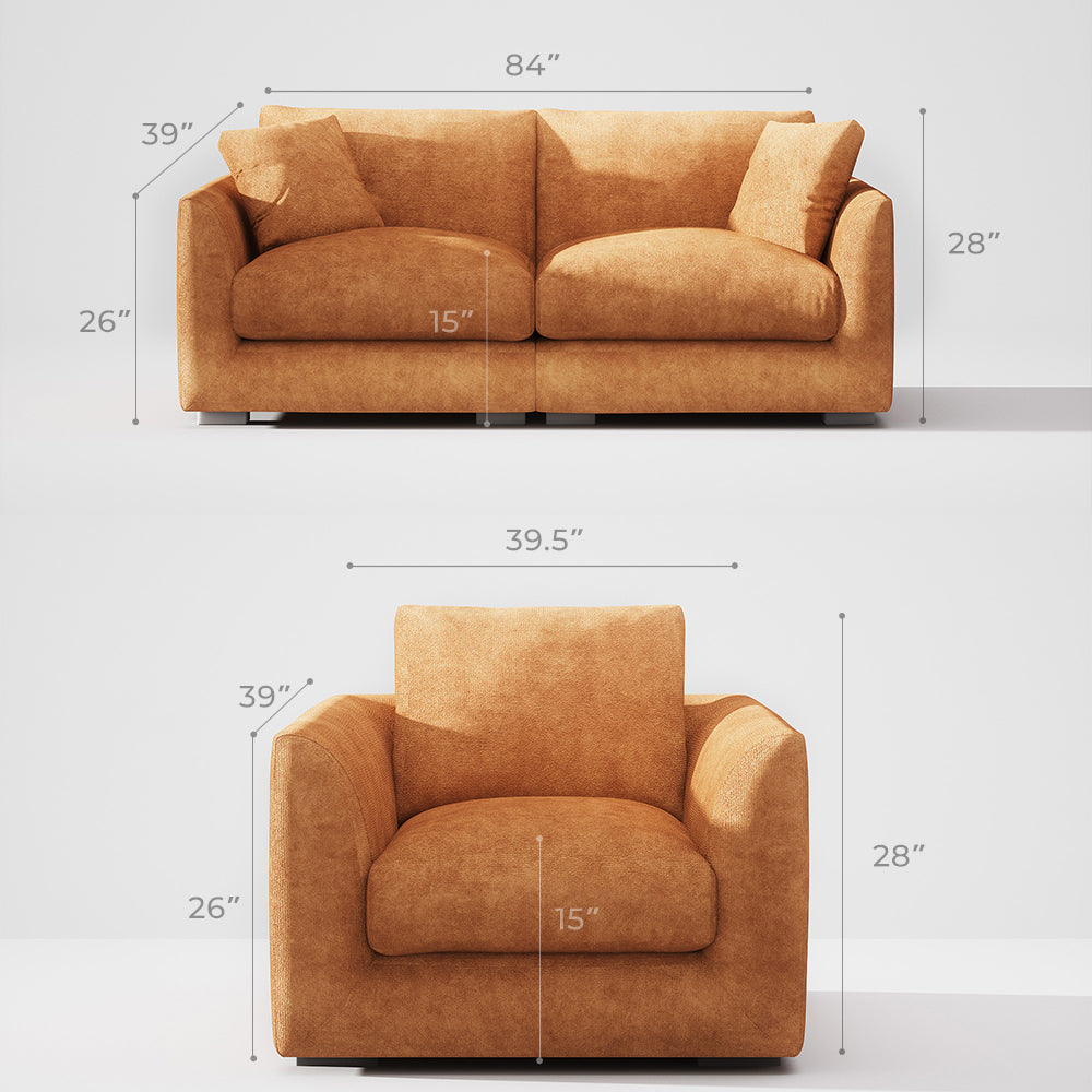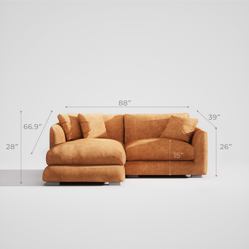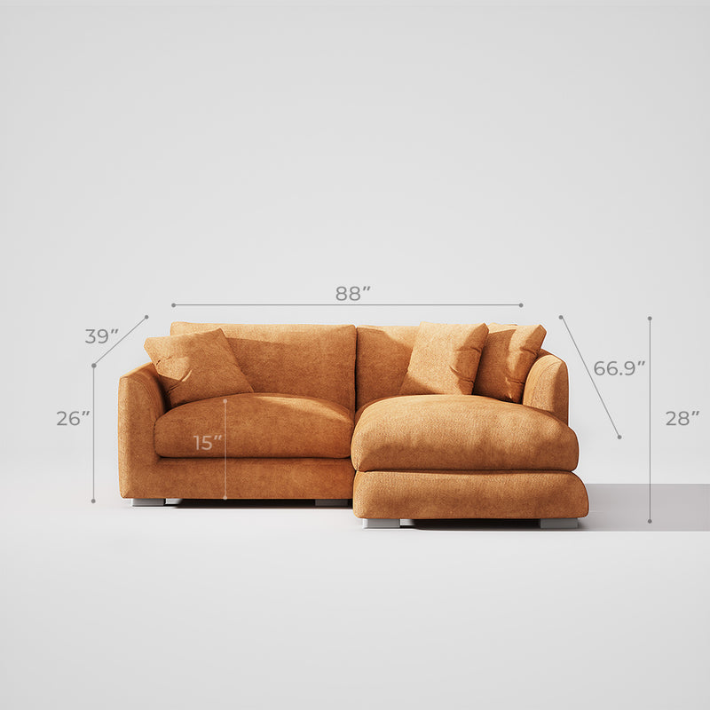 - Aalto Boutique Beige Feathers SectionalOrange / Facing Left / 84 inch + Armchair