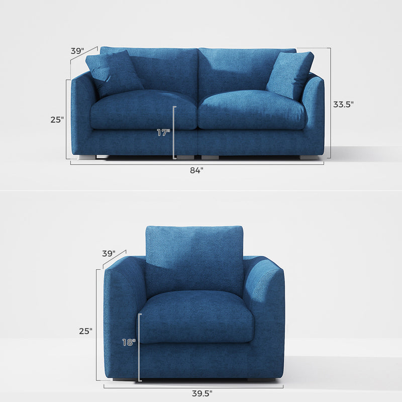 - Aalto Boutique Beige Feathers SectionalBlue / Facing Left / 84 inch + Armchair