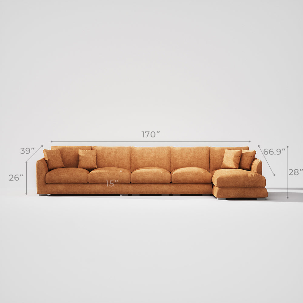 - Aalto Boutique Beige Feathers SectionalOrange / Facing Left / 170 inch