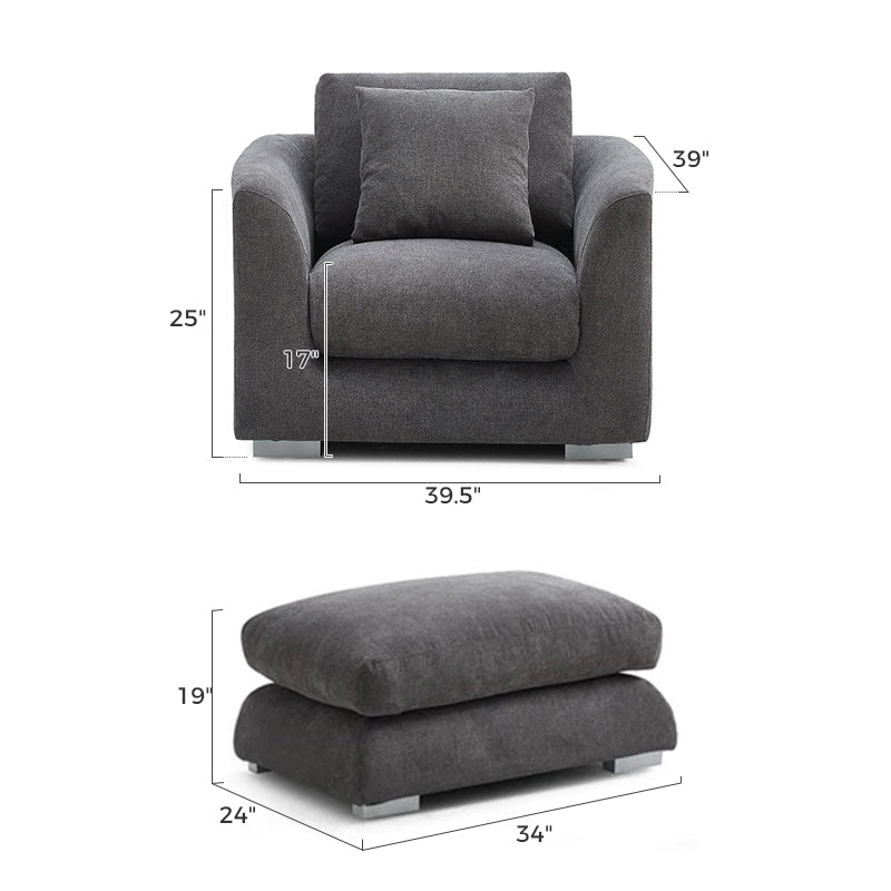 - Aalto Boutique Beige Feathers SectionalGray / Facing Left / Ottoman+Armchair