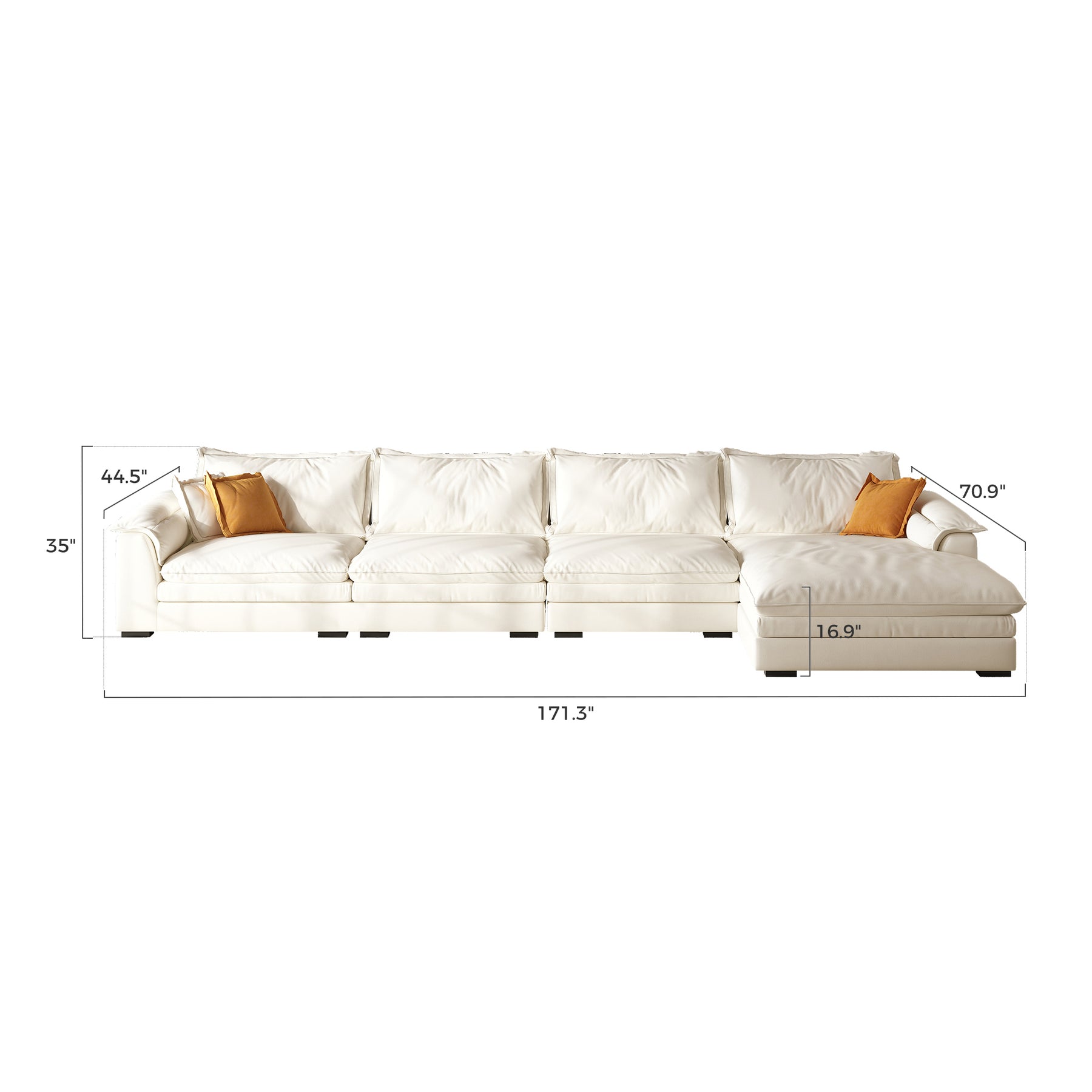 • Sandwich Sectional with ChaiseCamel / Air Leather / 171.3 inch left
