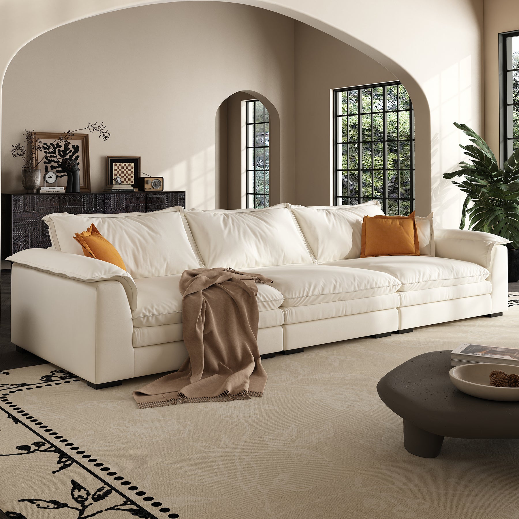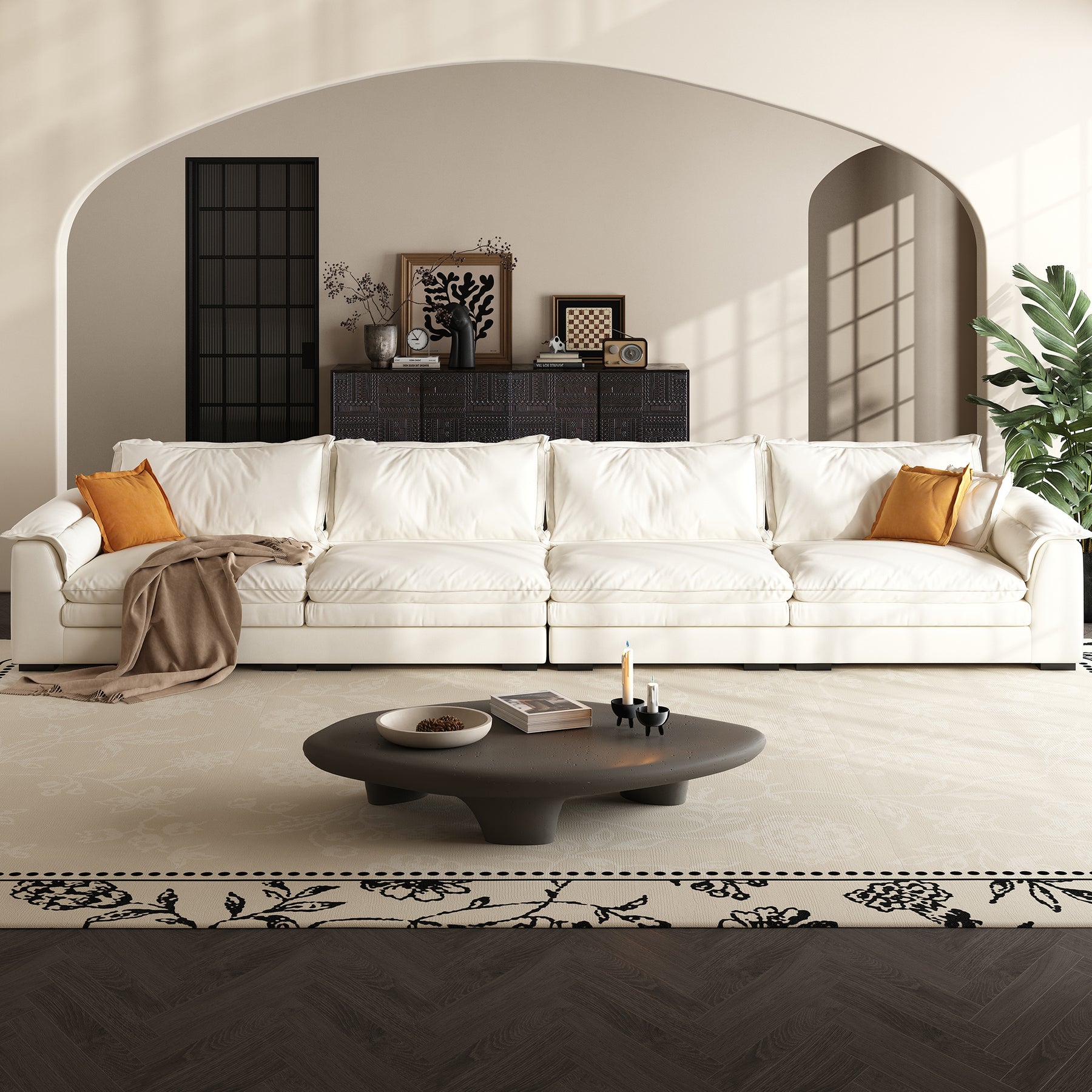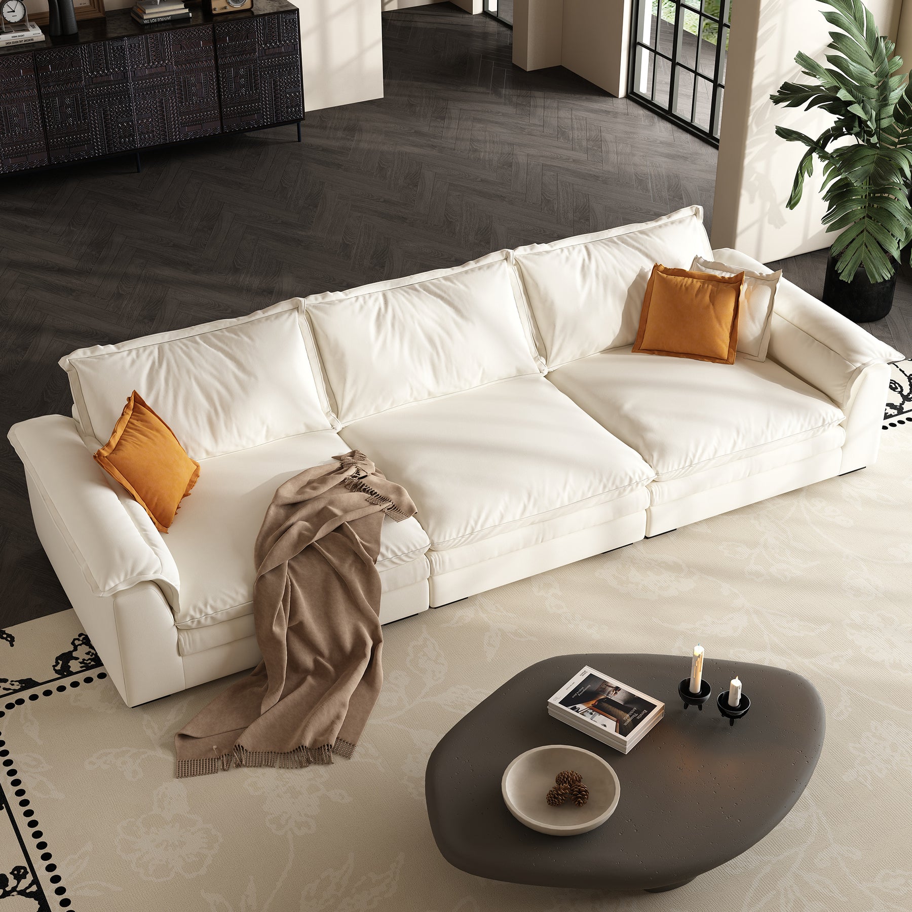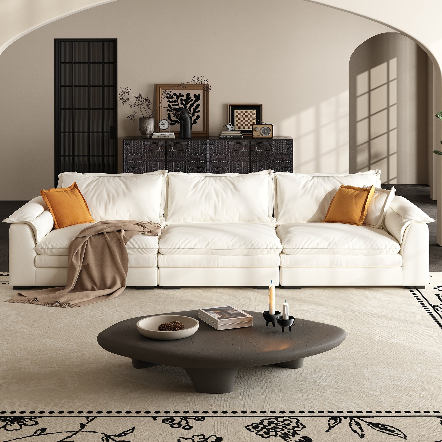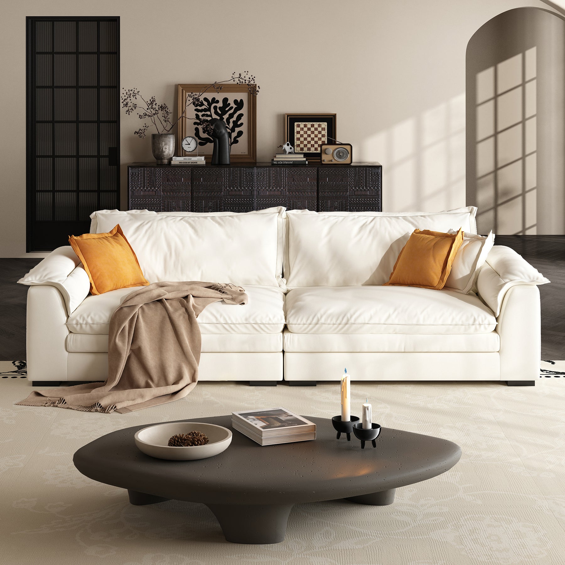 If the feather sofa becomes saggy, it can be restored to its original shape by patting the pillow or pad.