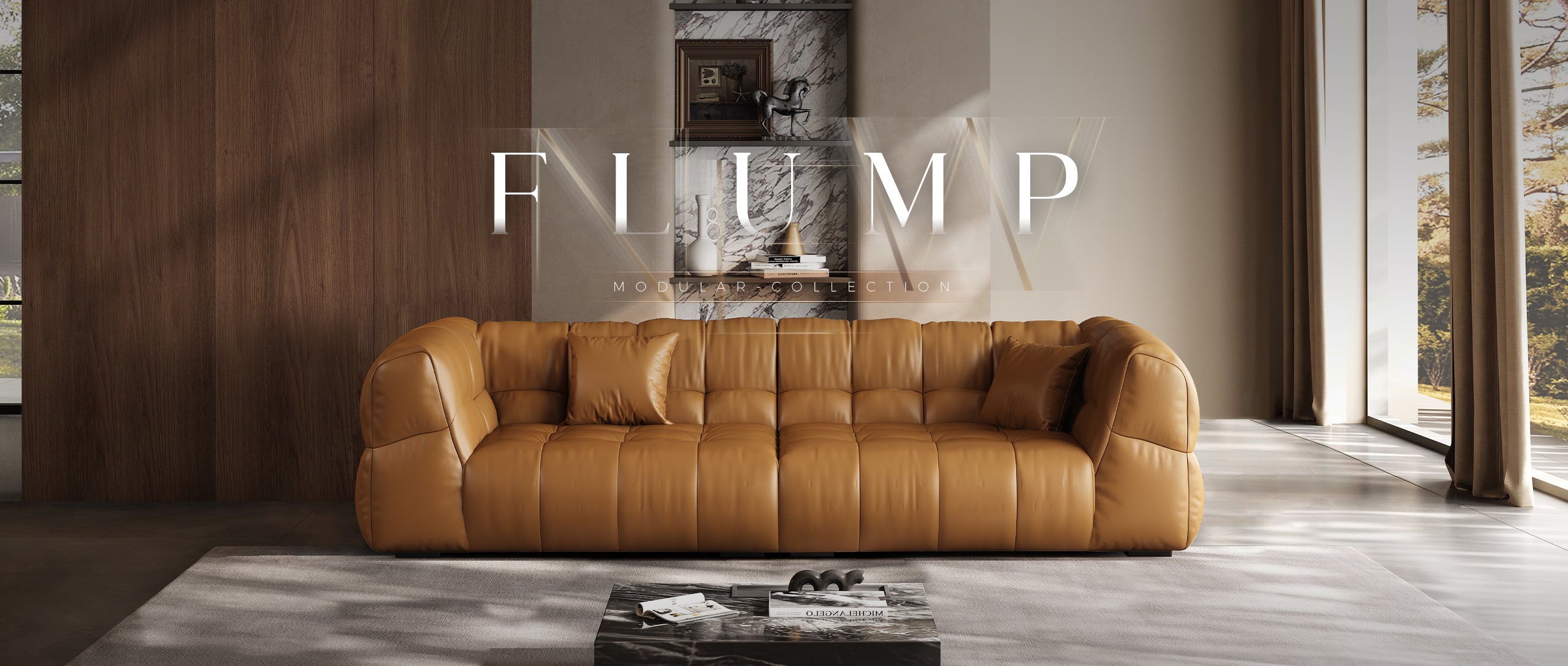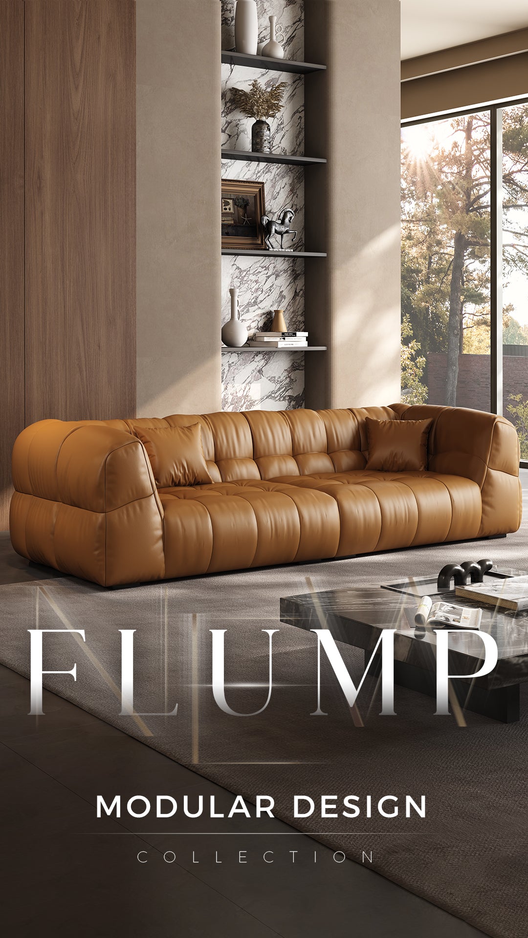 Flump Minimalist Modular Leather Sofa-Brown / 4 Seater + 4 Seater + Single Chair