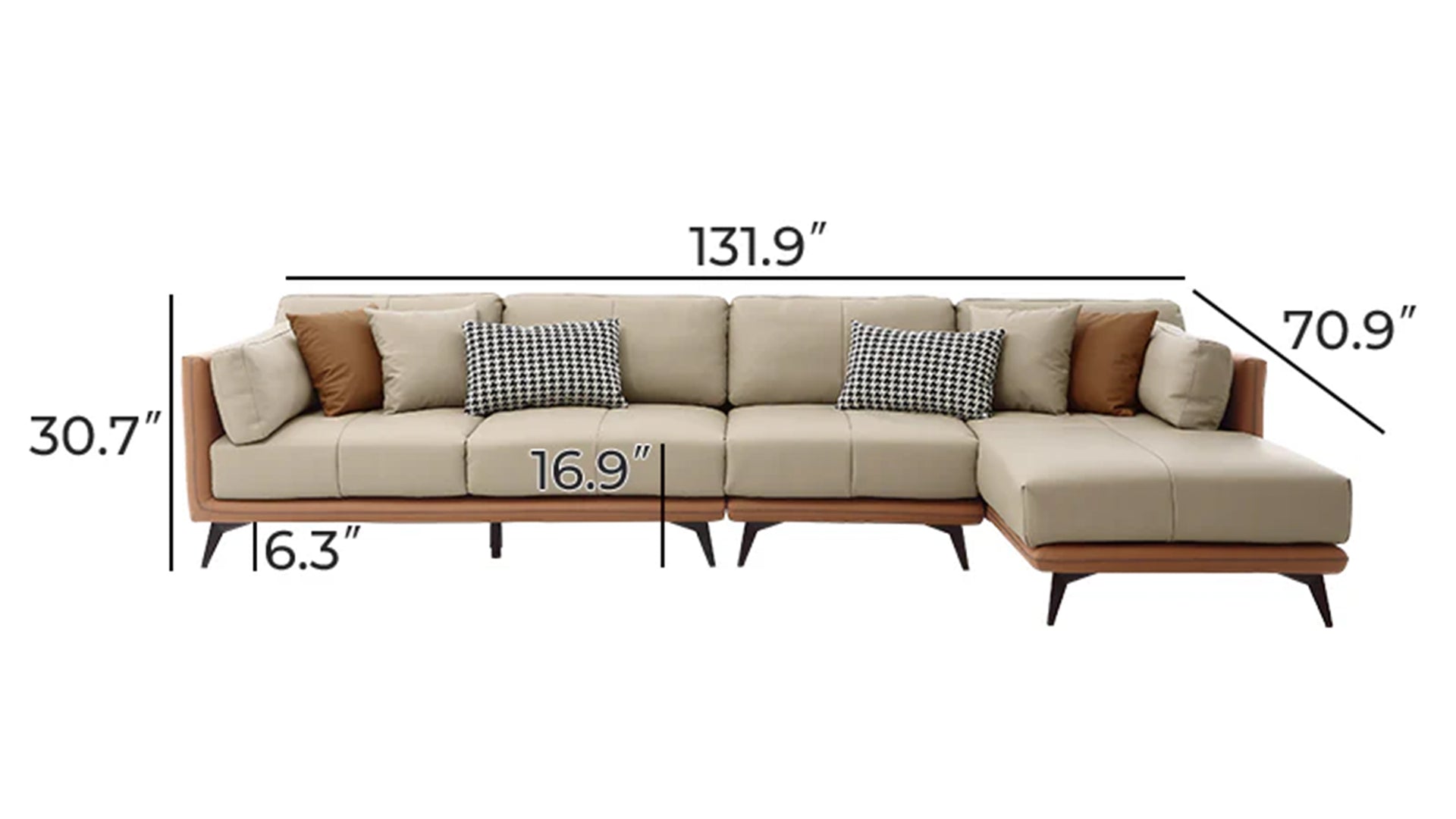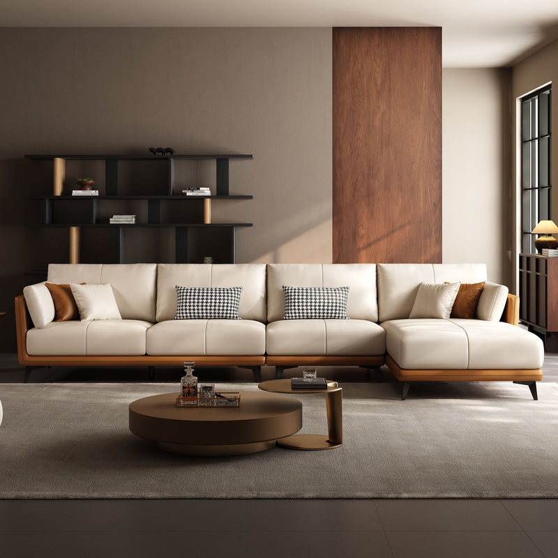 - All-Leather SectionalBeige / Facing Right / 131.9 inch