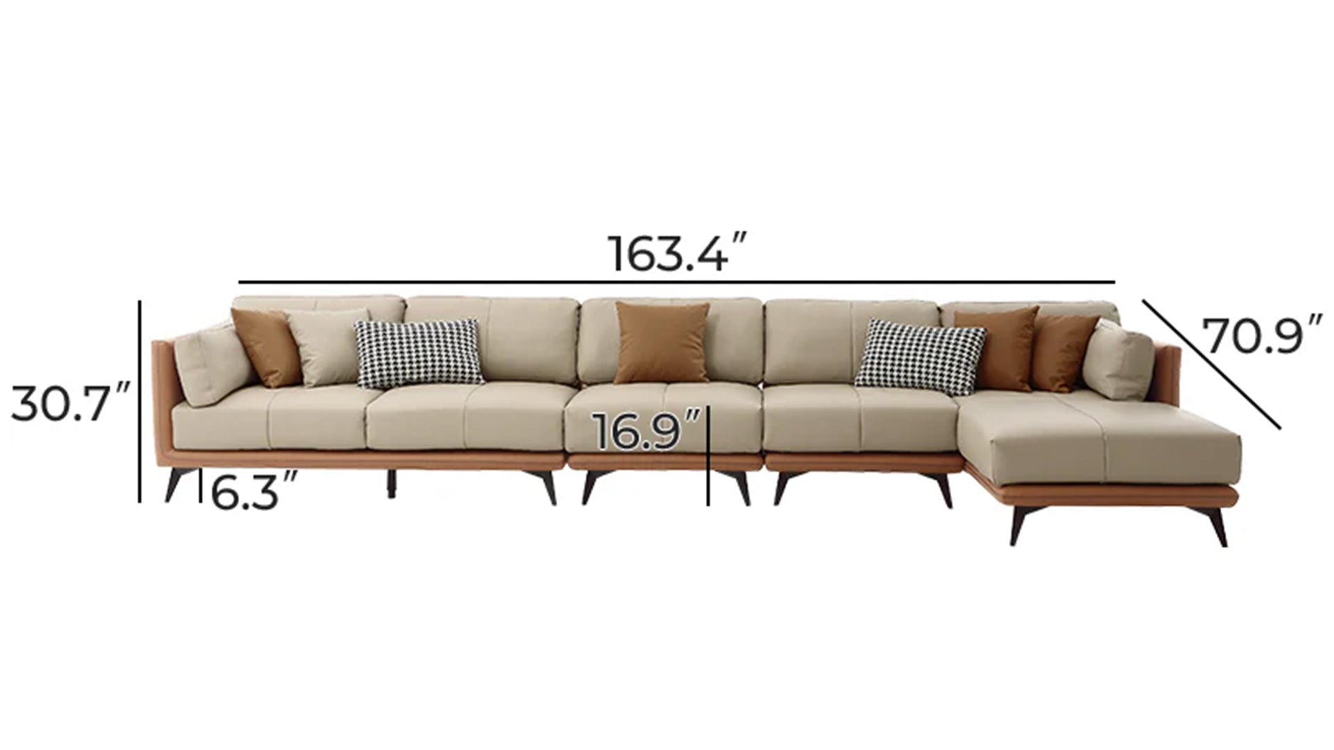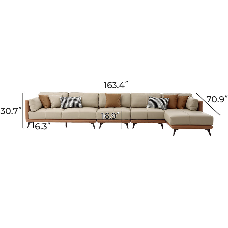 - All-Leather SectionalBeige / Facing Right / 163.4 inch