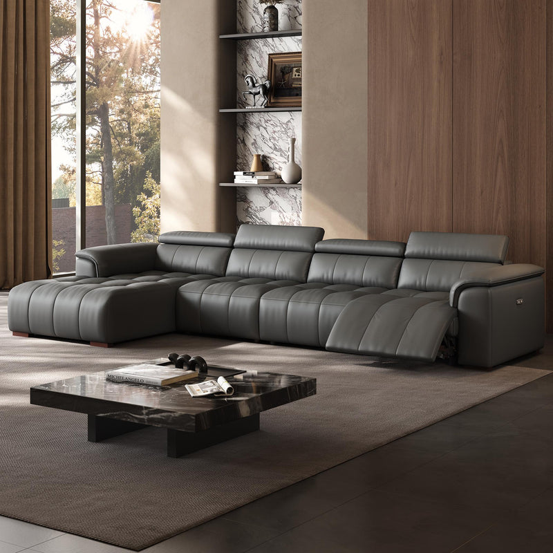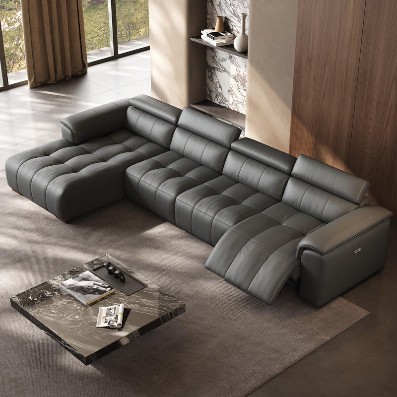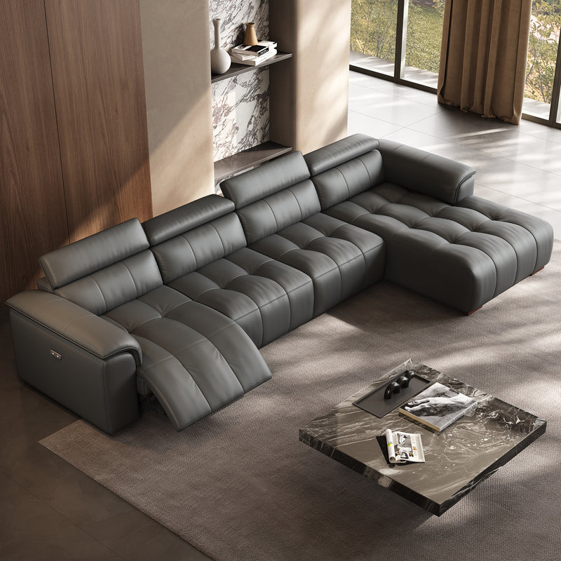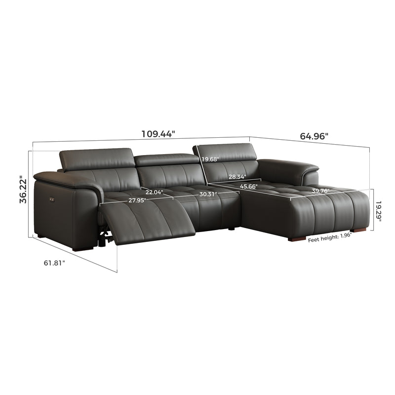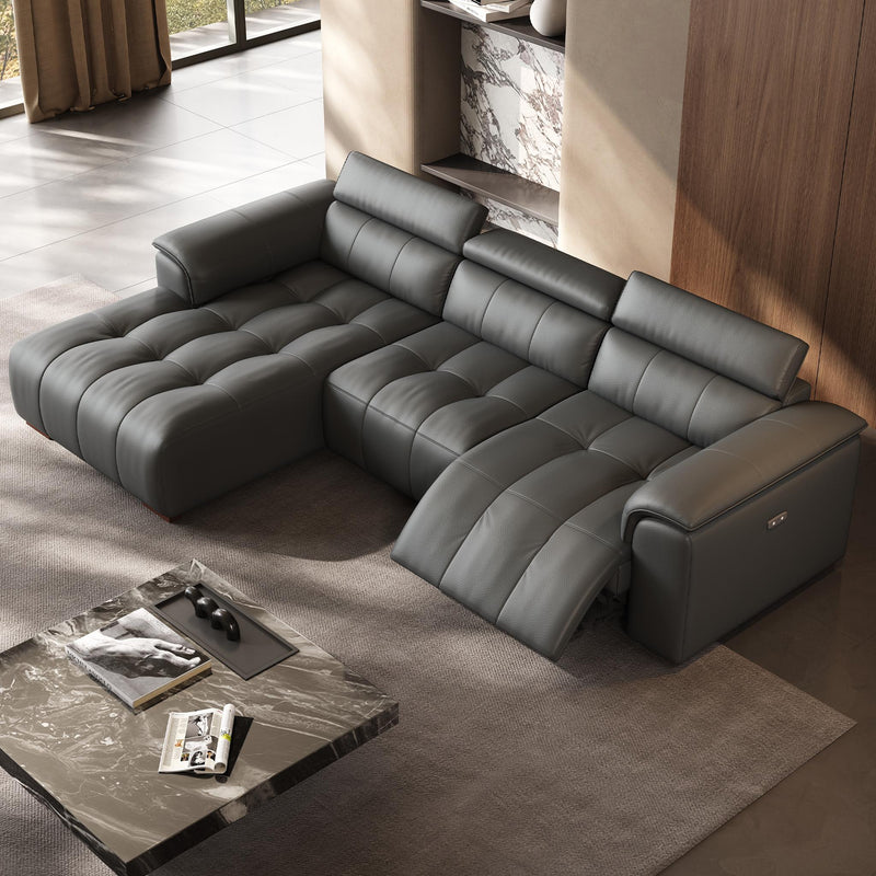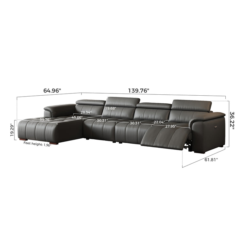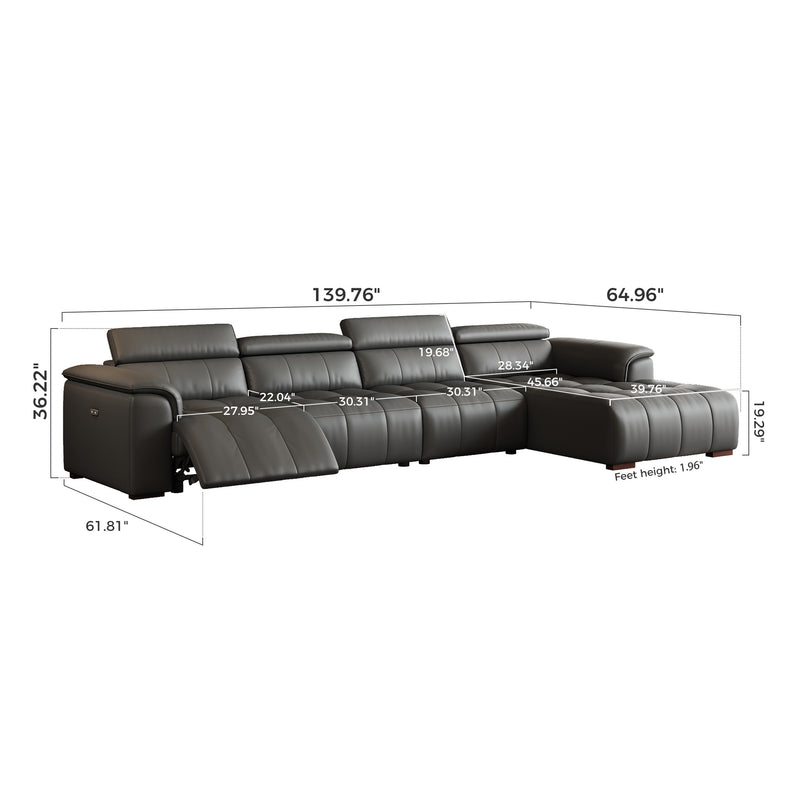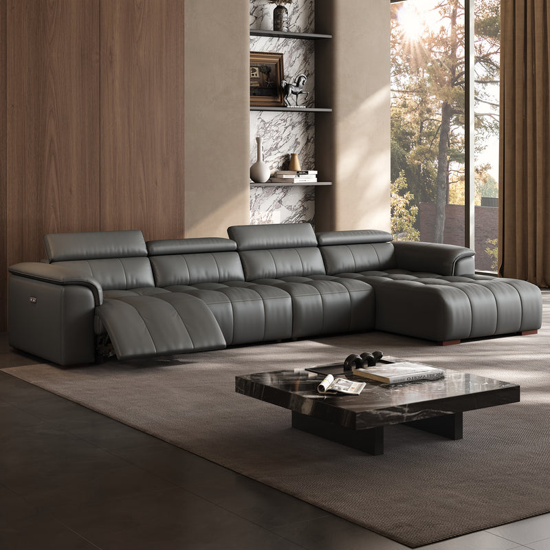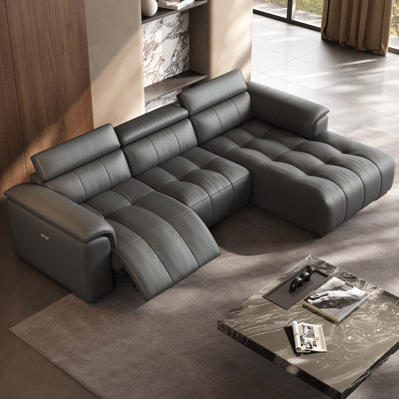 Modern Genuine Leather Power Reclining Modular Sectional Sofa - 139.76 inch / Dark Gray / Facing Right