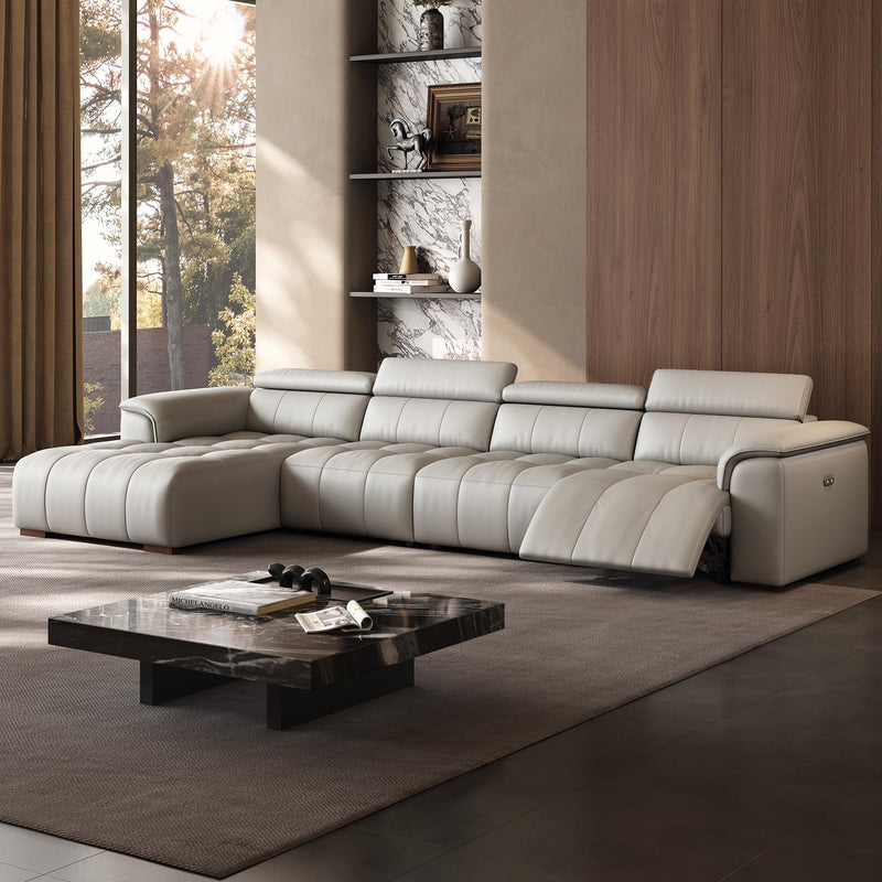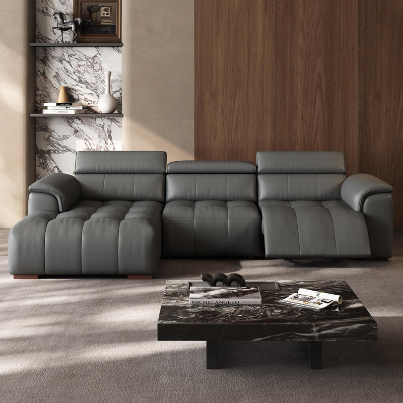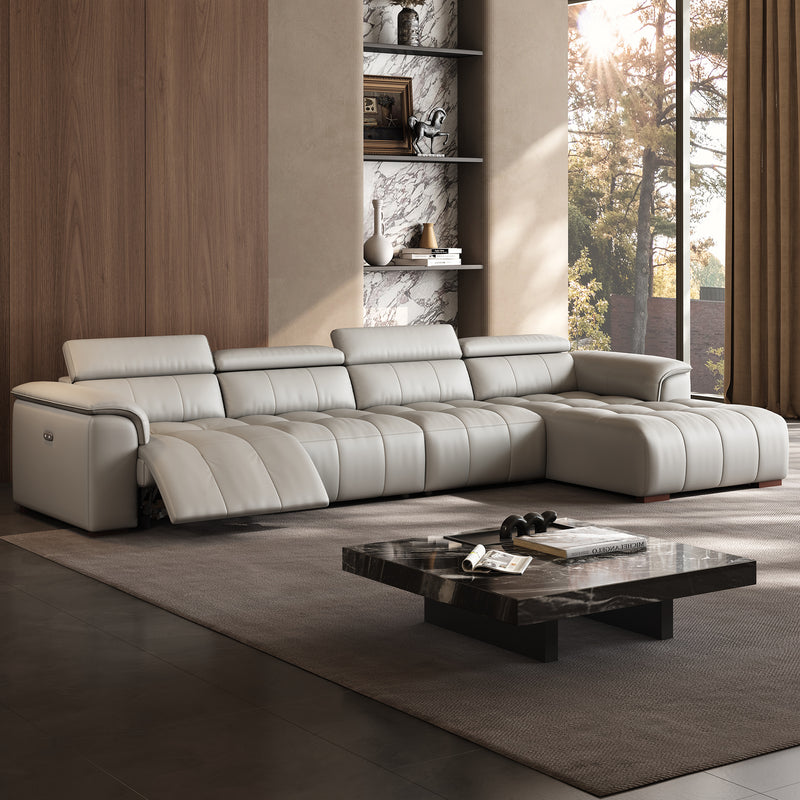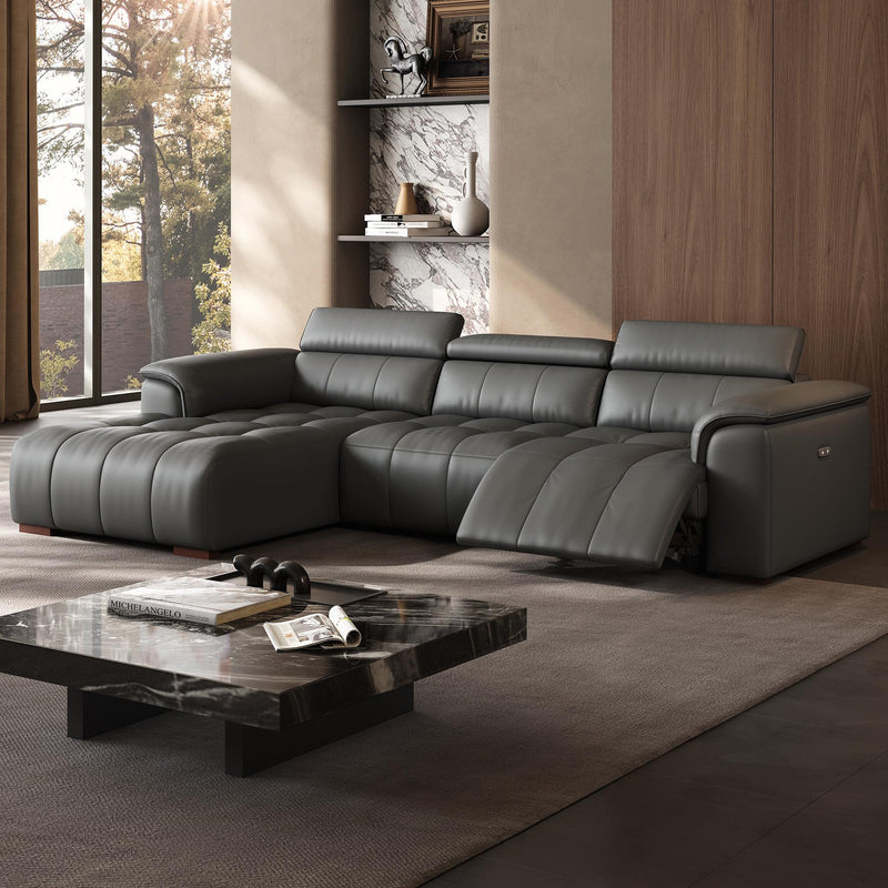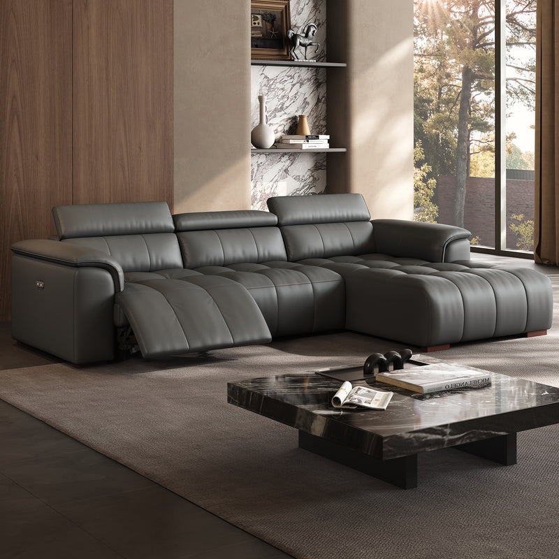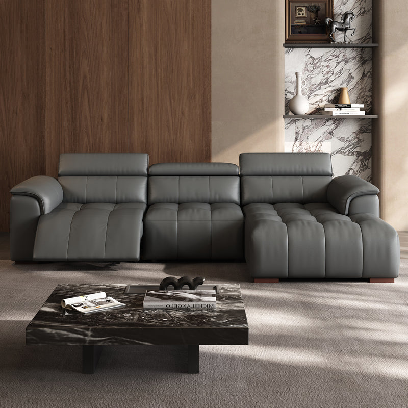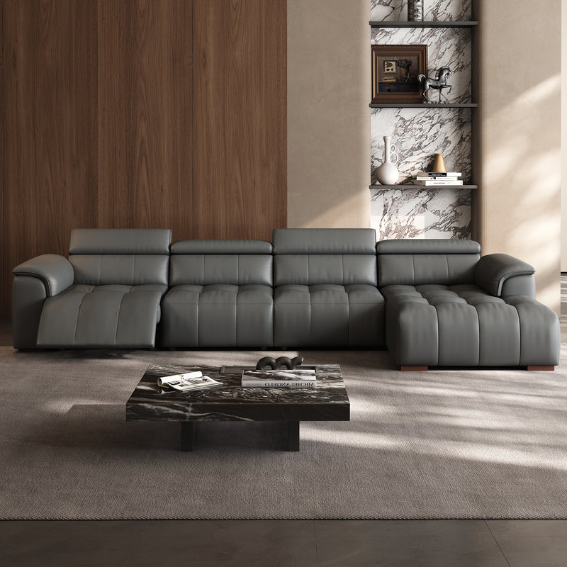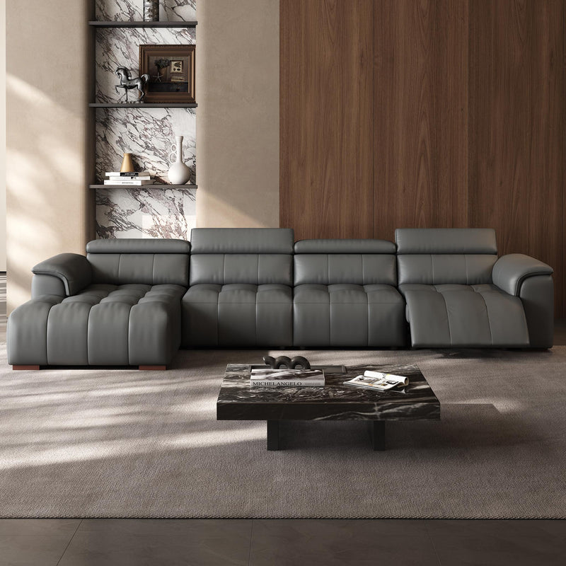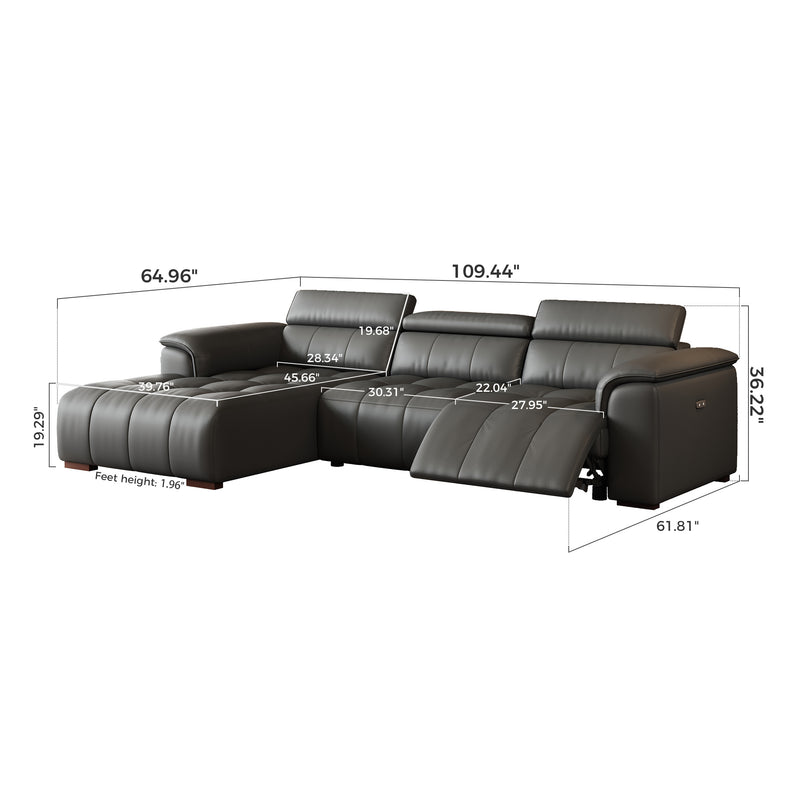 Modern Genuine Leather Power Reclining Modular Sectional Sofa - 139.76 inch / Dark Gray / Facing Right