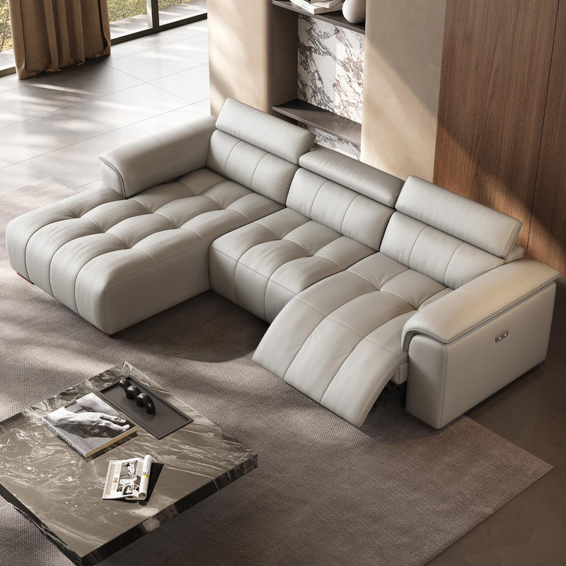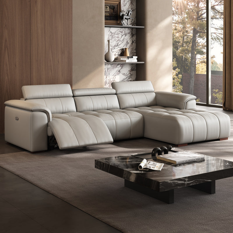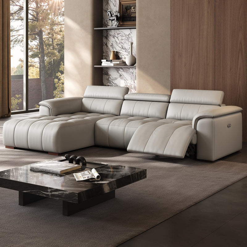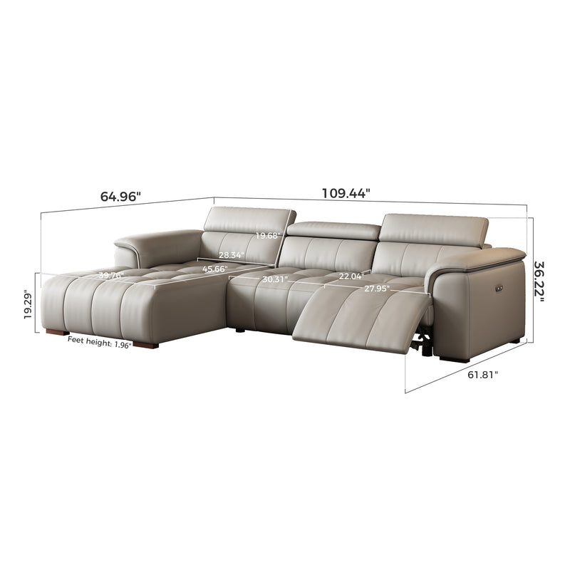 170° electric recline and retractable footrest (wall-friendly). One button controls the sofa to tilt, and the other controls the sofa to return to its original position, adjustable backrest tilts up to 90° for personalized comfort.