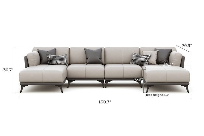 - All-Leather U-SectionalGray / 131 inch